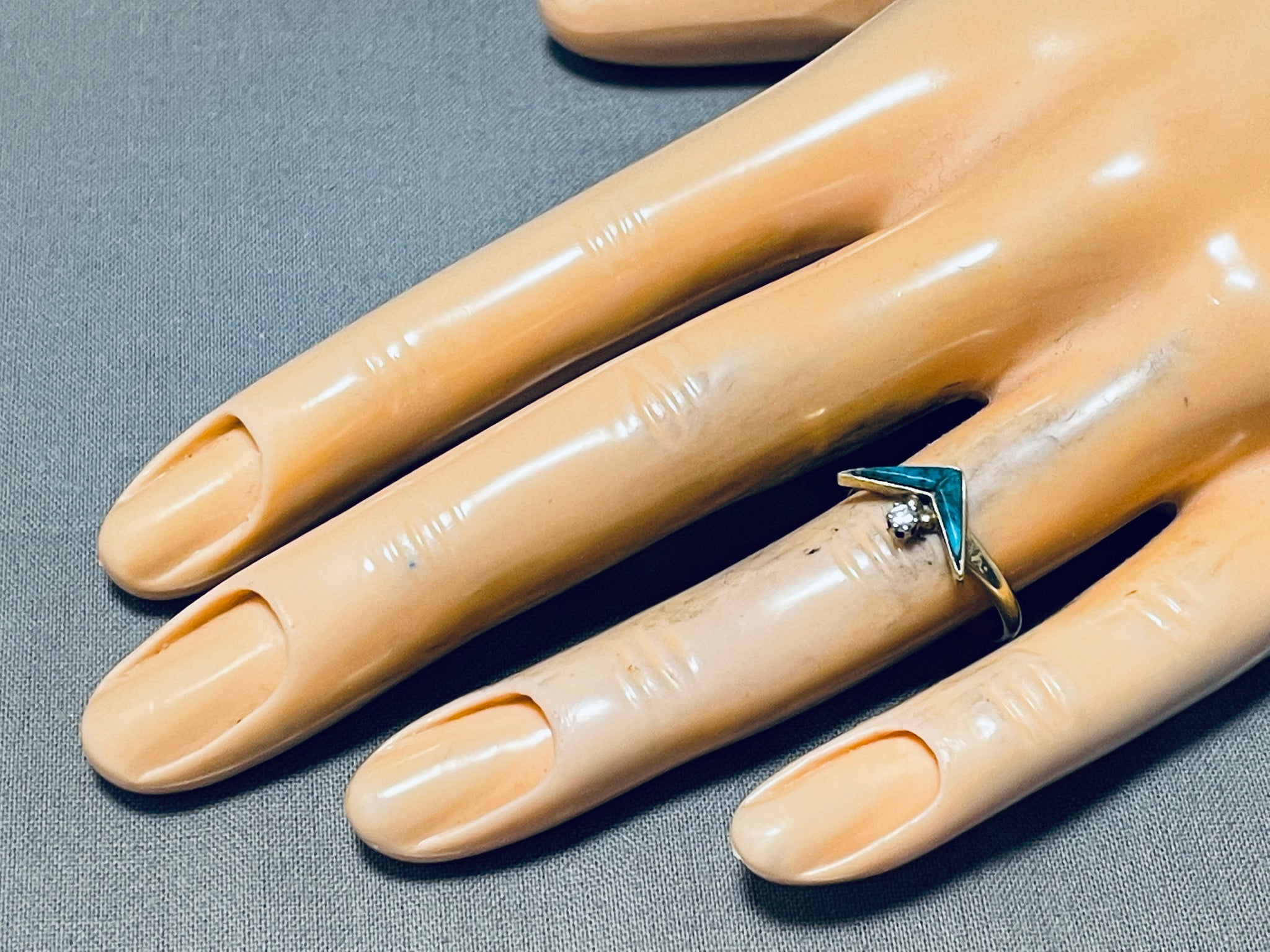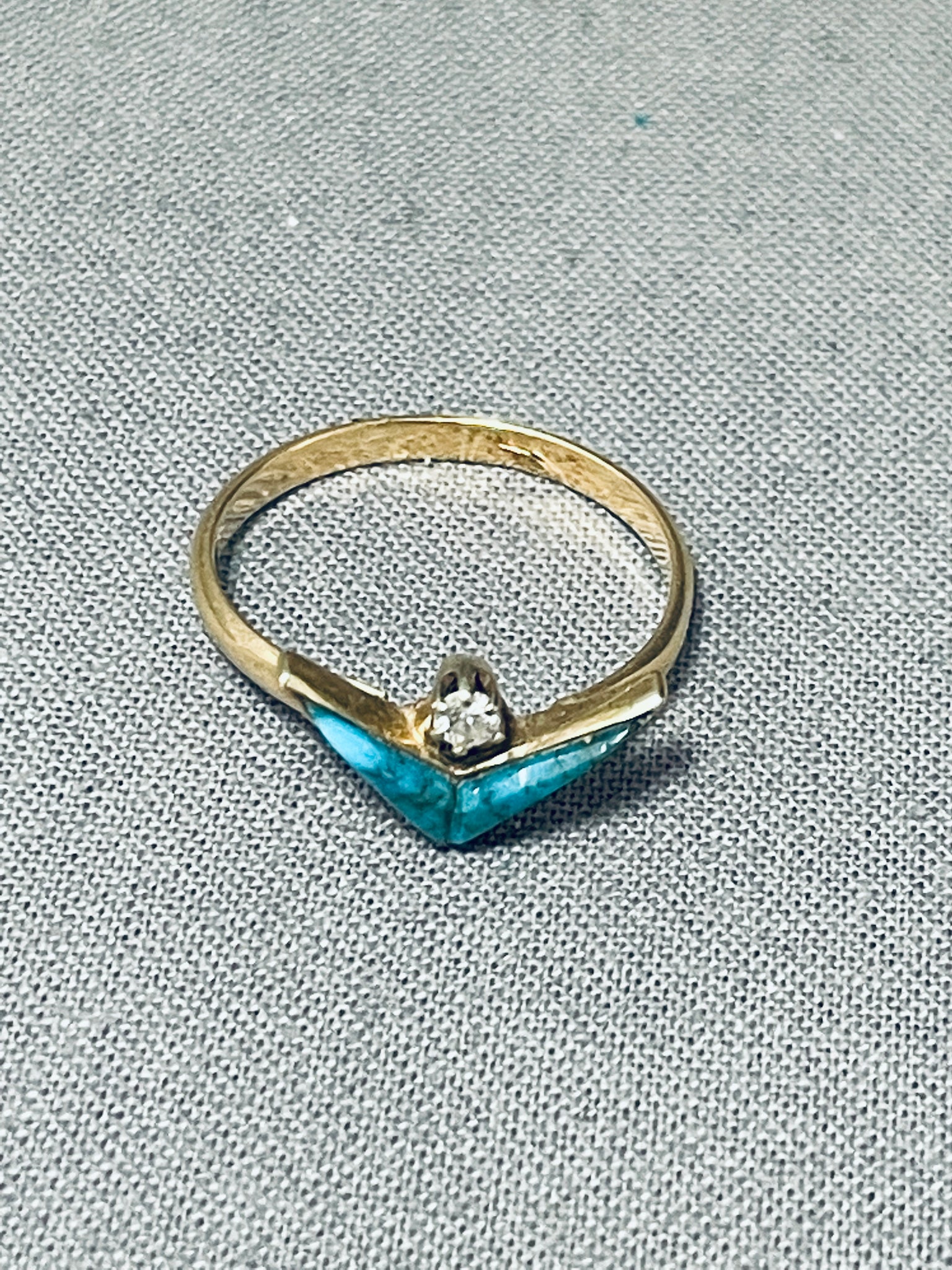 Rare Diamond And 14k Gold Vintage Native American Navajo Inlay Ring