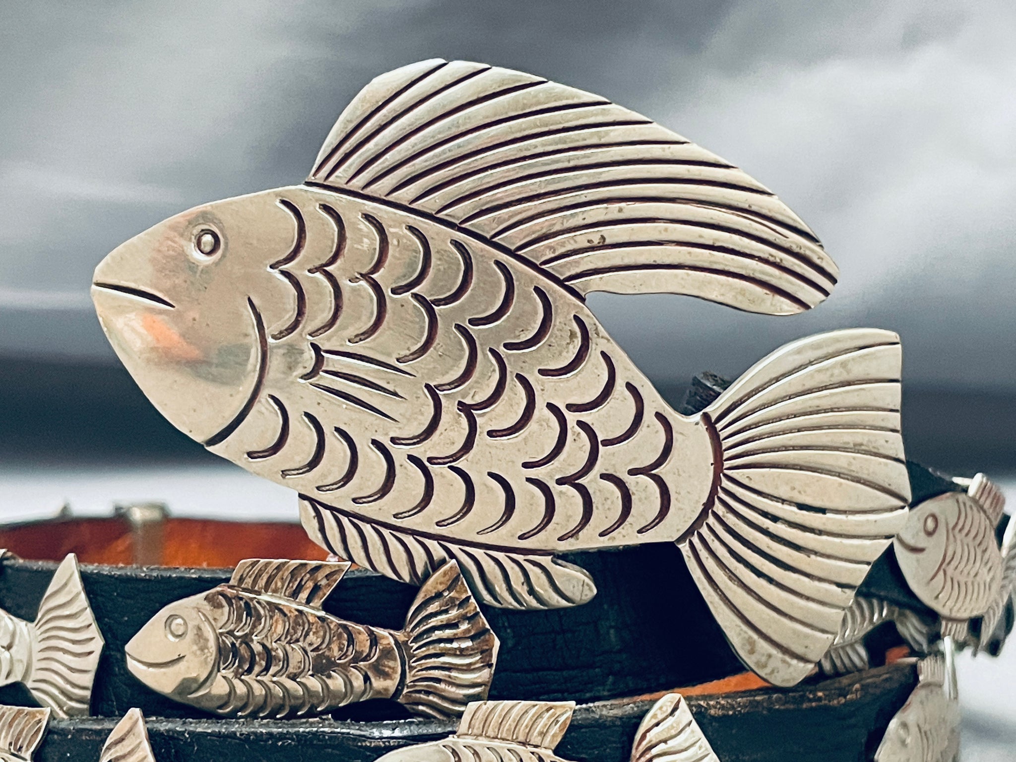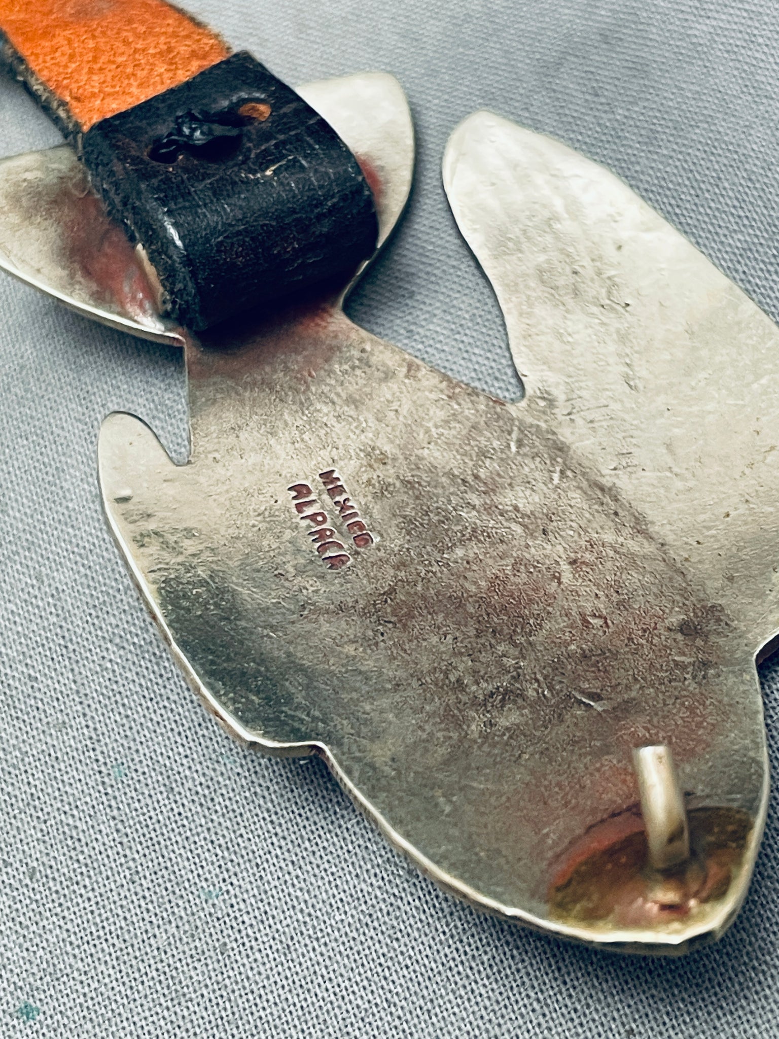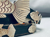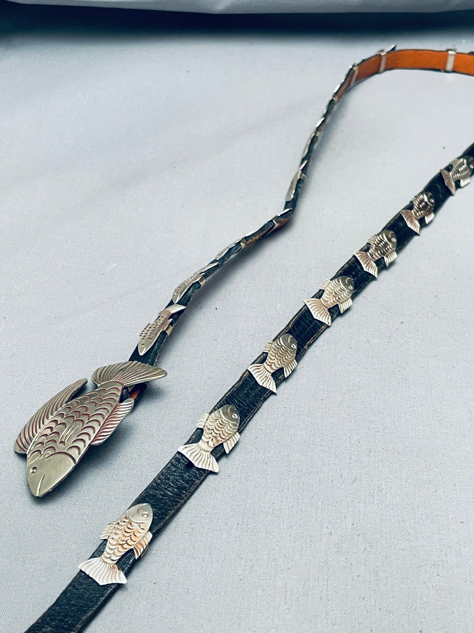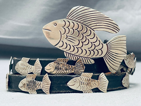 Rare Fish!! Vintage Southwest Sterling Silver Hand Tooled Concho Belt