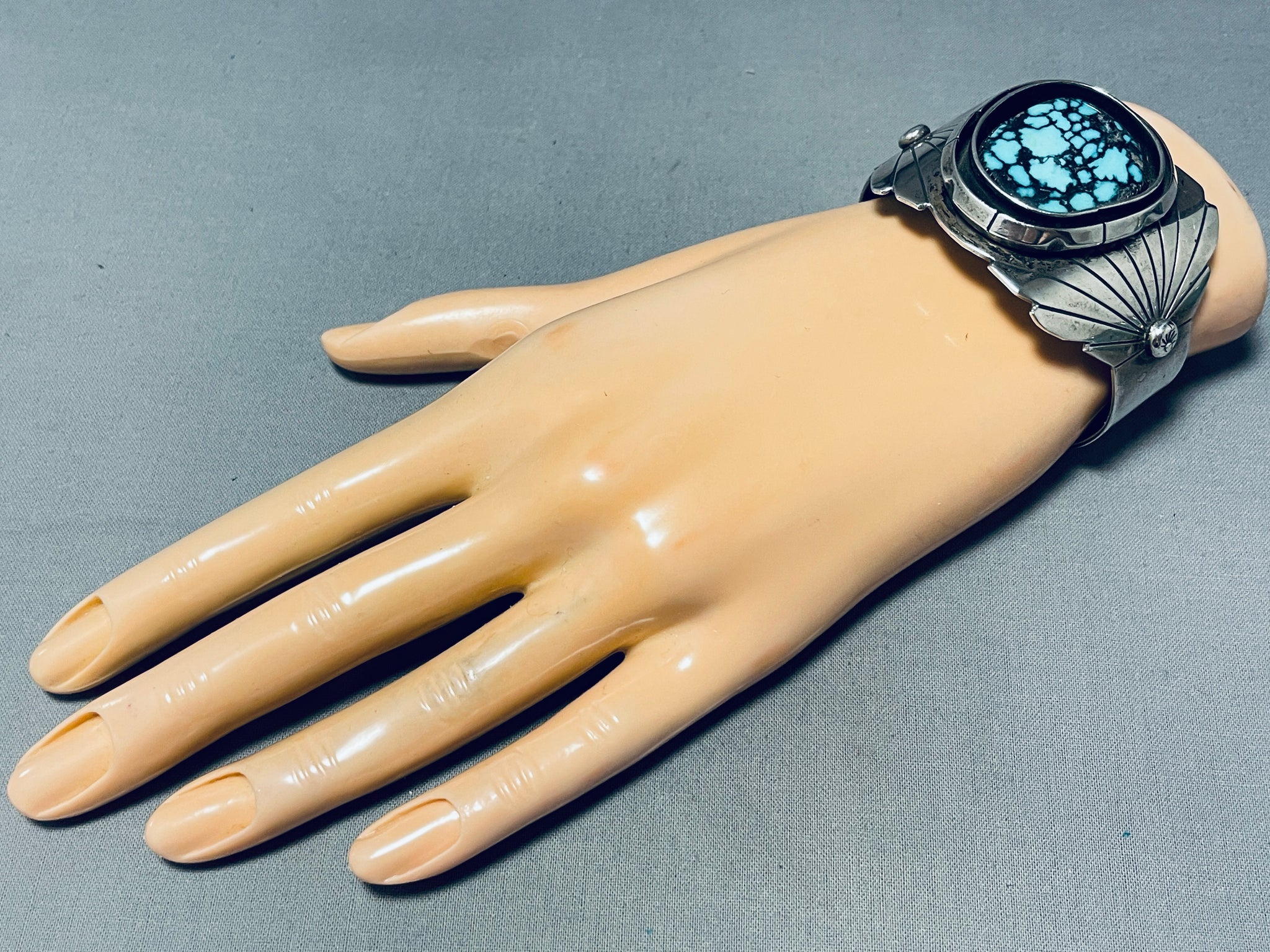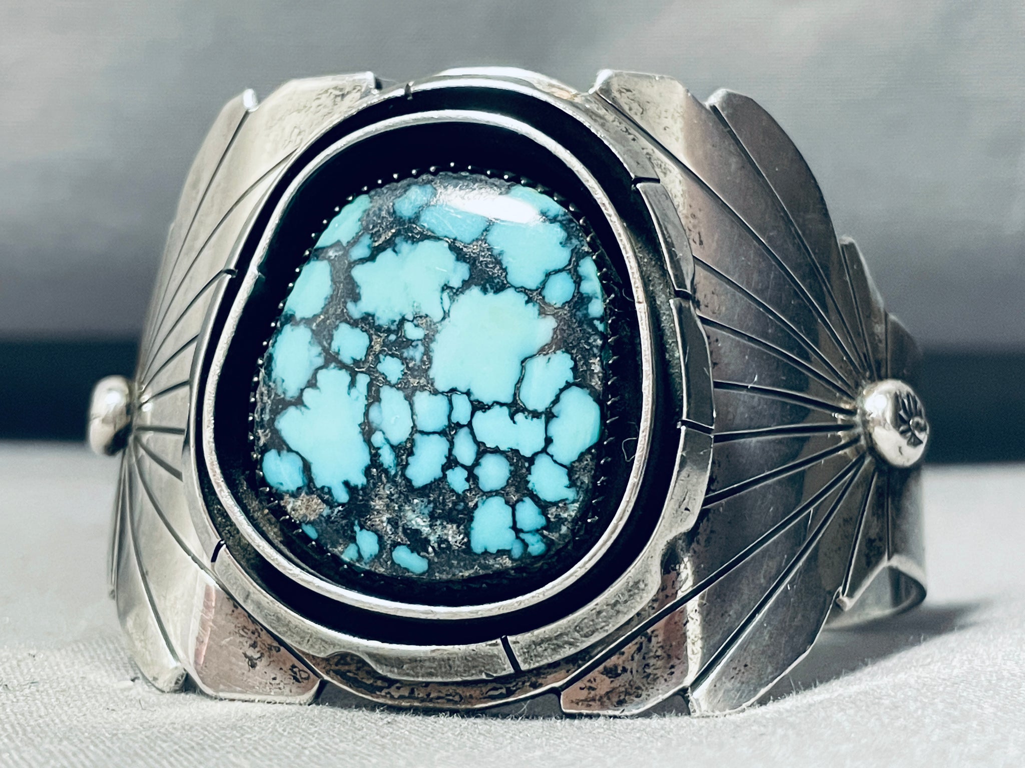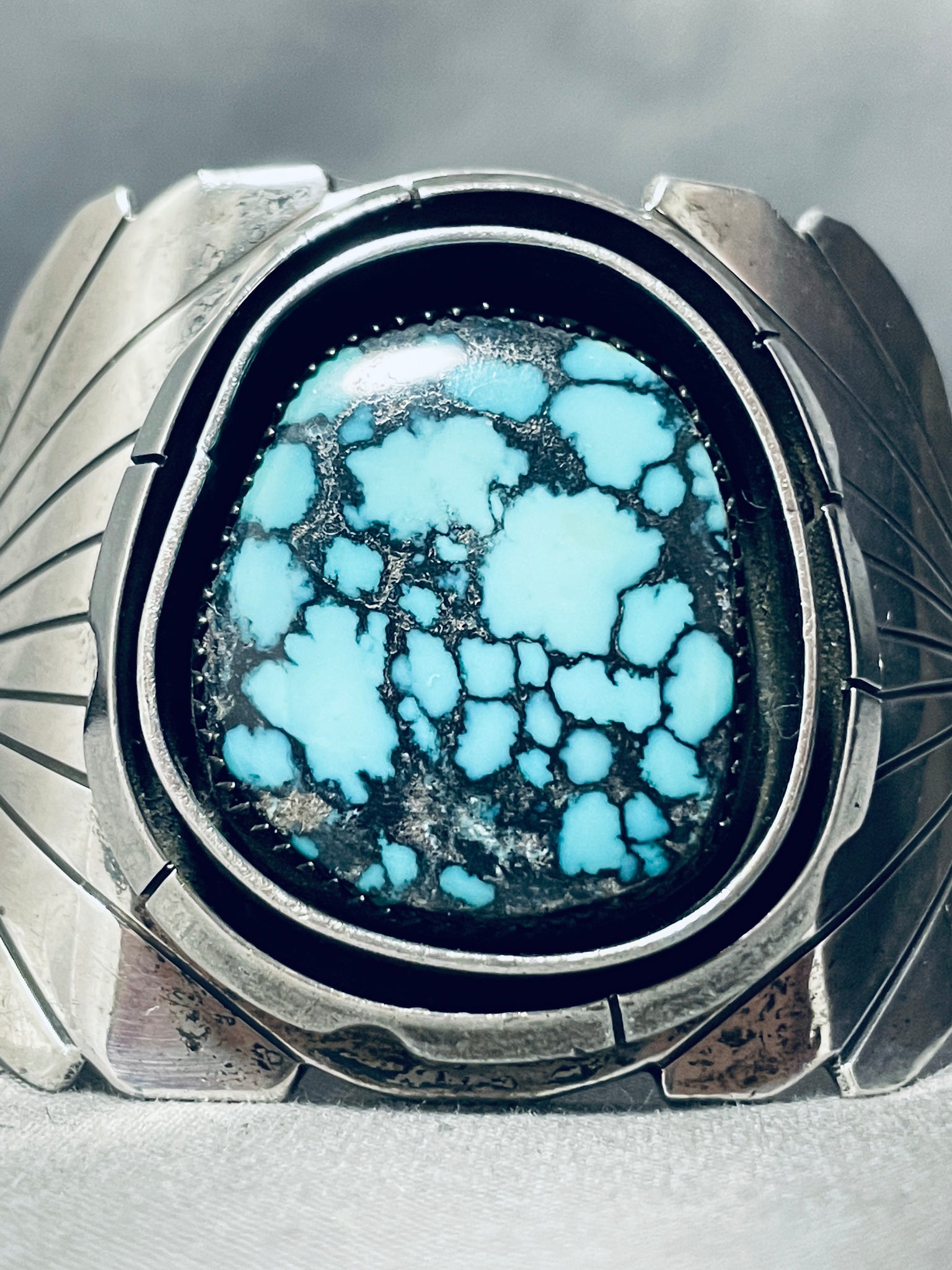 Rare Indian Mountain Turquoise Vintage Native American Navajo Sterling Silver Bracelet