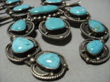 Rare Mcginnis Turquoise Vintage Native American Jewelry Navajo Sterling Silver Squash Blossom Necklace