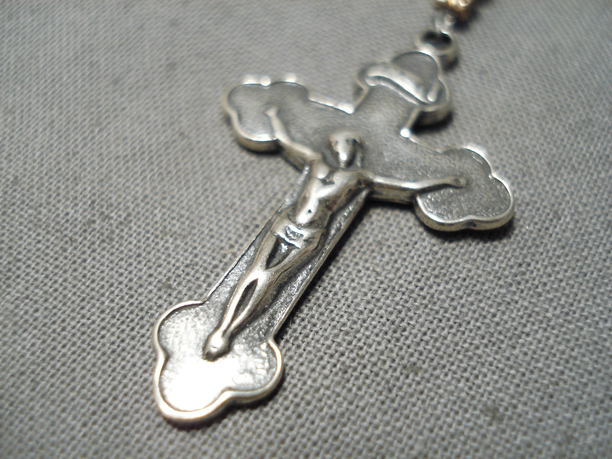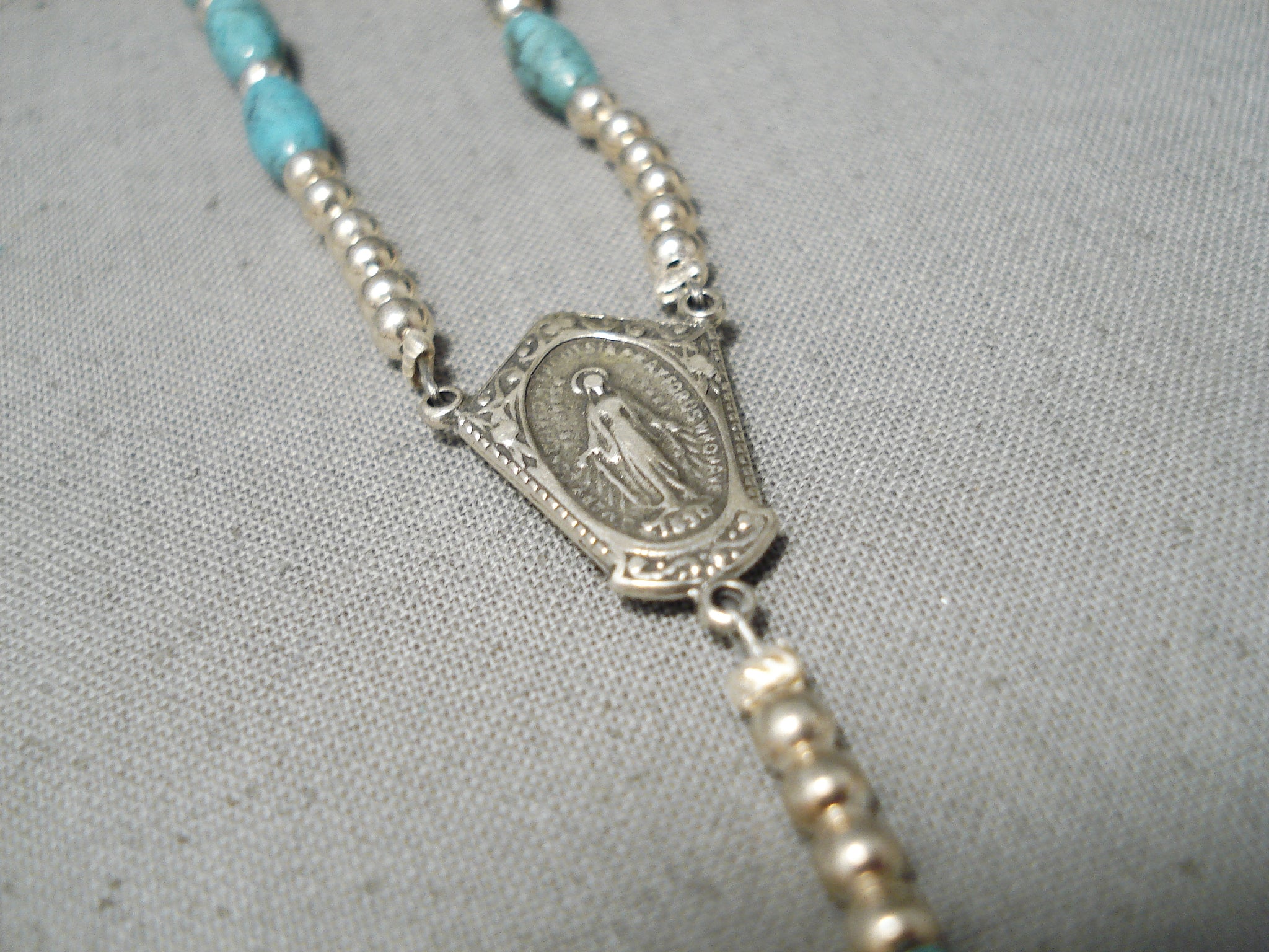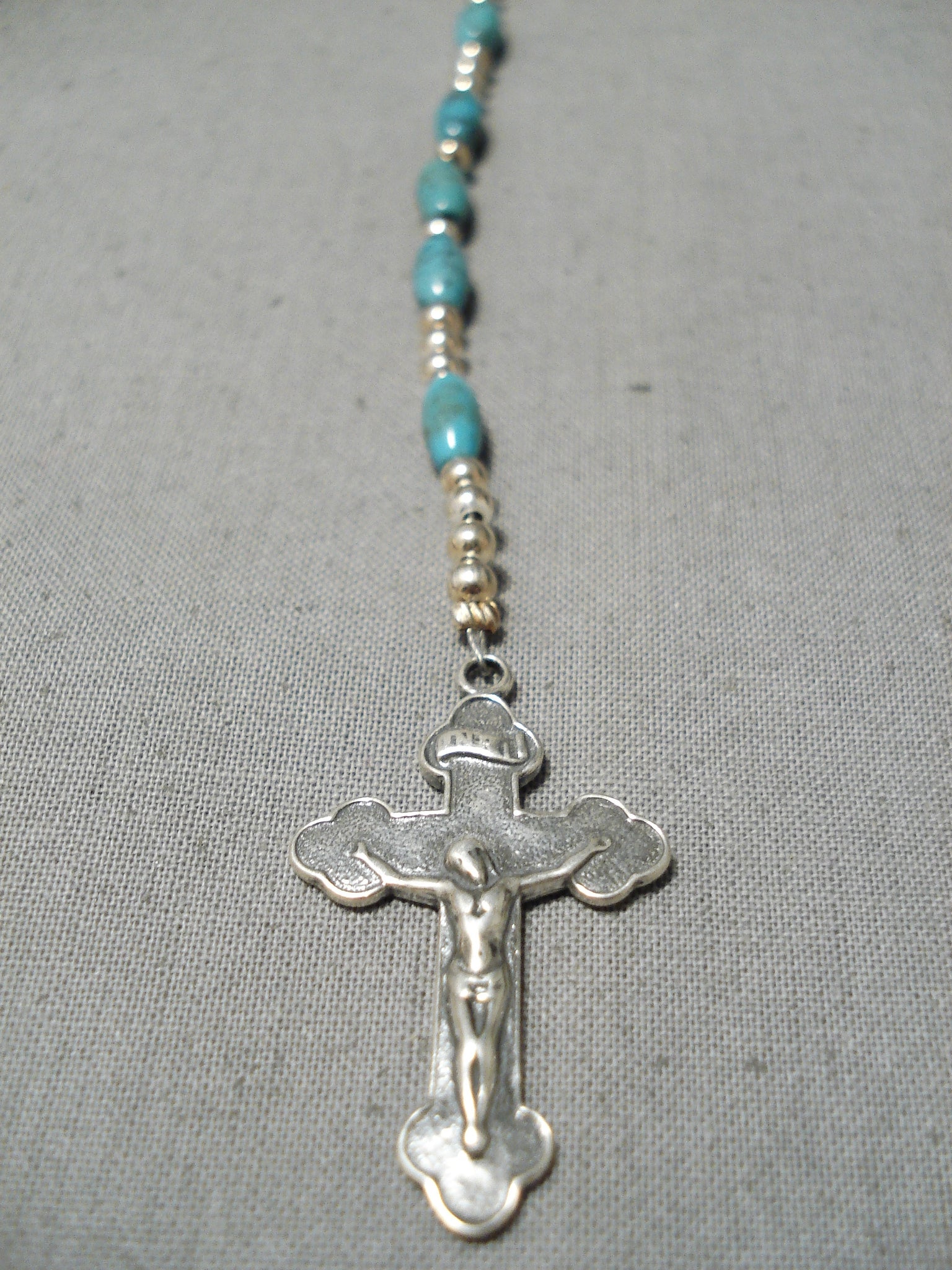 Rare Native American Navajo Blue Turquoise Sterling Silver Catholic Rosary Necklace