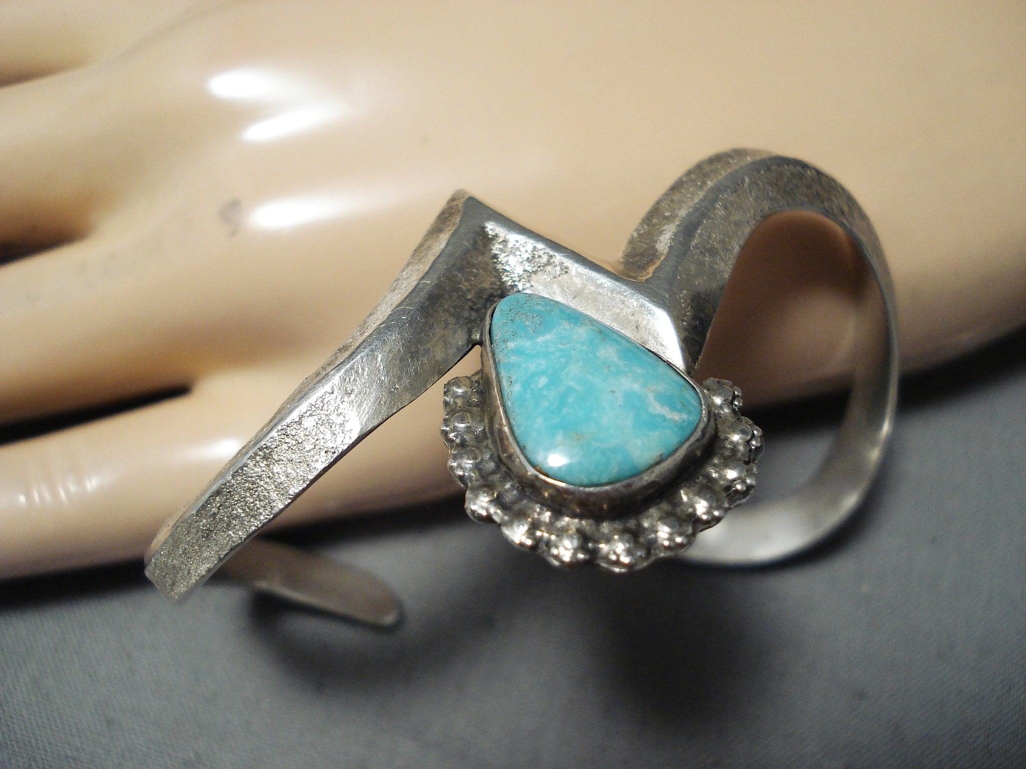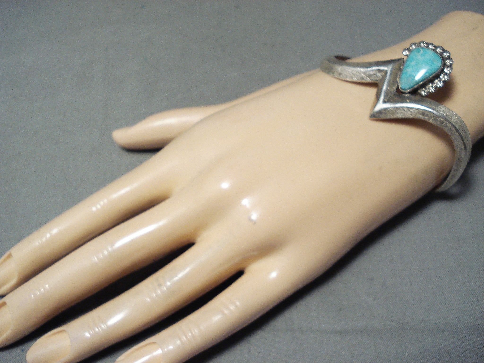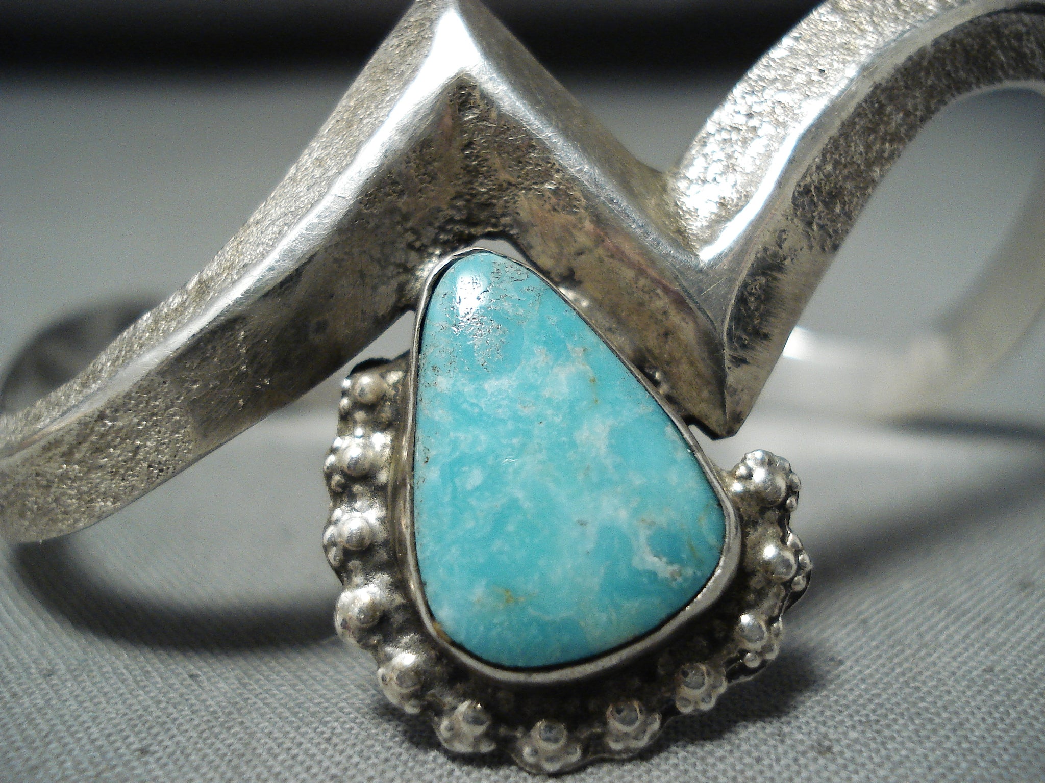 Rare Native American Navajo Pilot Mountain Turquoise Sterling Silver Bracelet