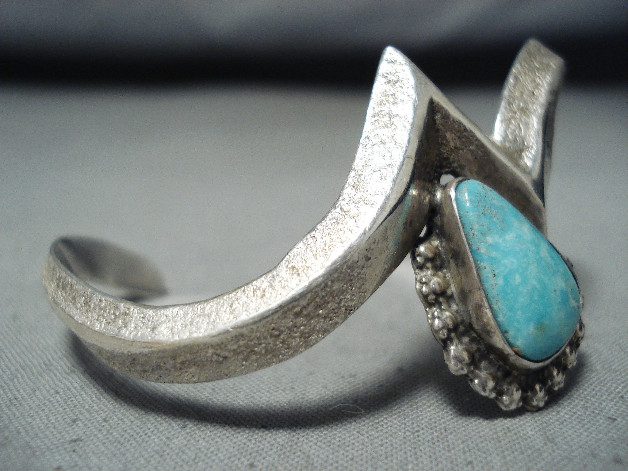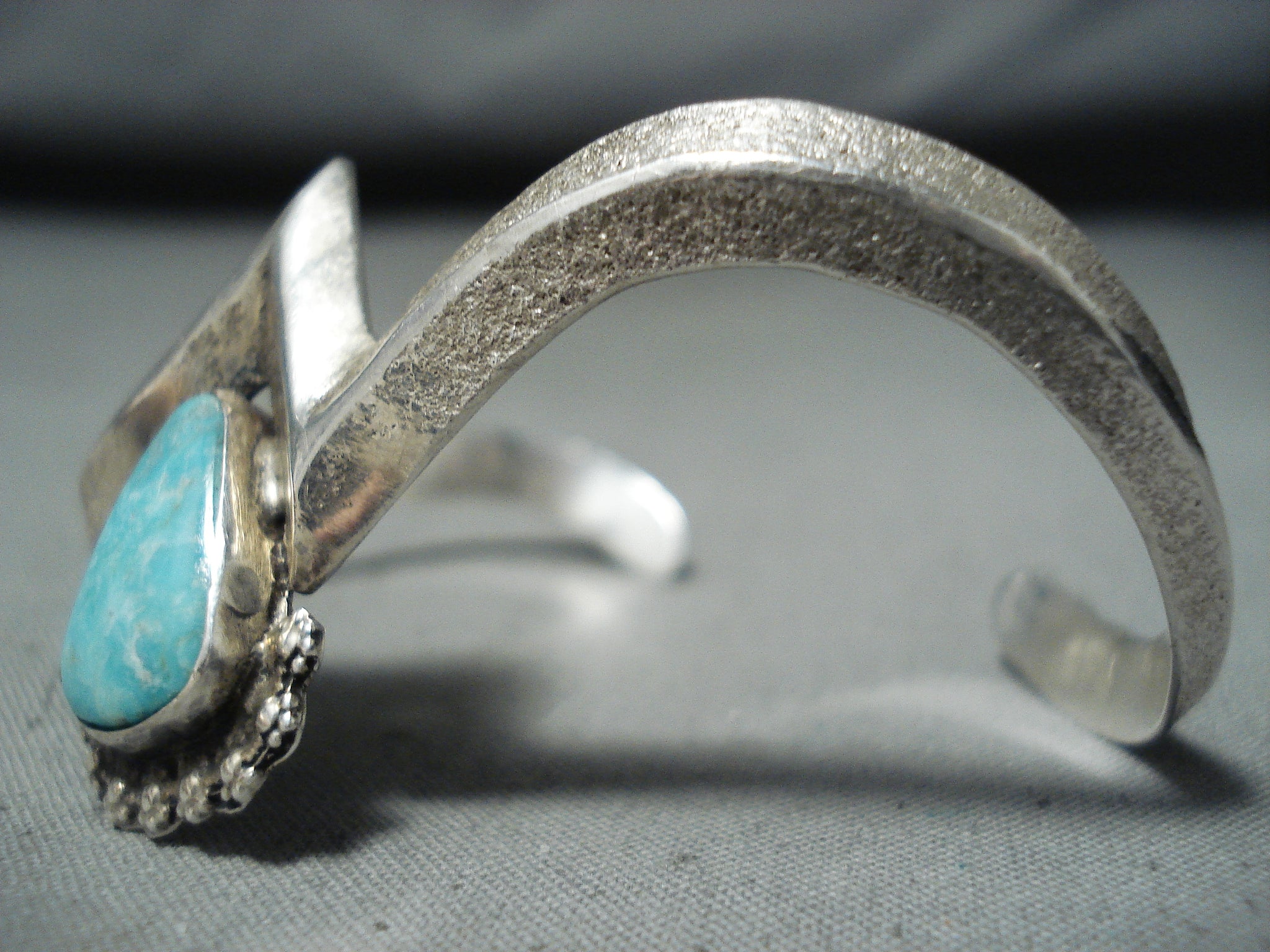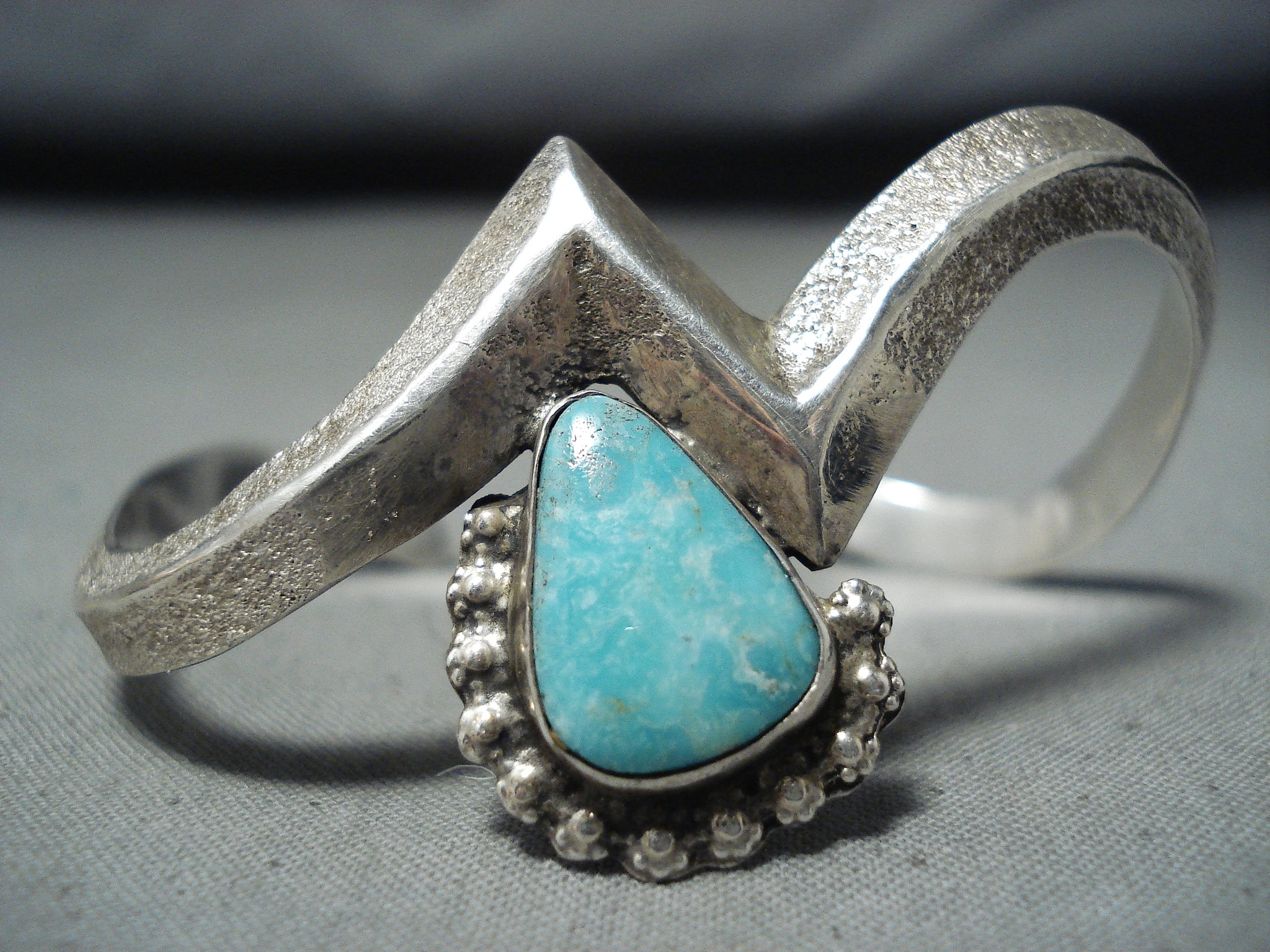 Rare Native American Navajo Pilot Mountain Turquoise Sterling Silver Bracelet