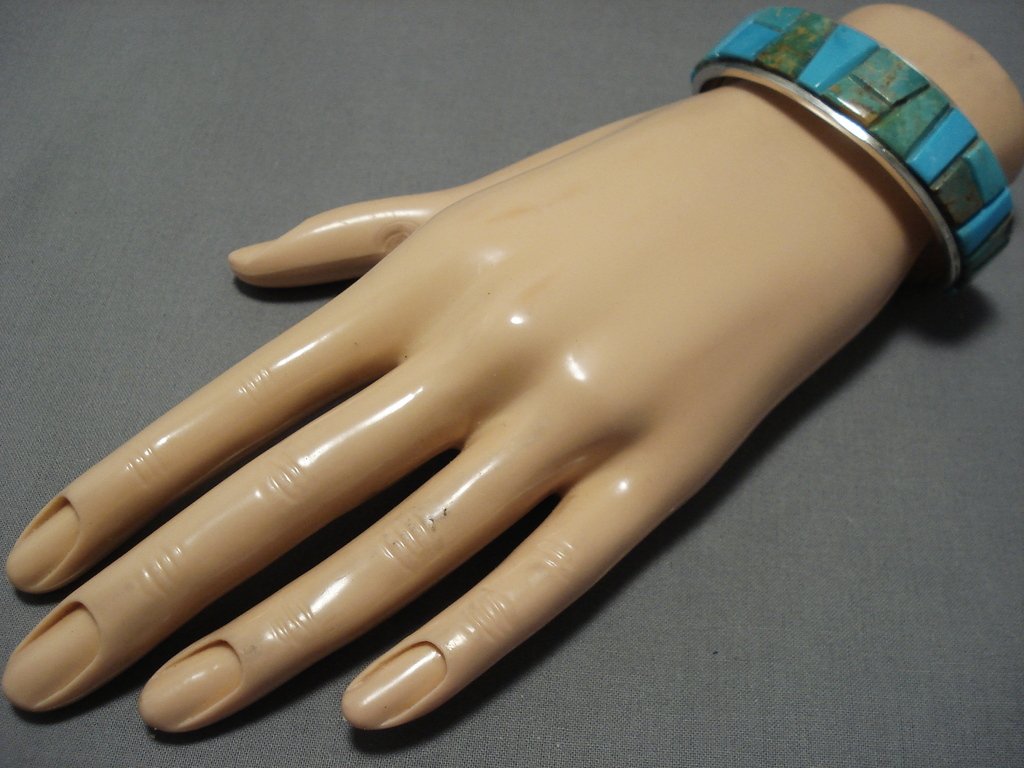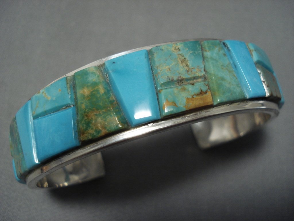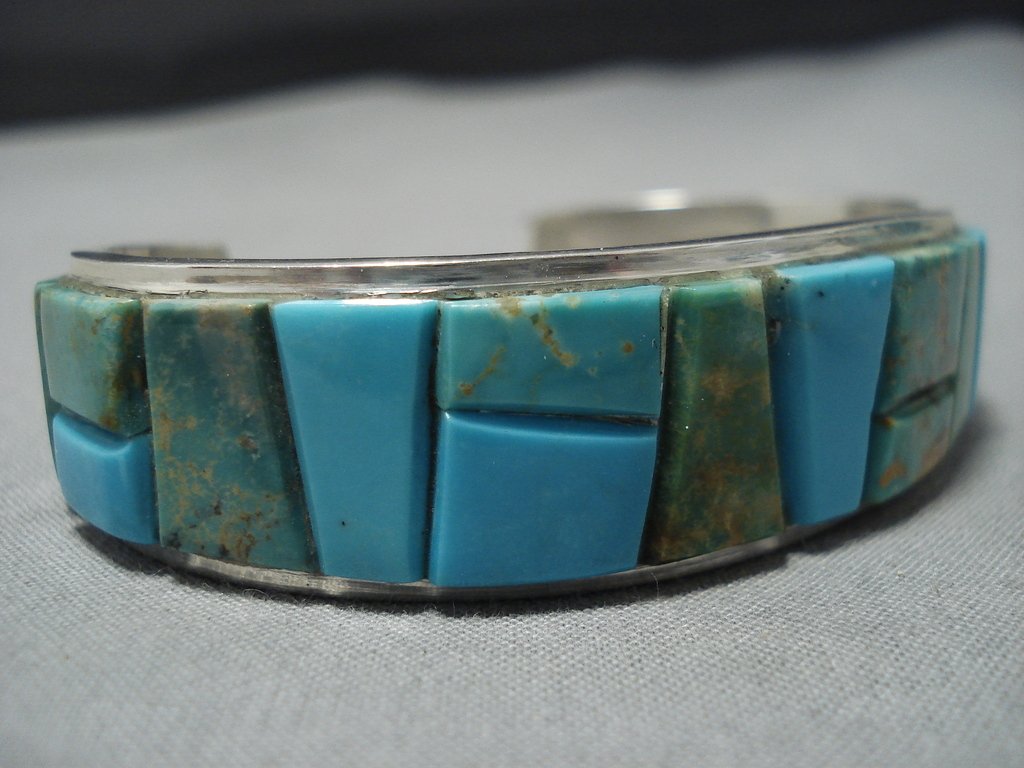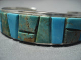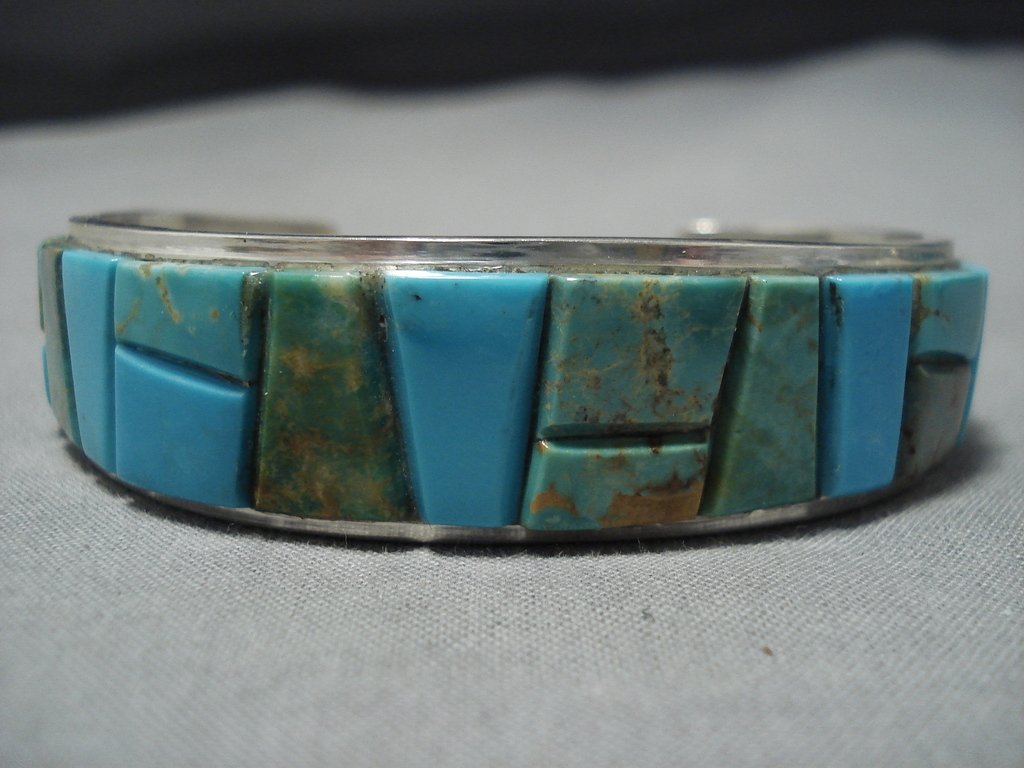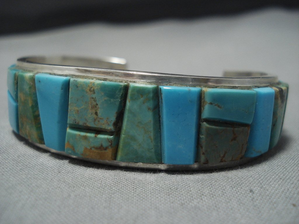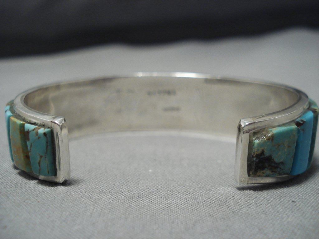 Rare Navajo Royston Turquoise Inlay Sterling Silver Native American Jewelry Bracelet