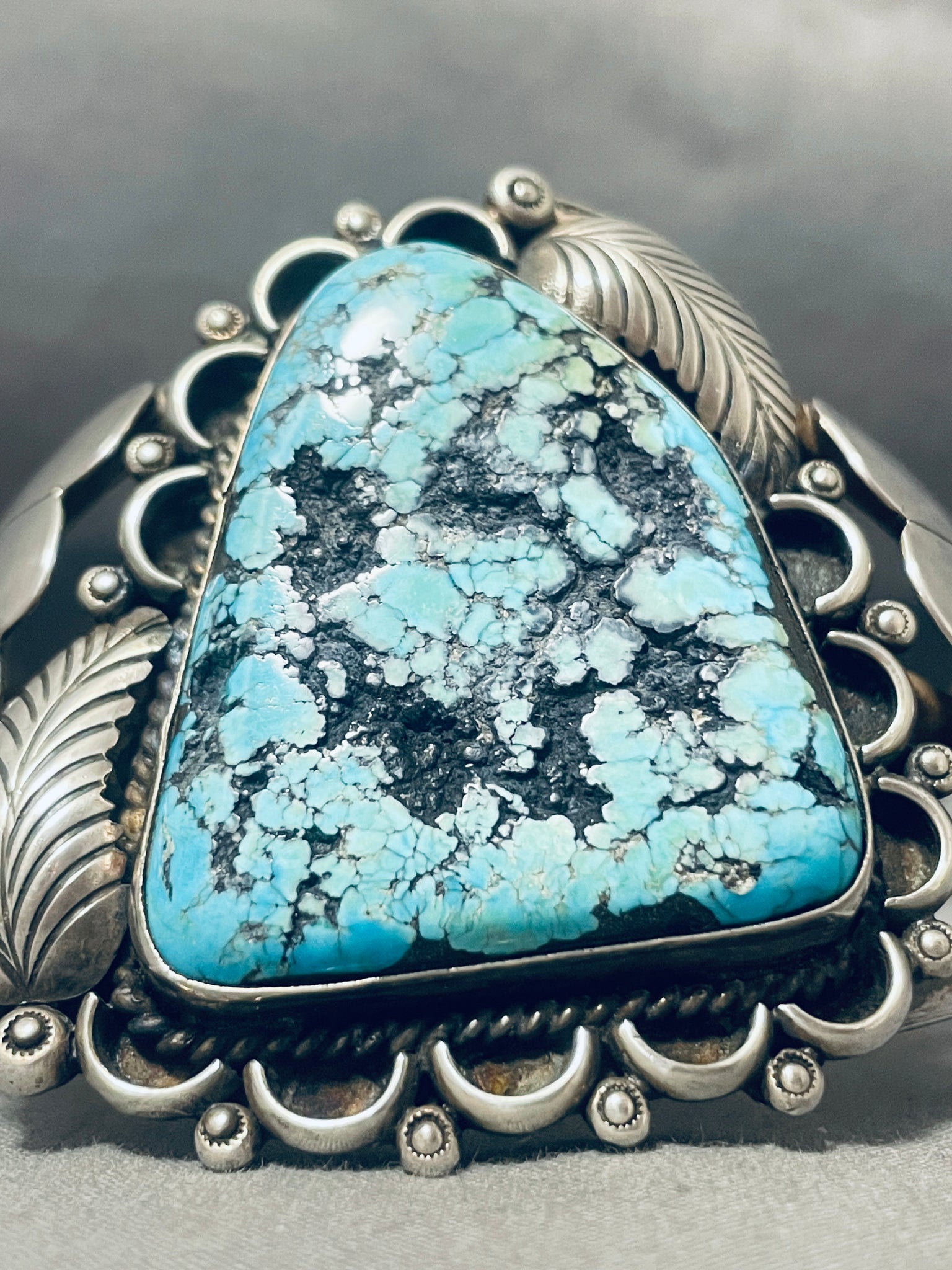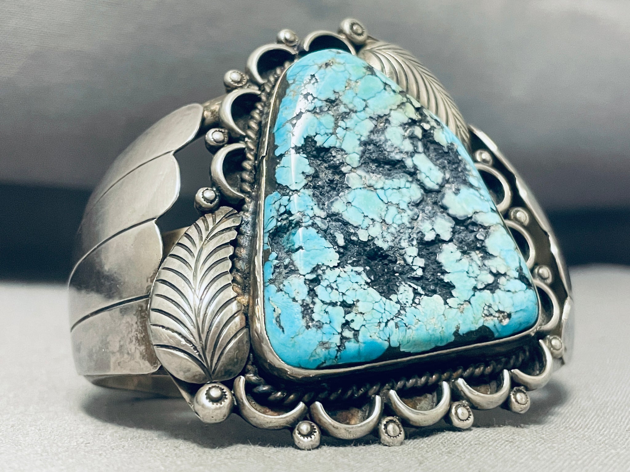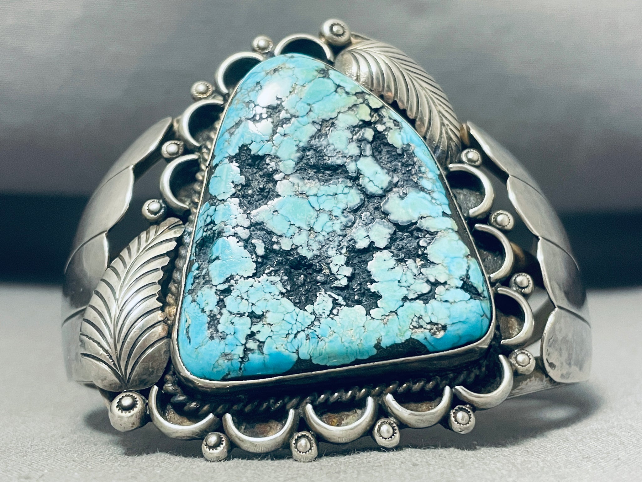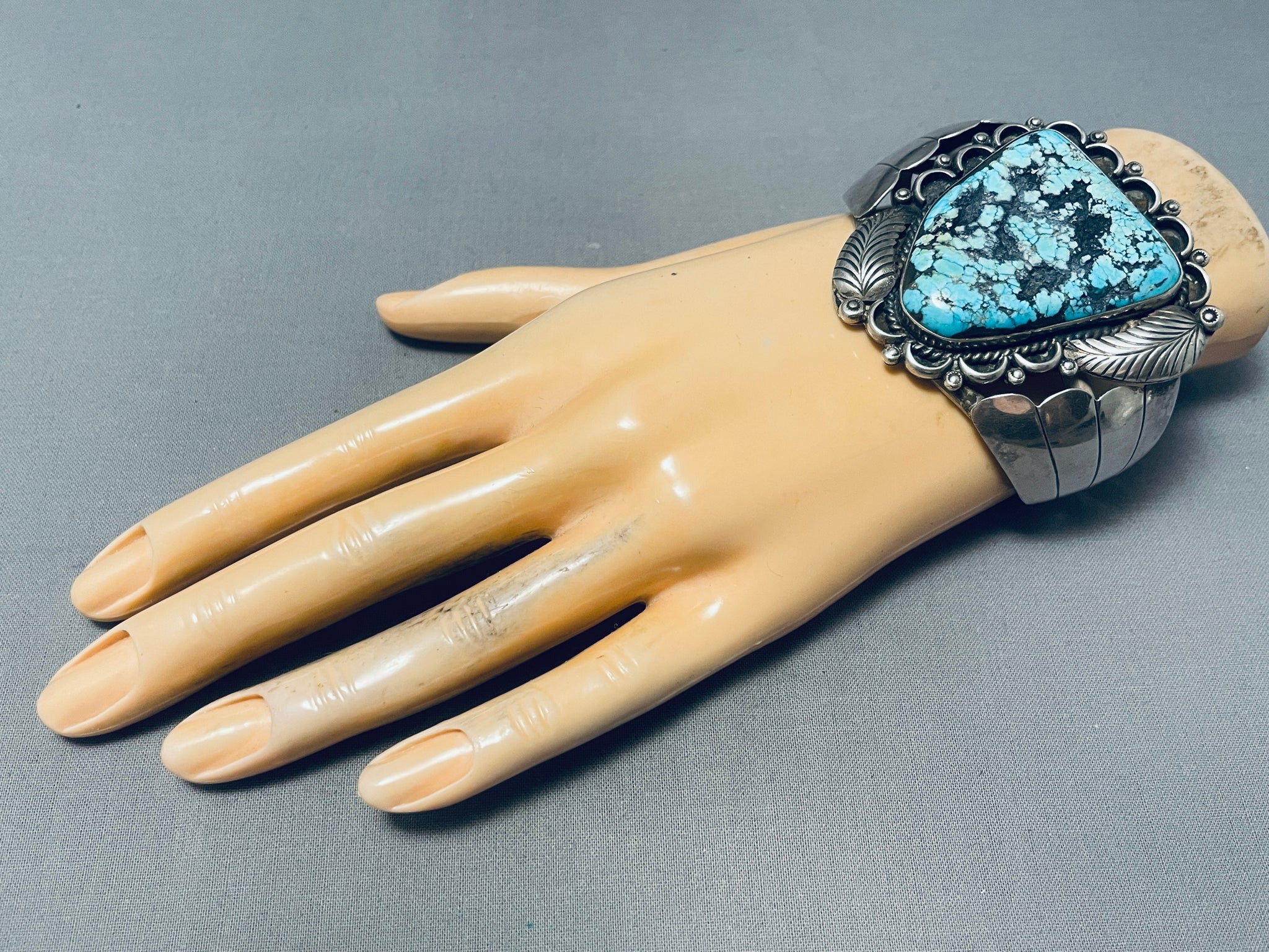 Rare Old Deposit Vintage Native American Navajo Turquoise Sterling Silver Bracelet Cuff