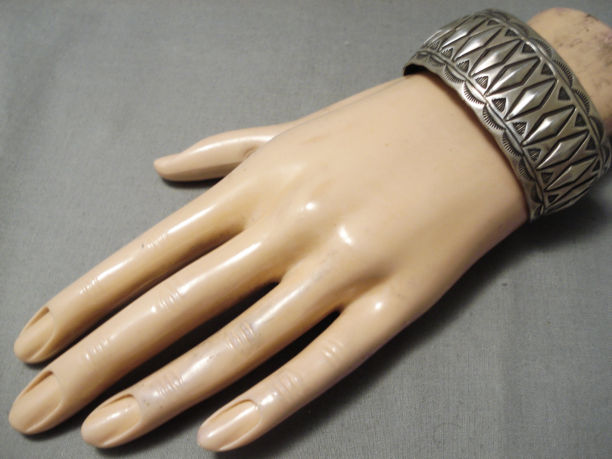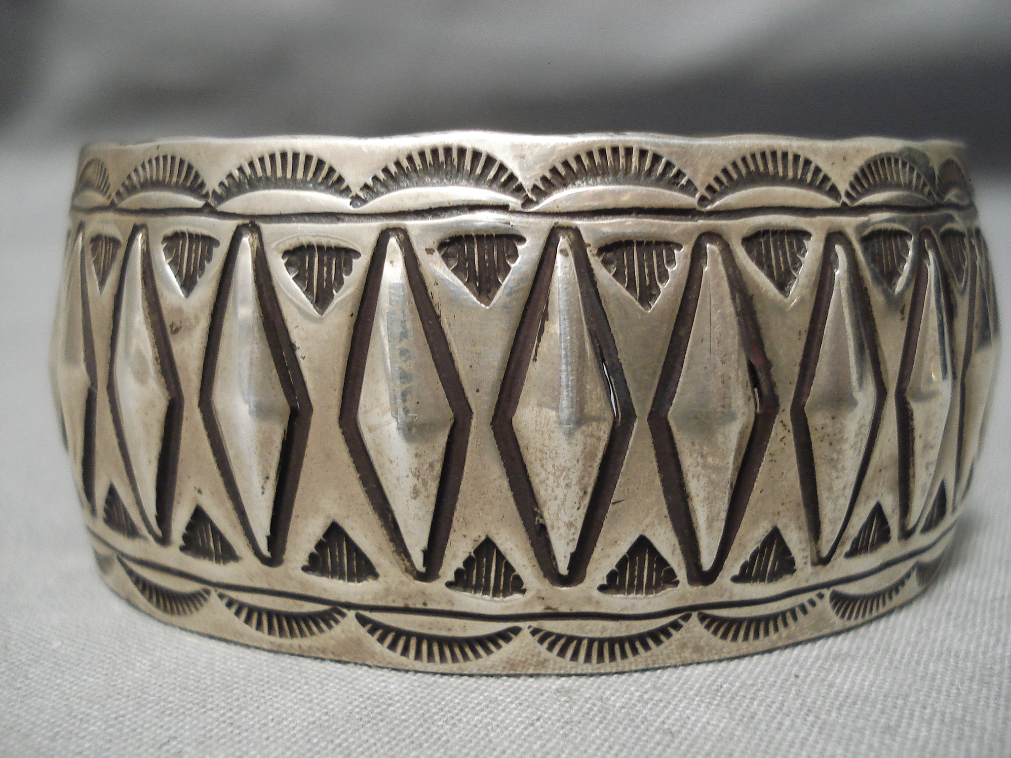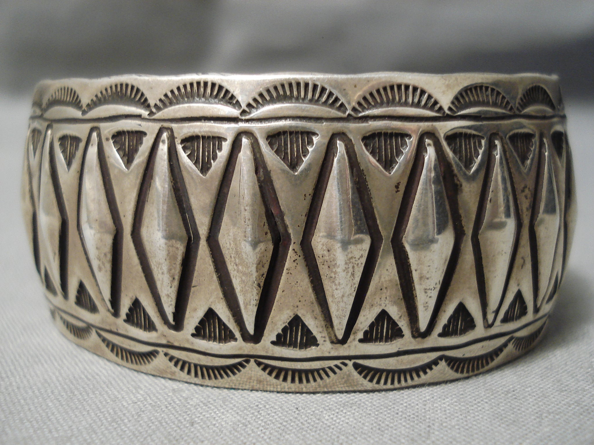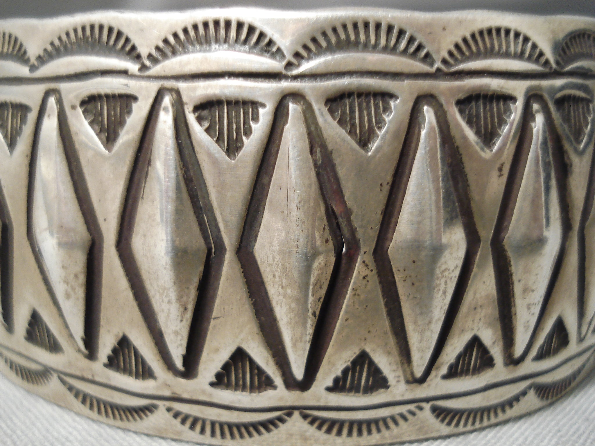 Rare Rhombus Hand Repoussed Sterling Silver Vintage Native American Navajo Bracelet
