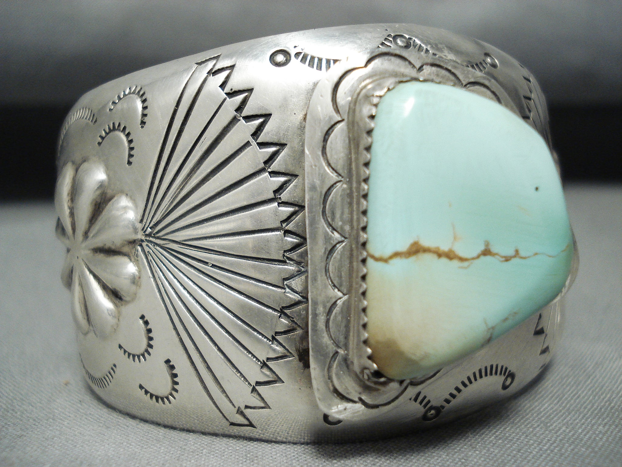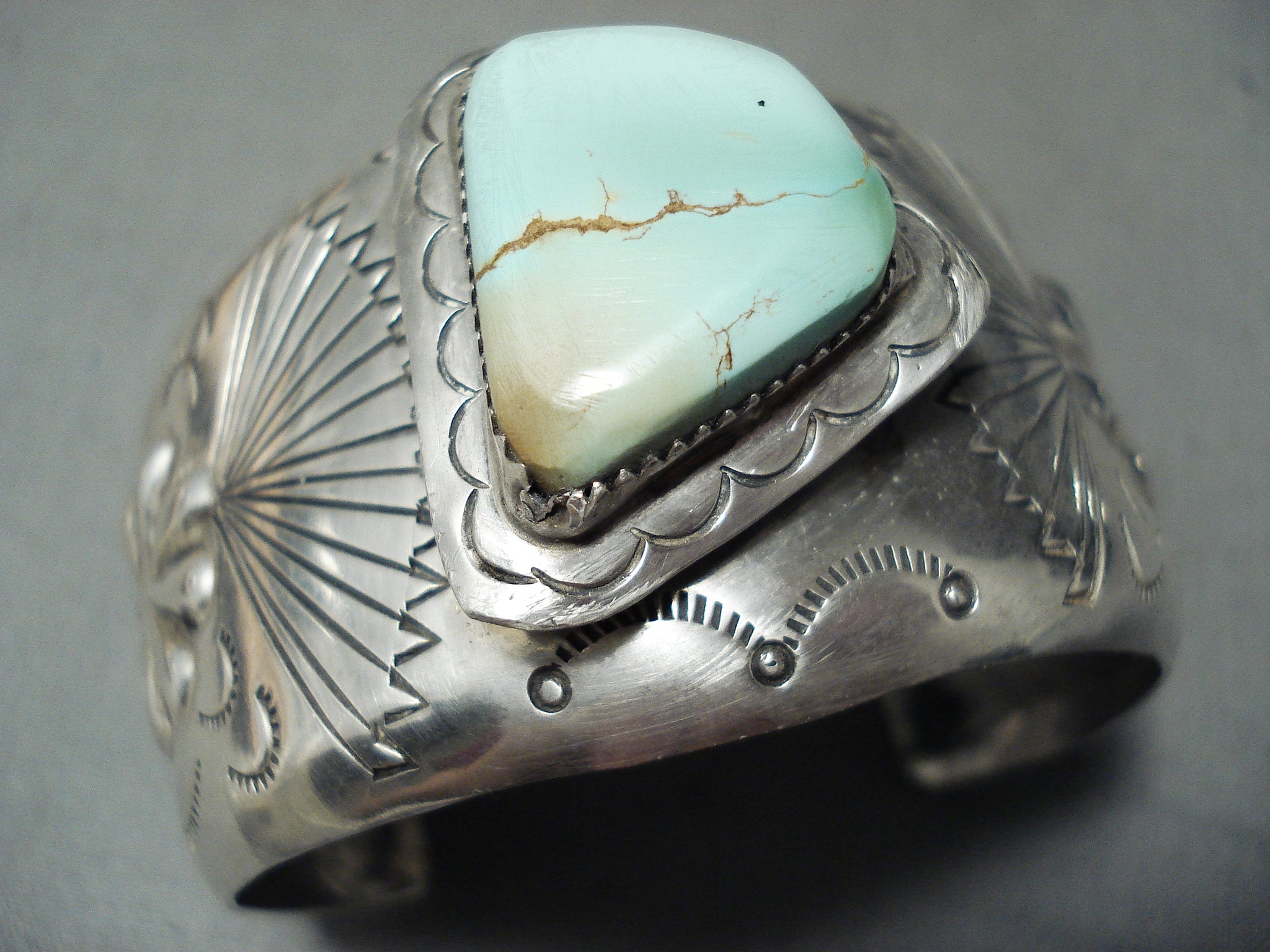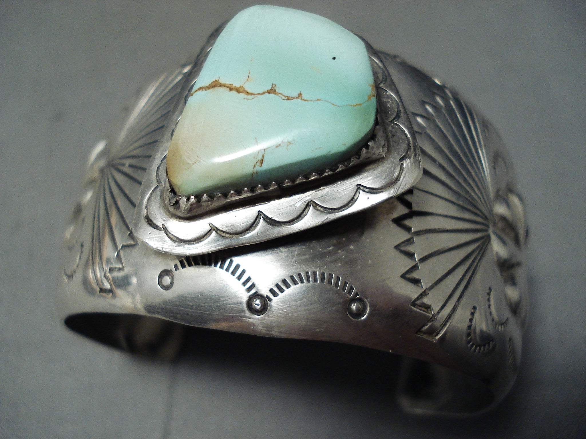 Rare Signed Vintage Native American Navajo Green Turquoise Sterling Silver Bracelet