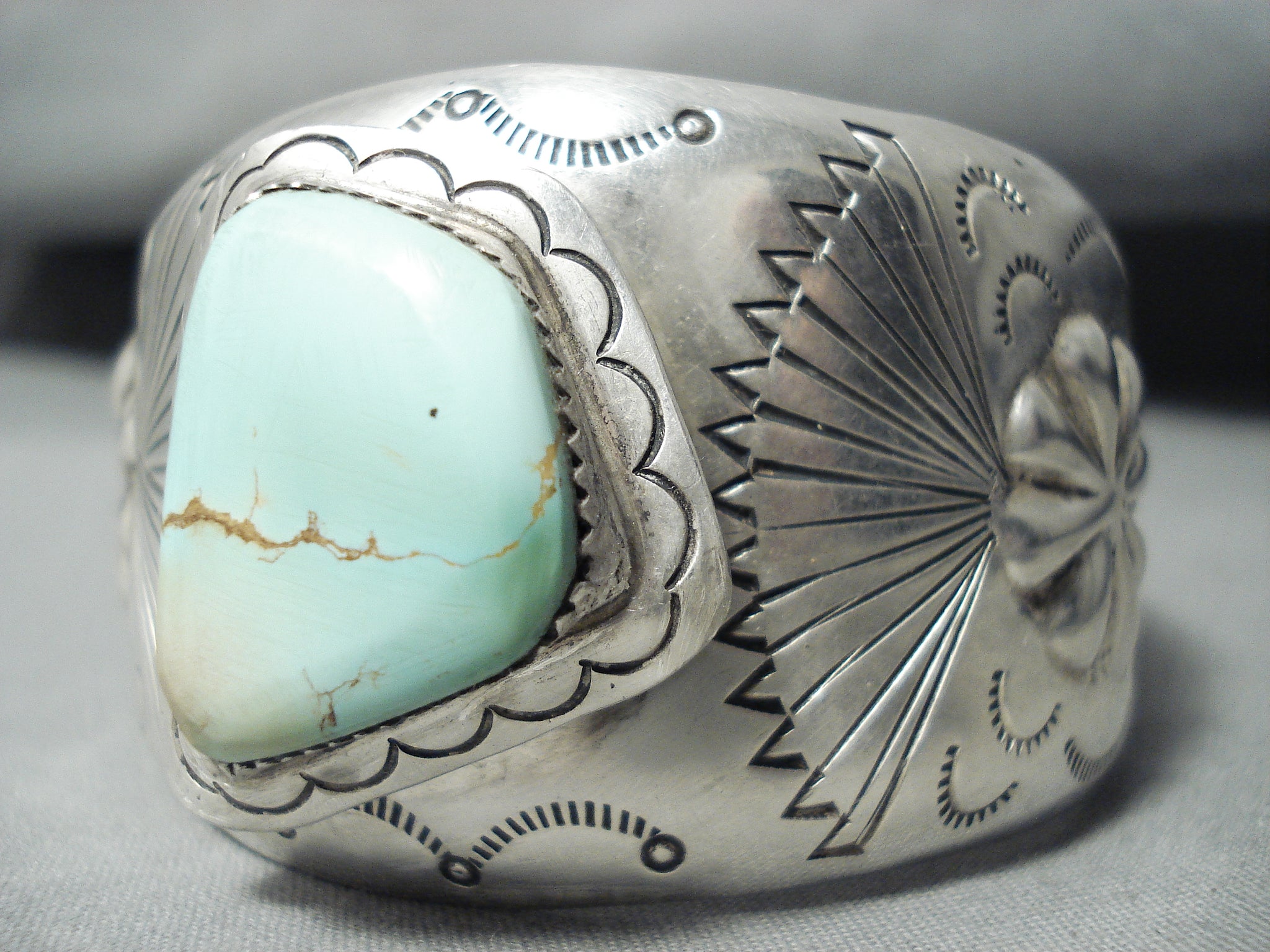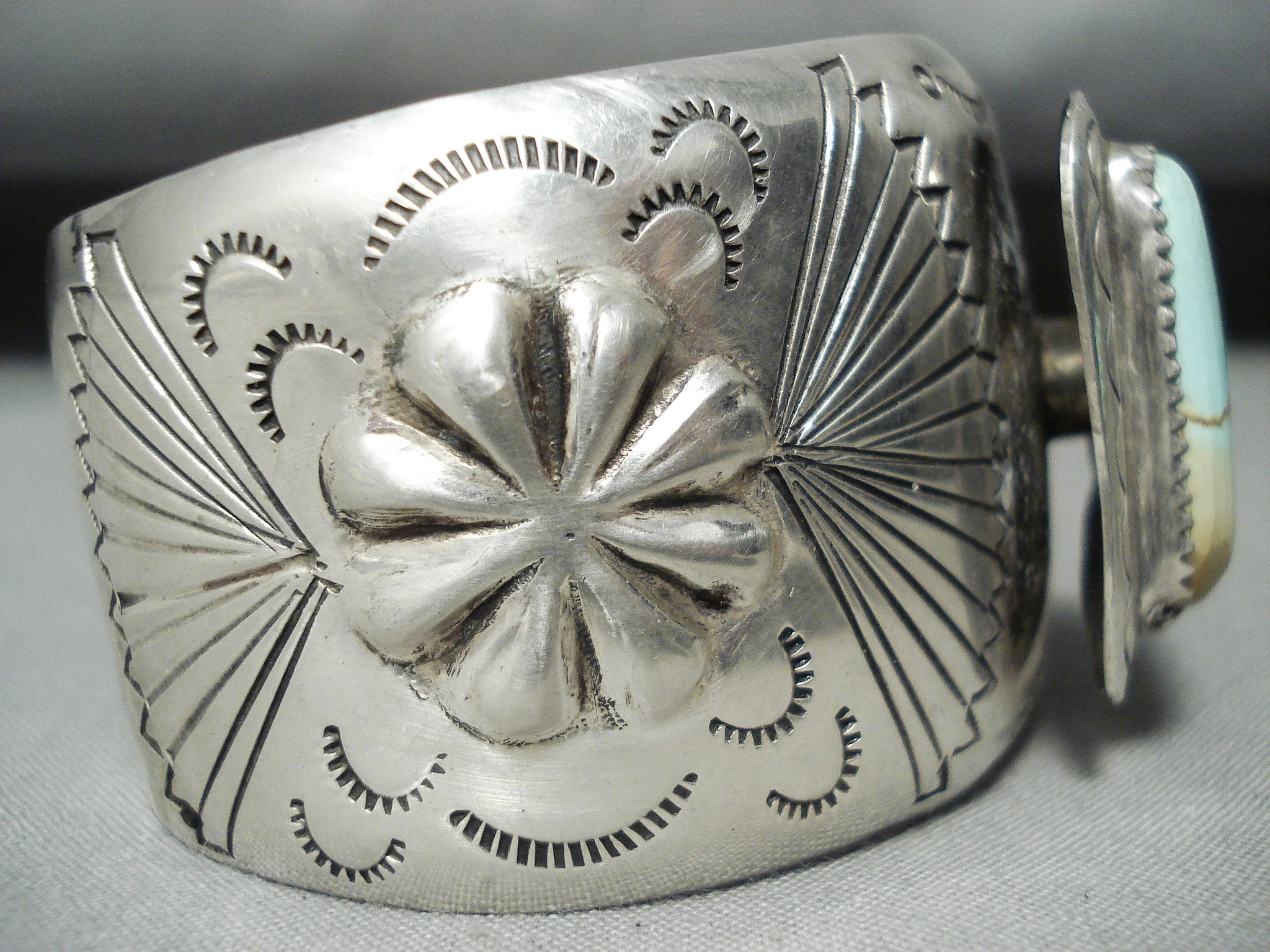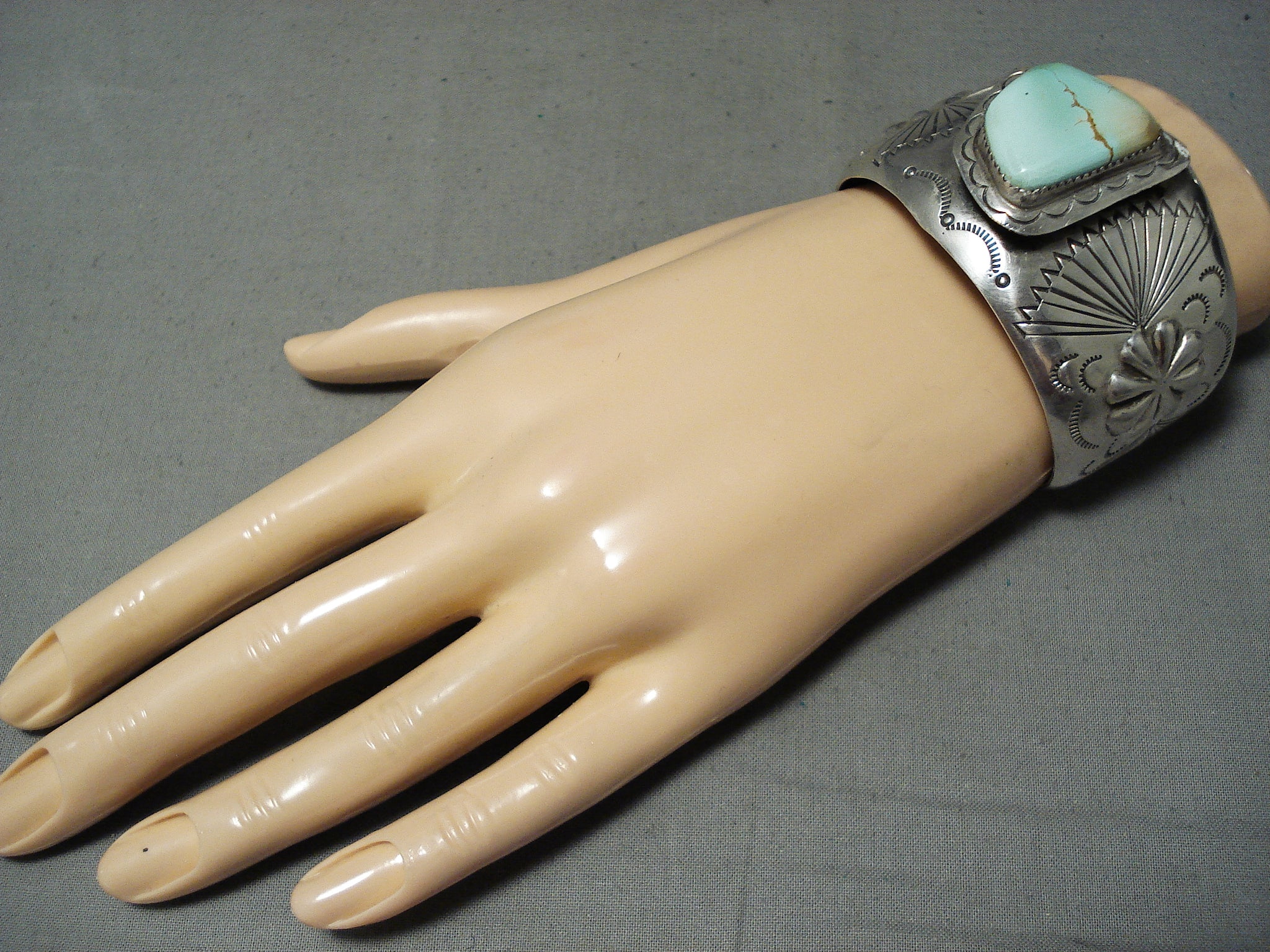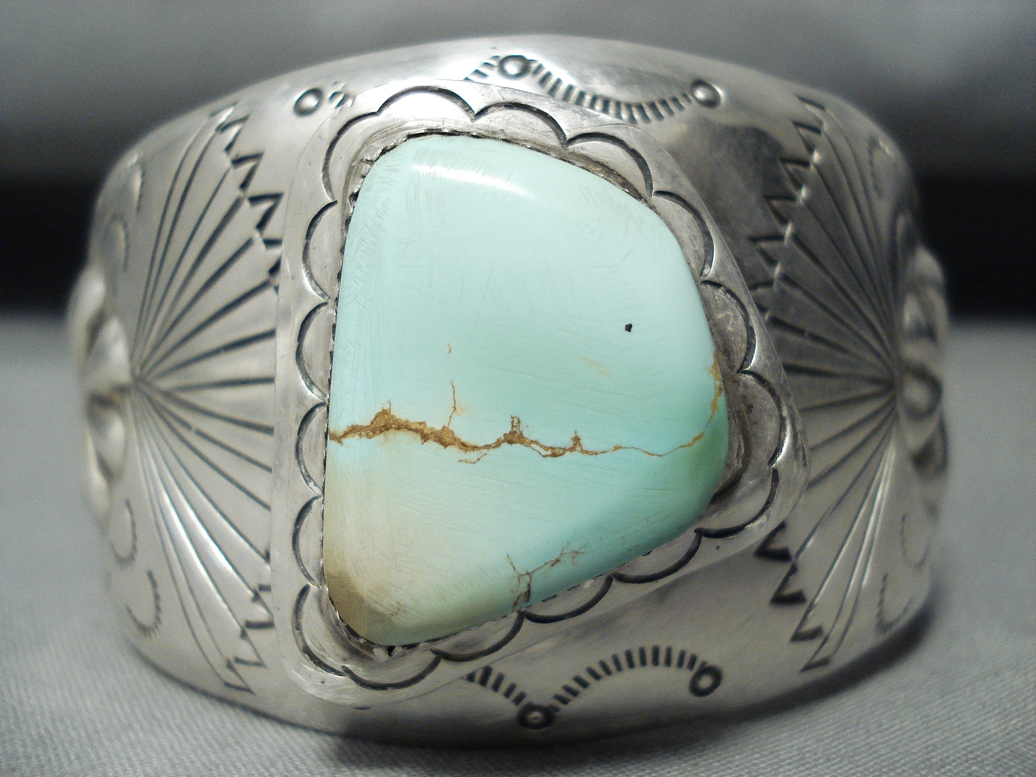 Rare Signed Vintage Native American Navajo Green Turquoise Sterling Silver Bracelet