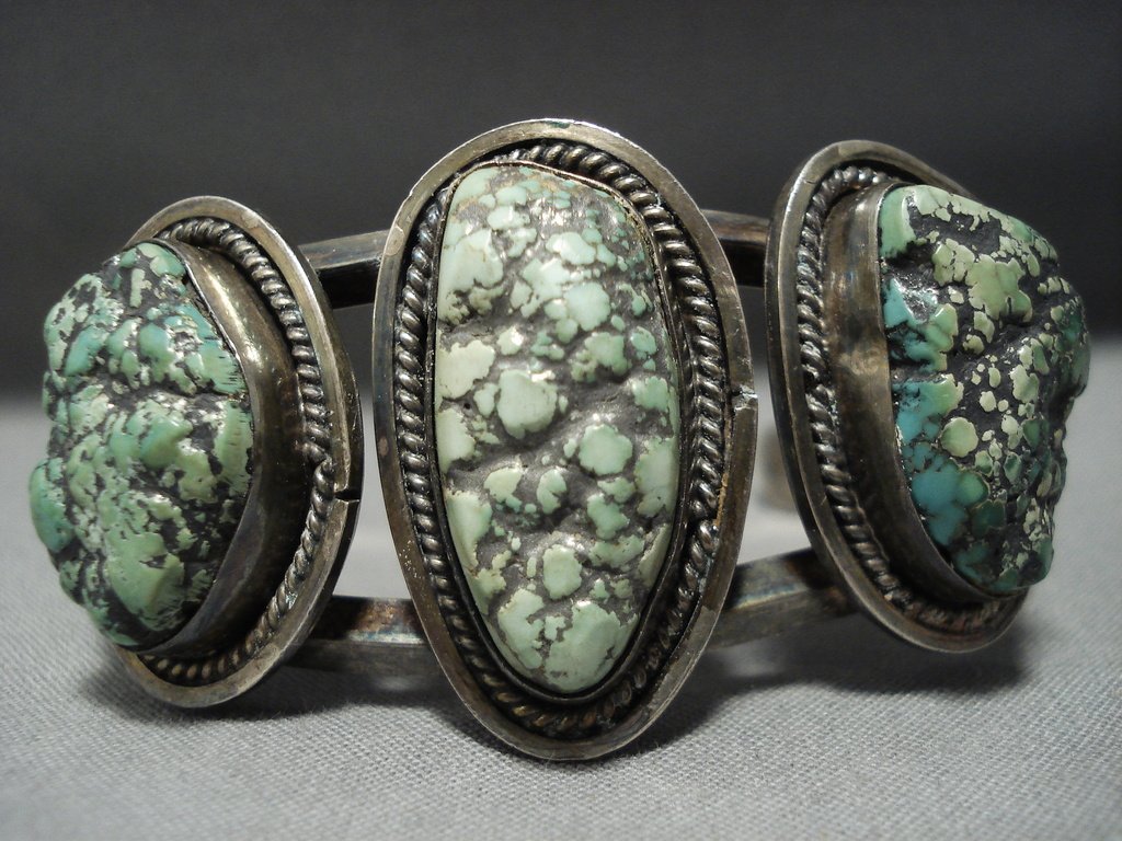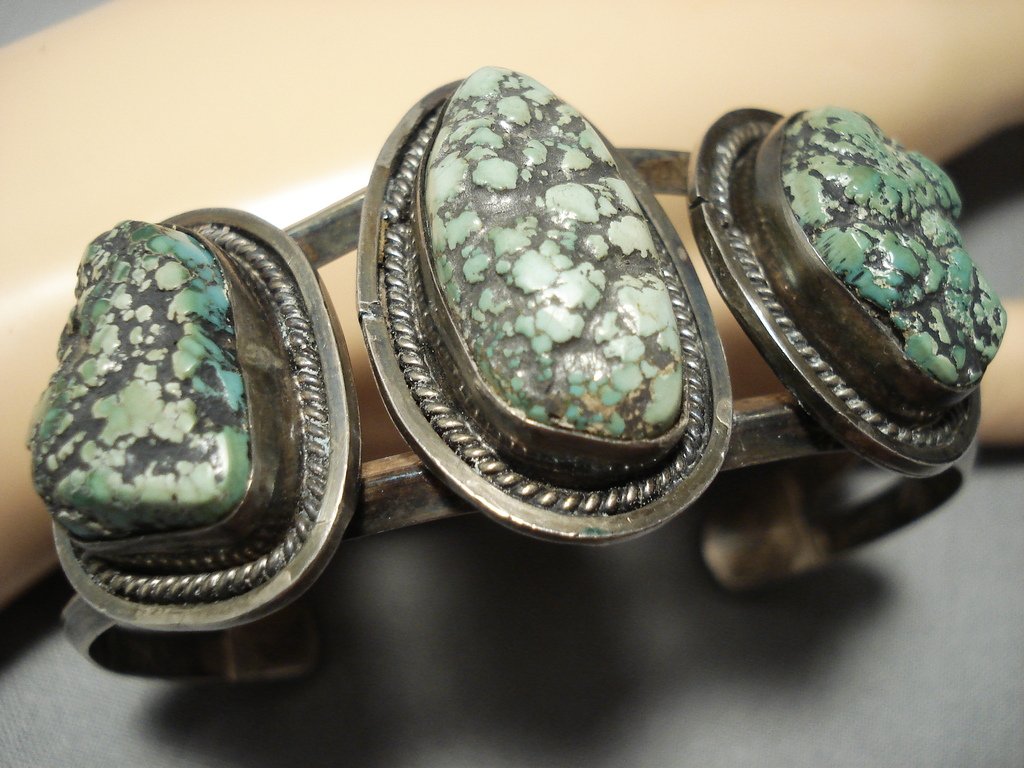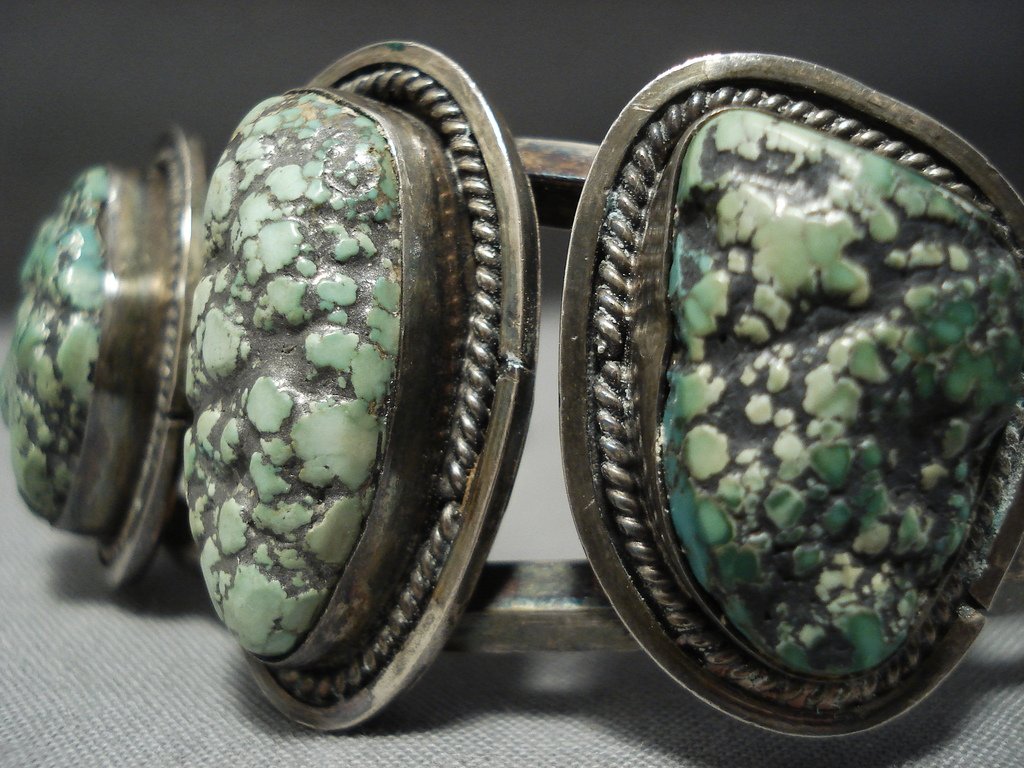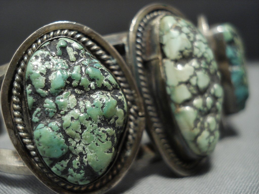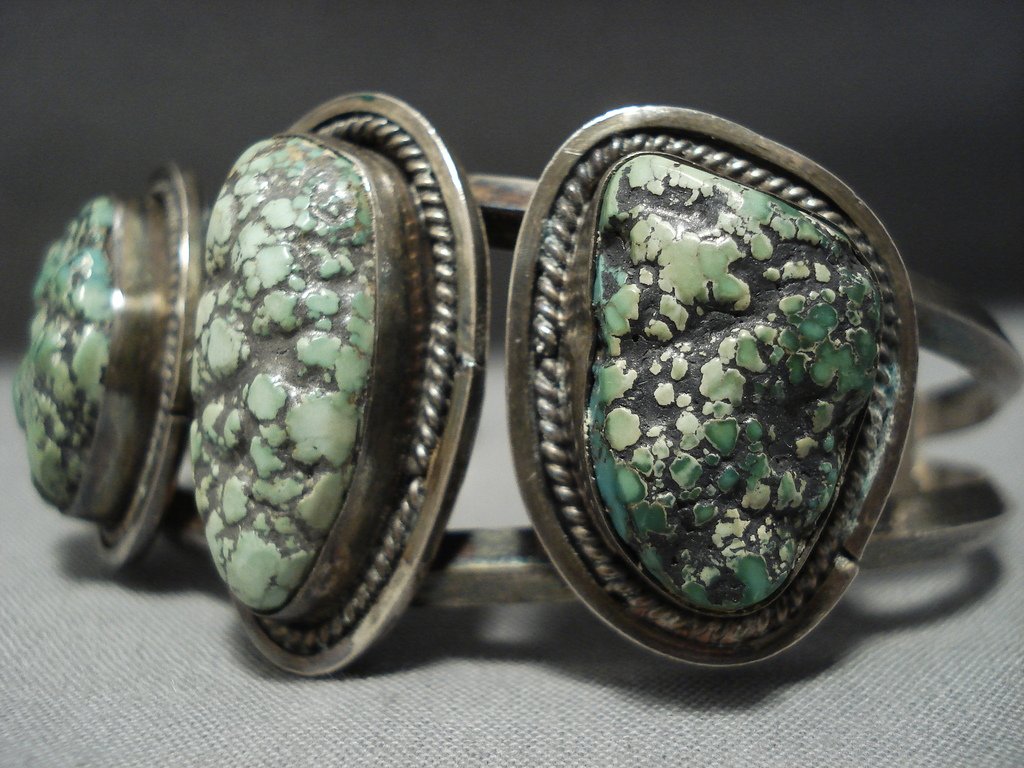 Rare Turquoise!! Green Sterling Silver Navajo Native American Jewelry Bracelet Old