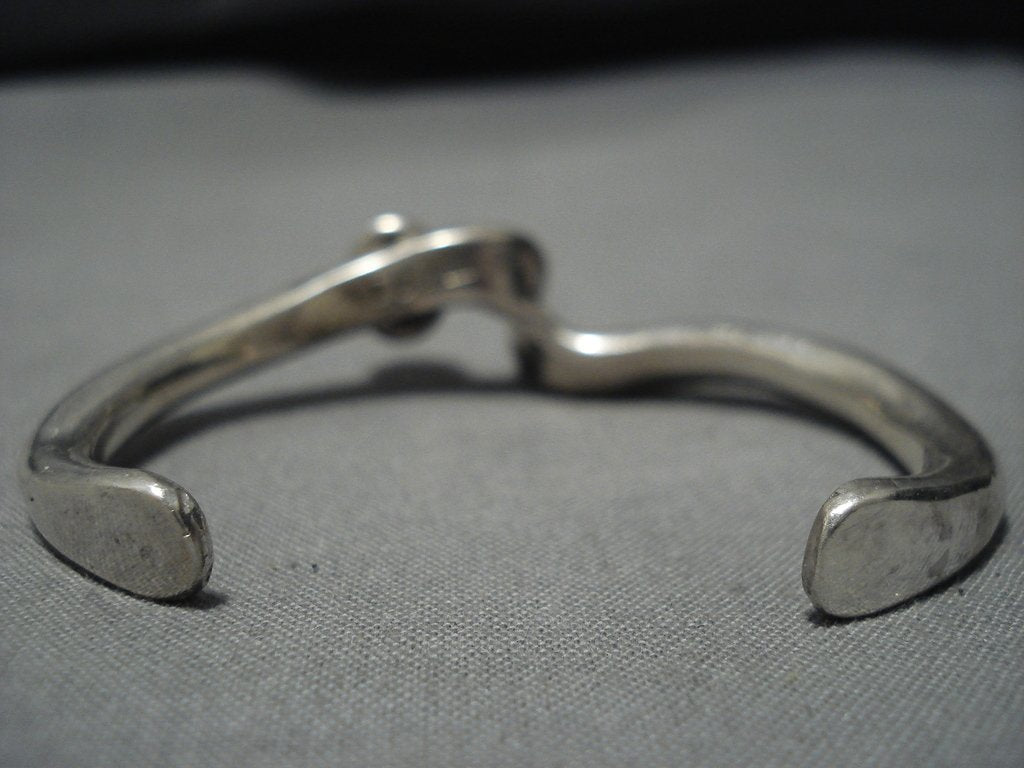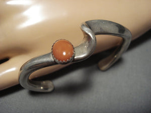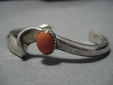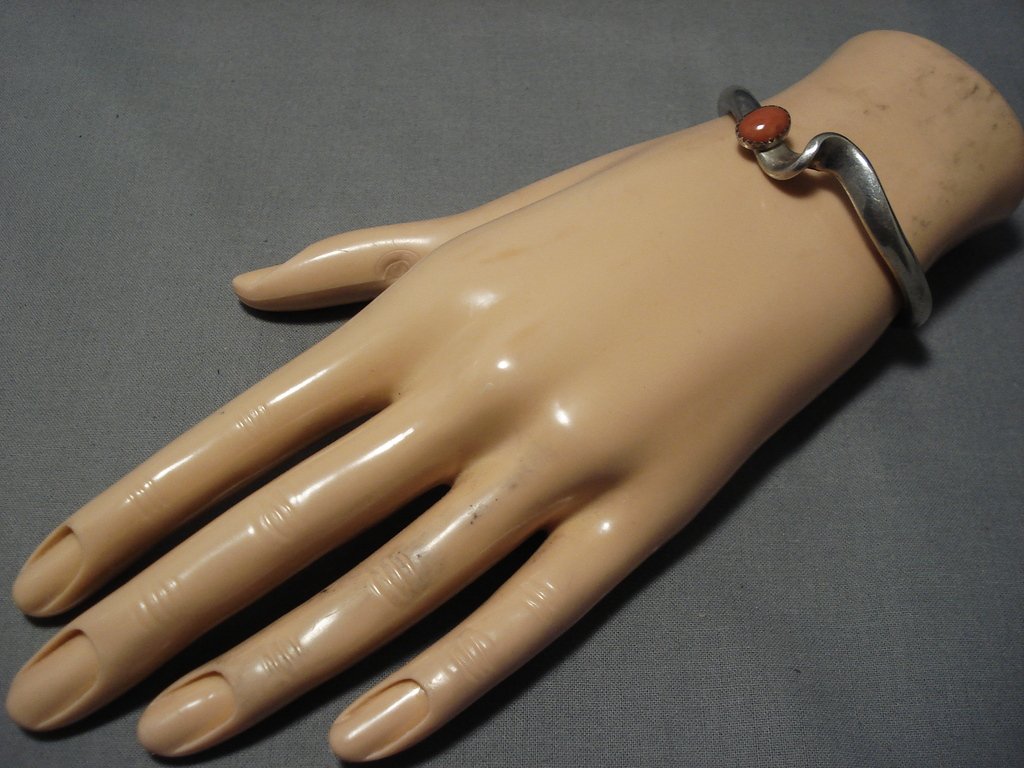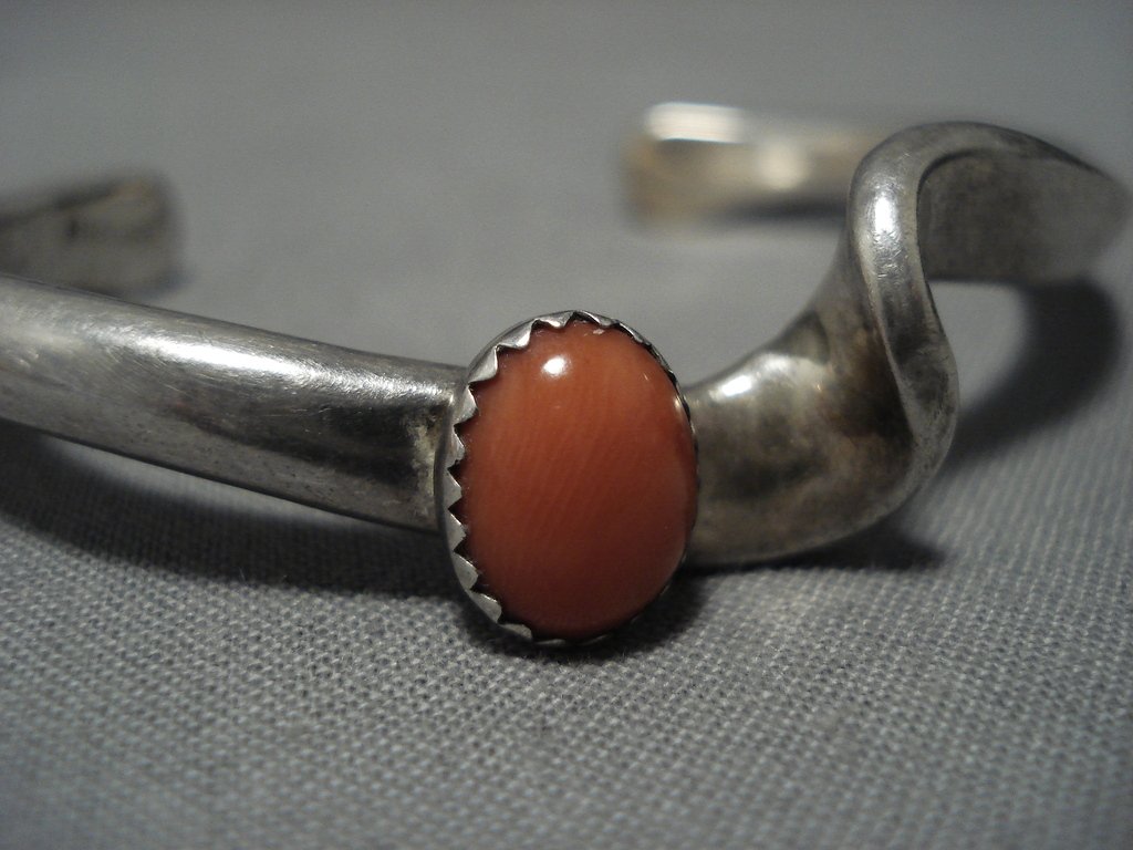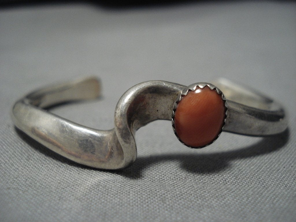 Rare Twisting Vintsage Native American Navajo Coral Sterling Silver Wave Bracelet Old Cuff