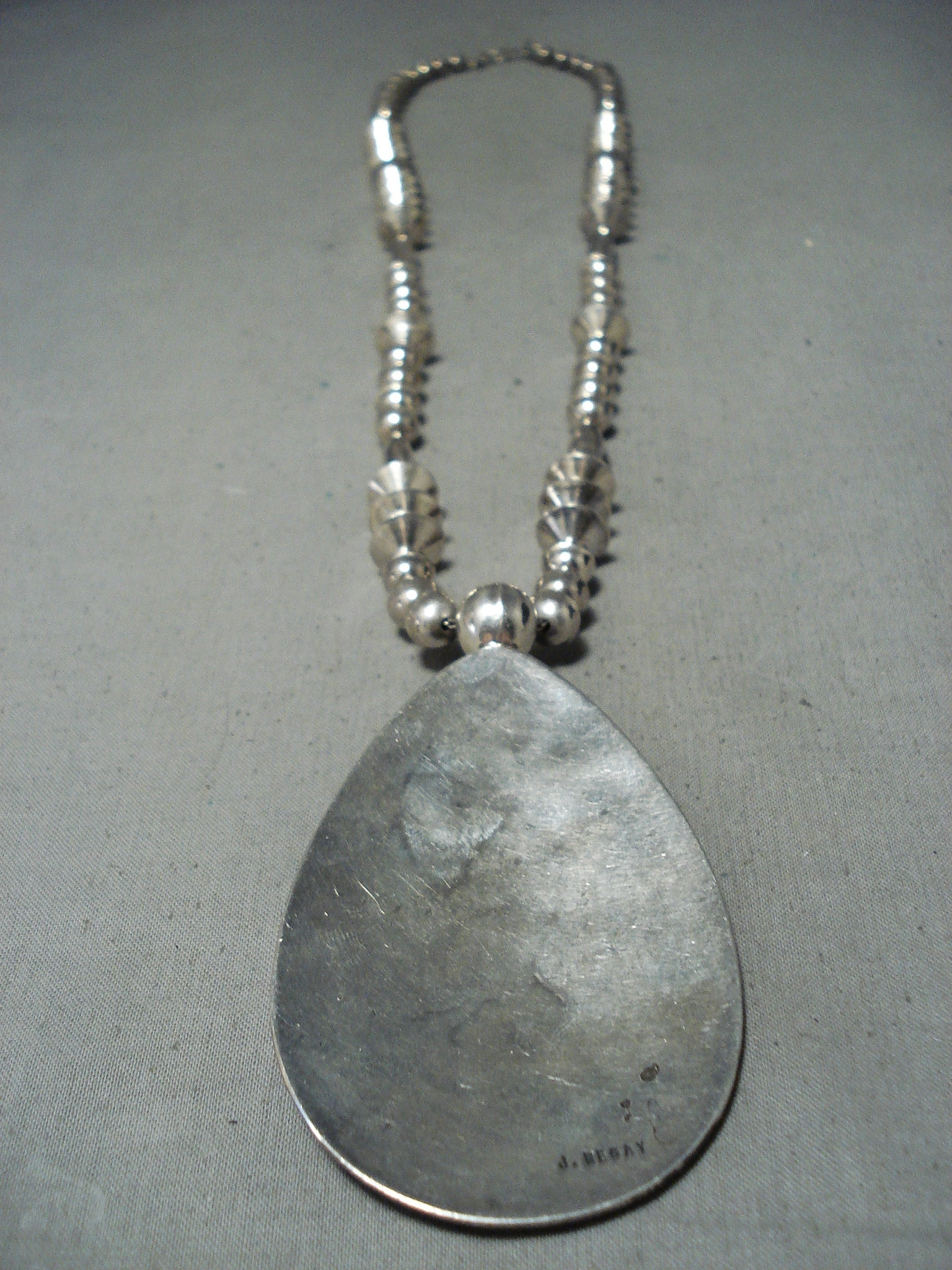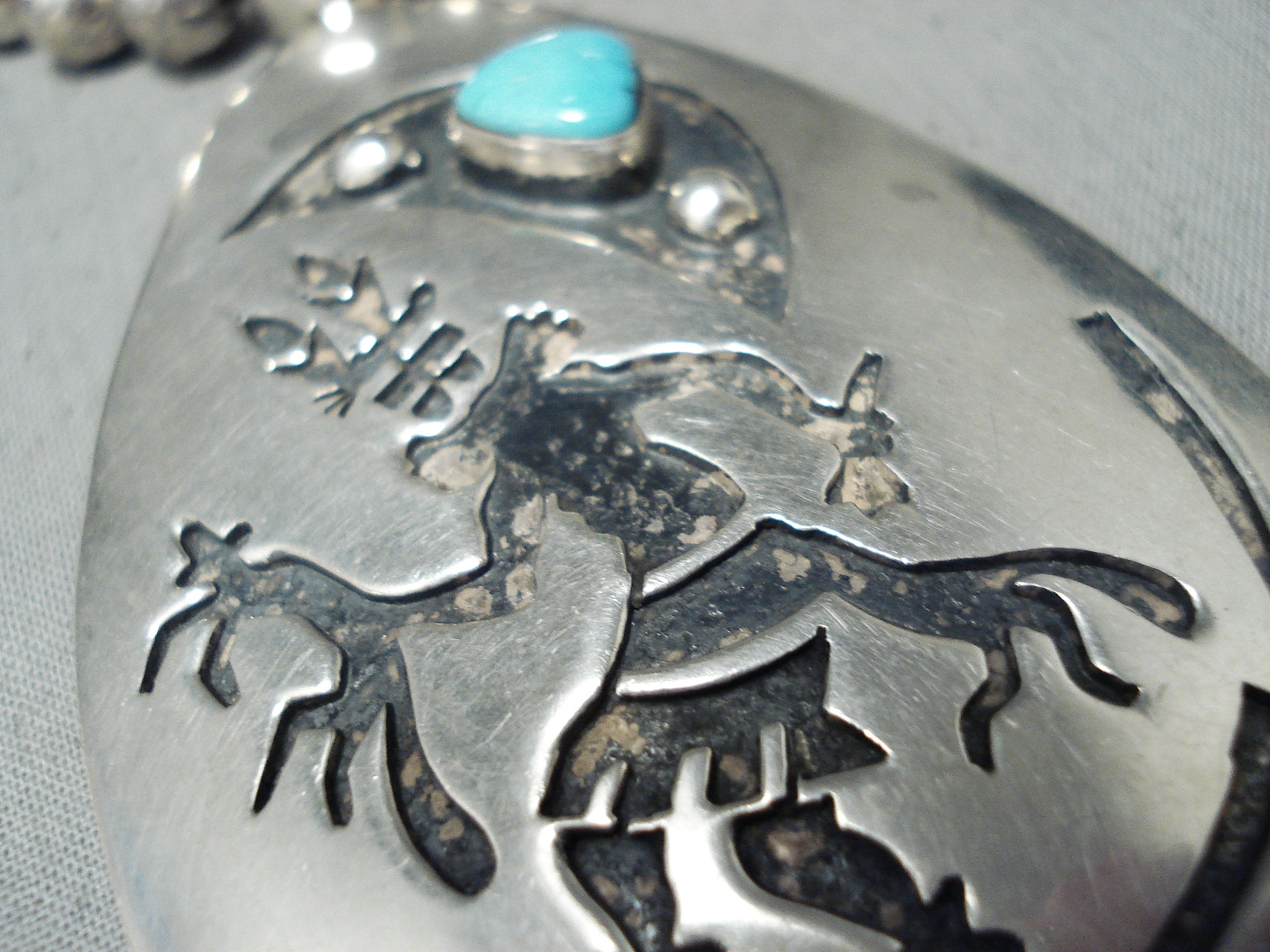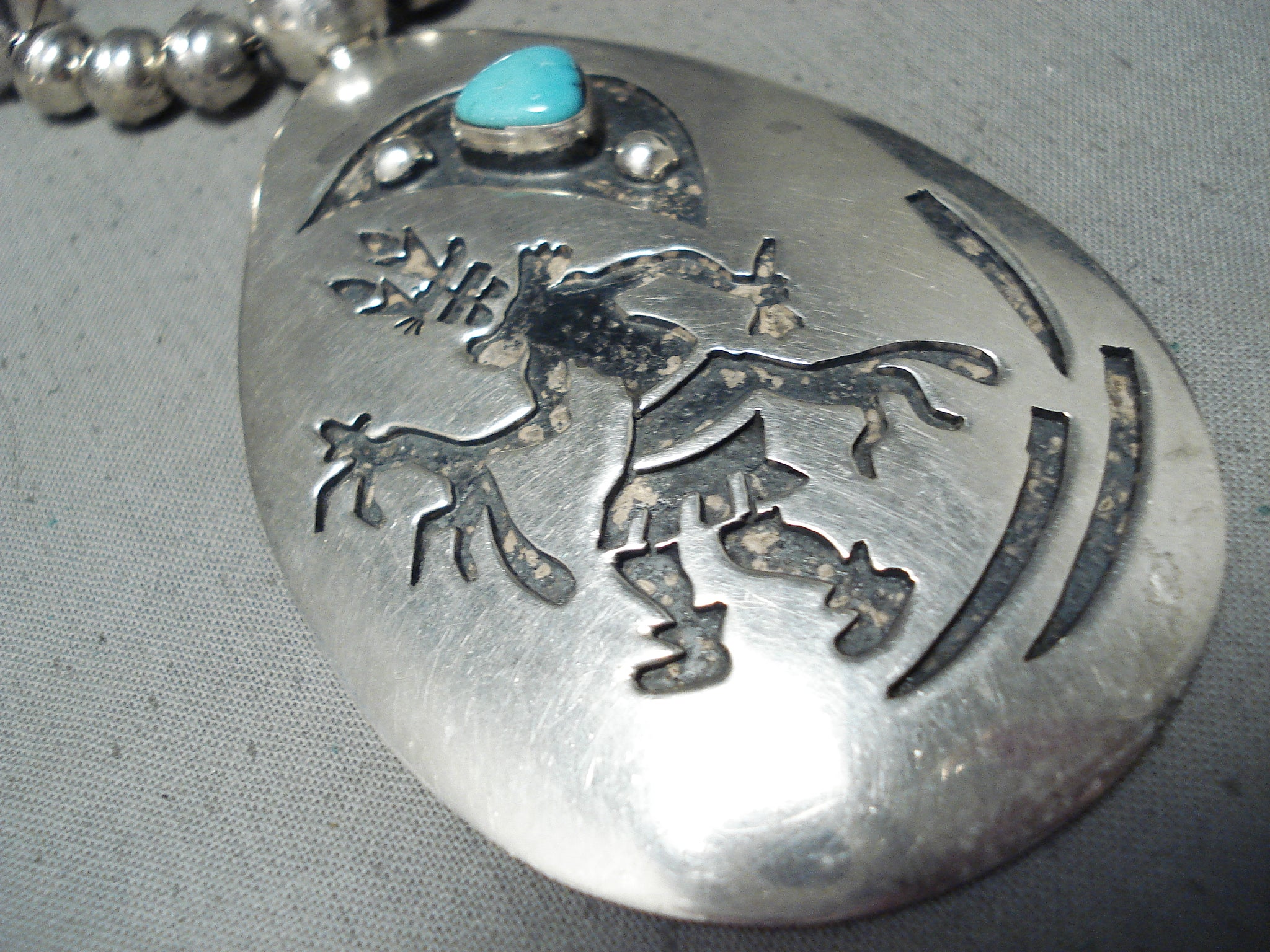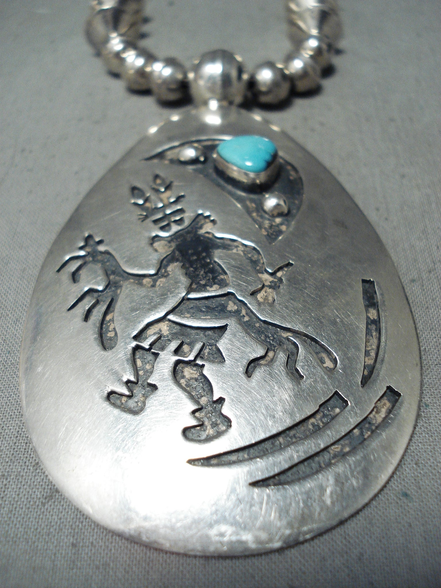 Rare Vintage Native American Navajo Blue Gem Turquoise Sterling Silver Kachina Necklace