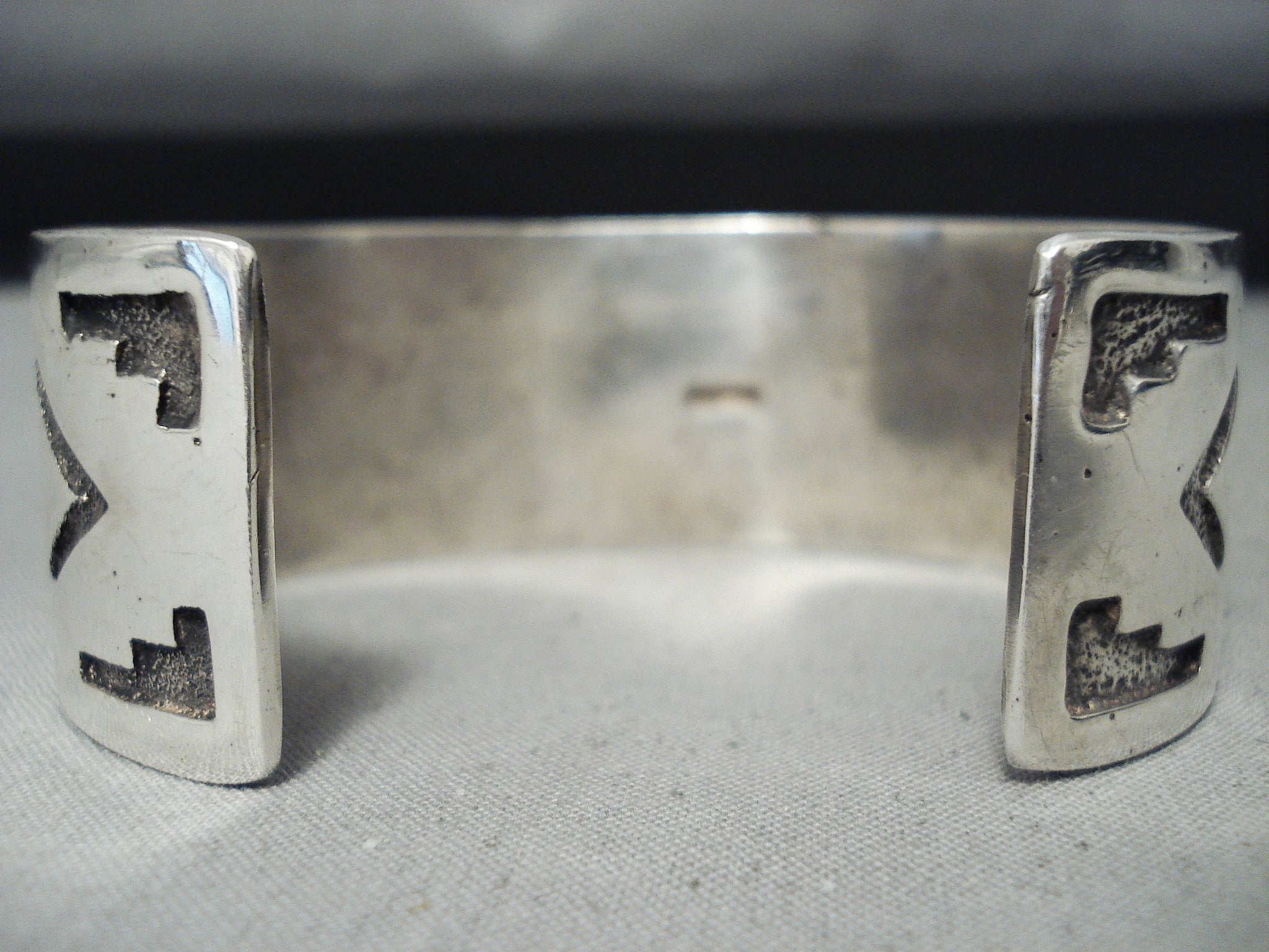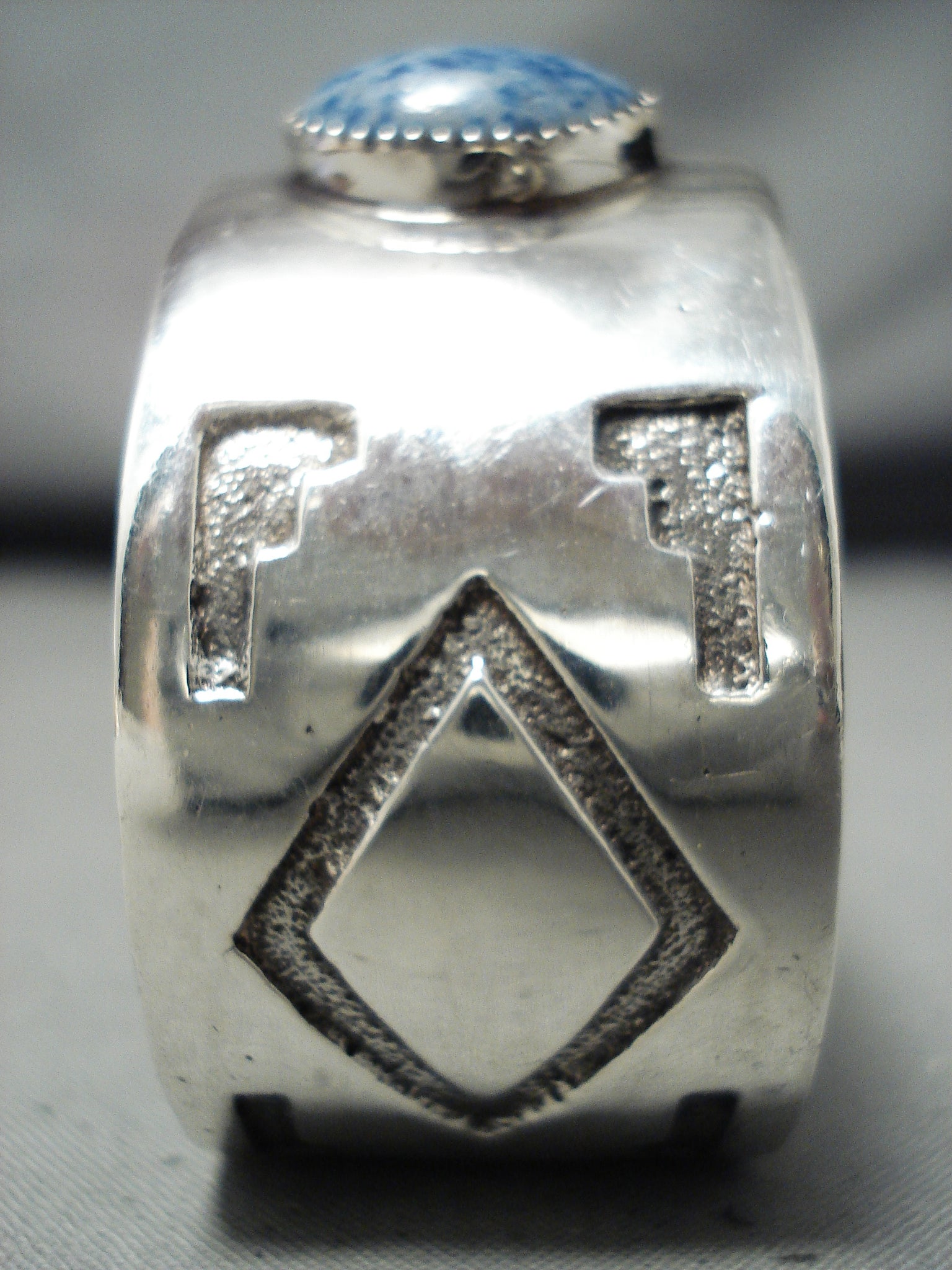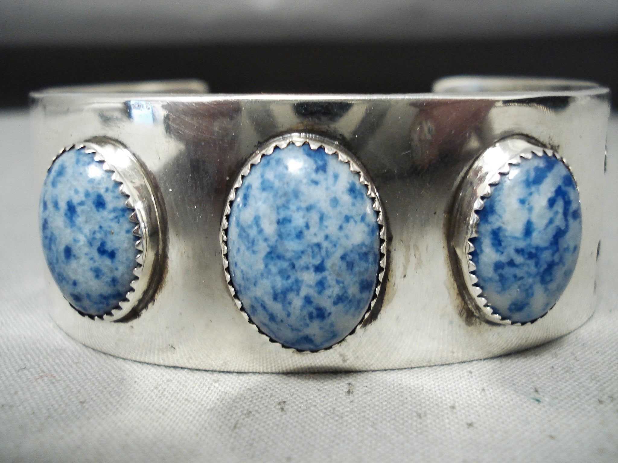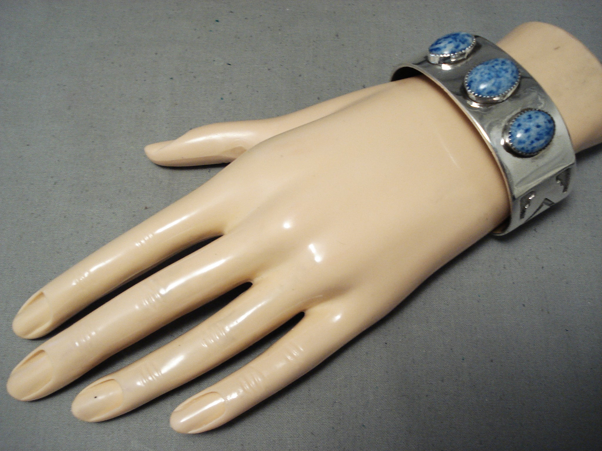 Rare Vintage Native American Navajo Domed Lapis Sterling Silver Geometric Bracelet