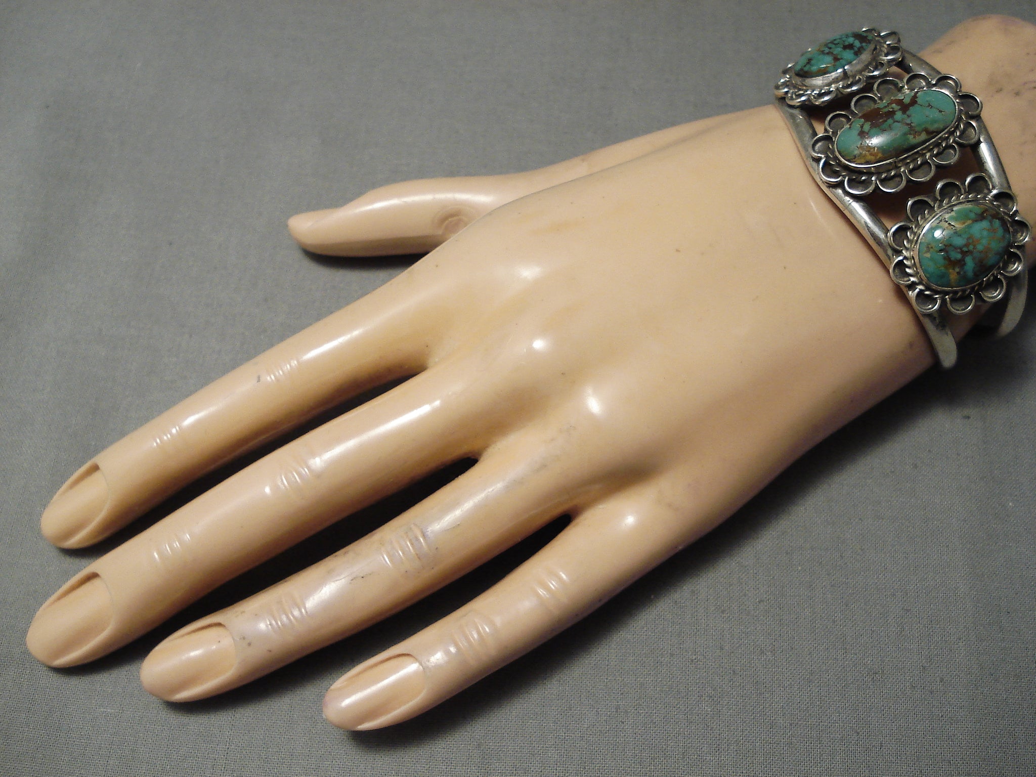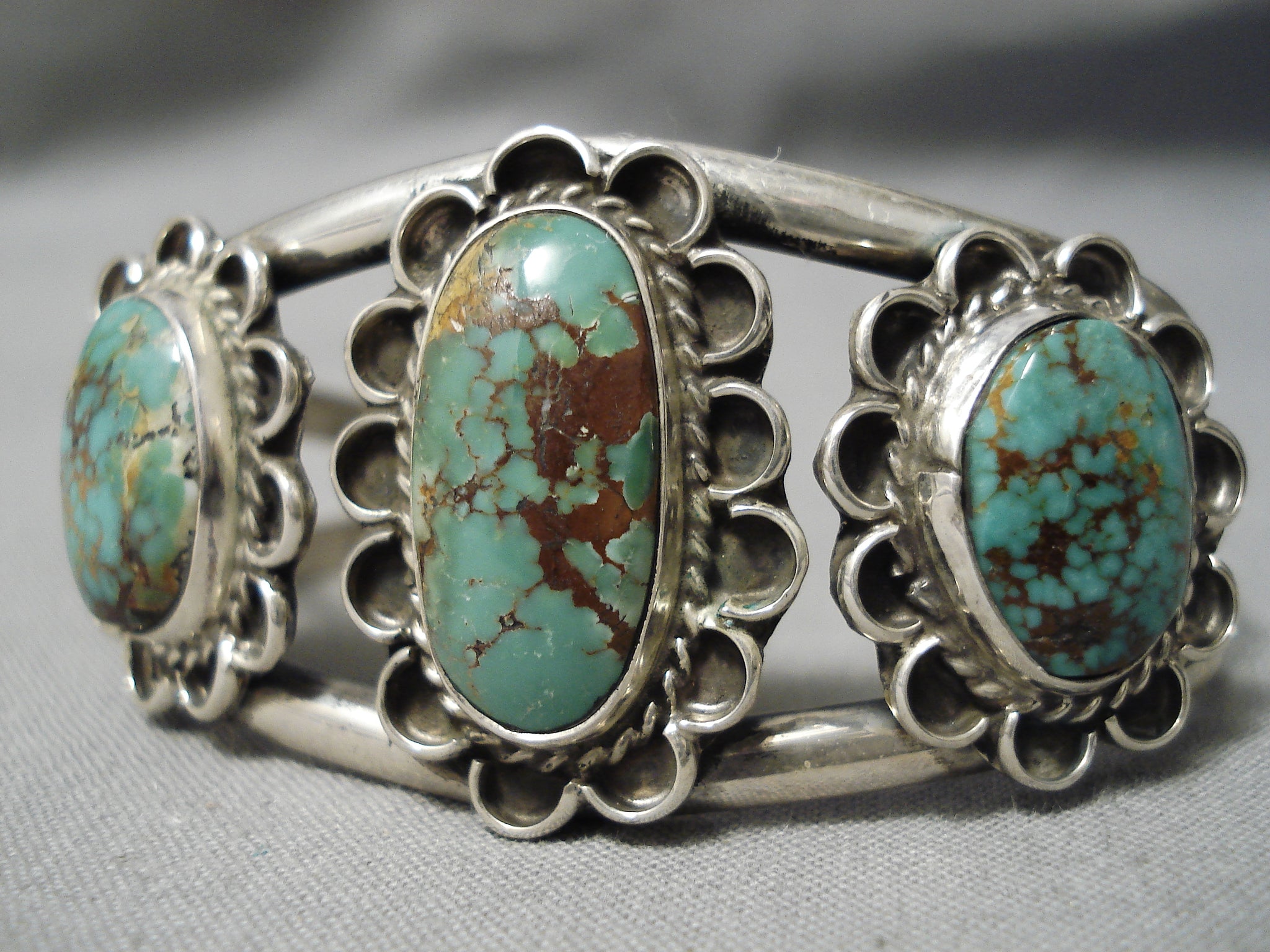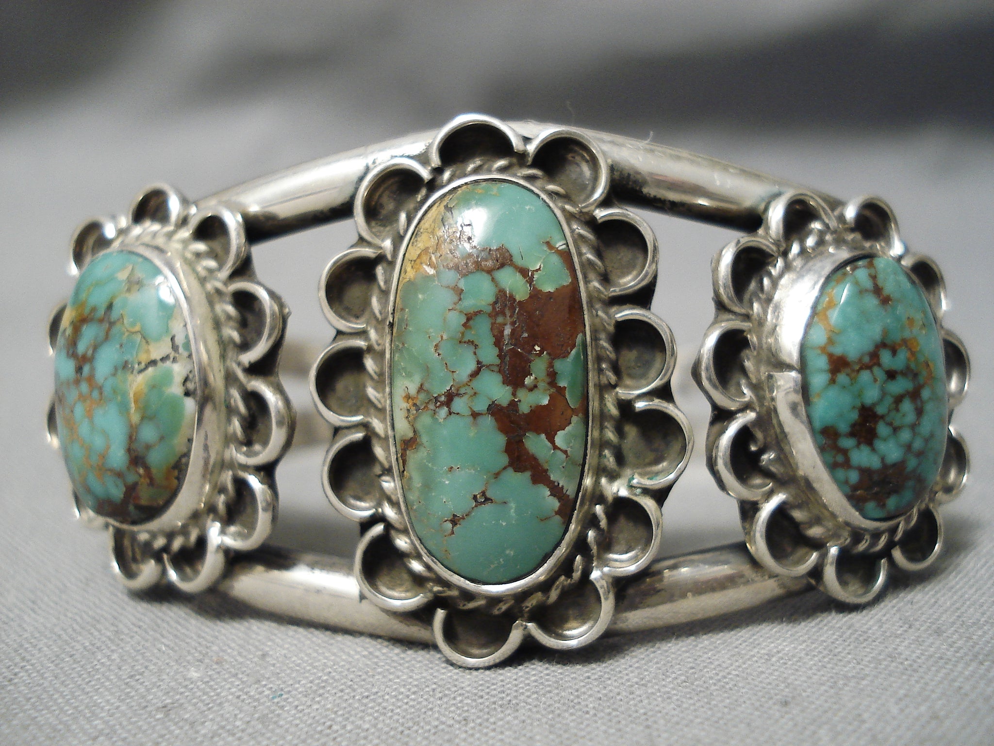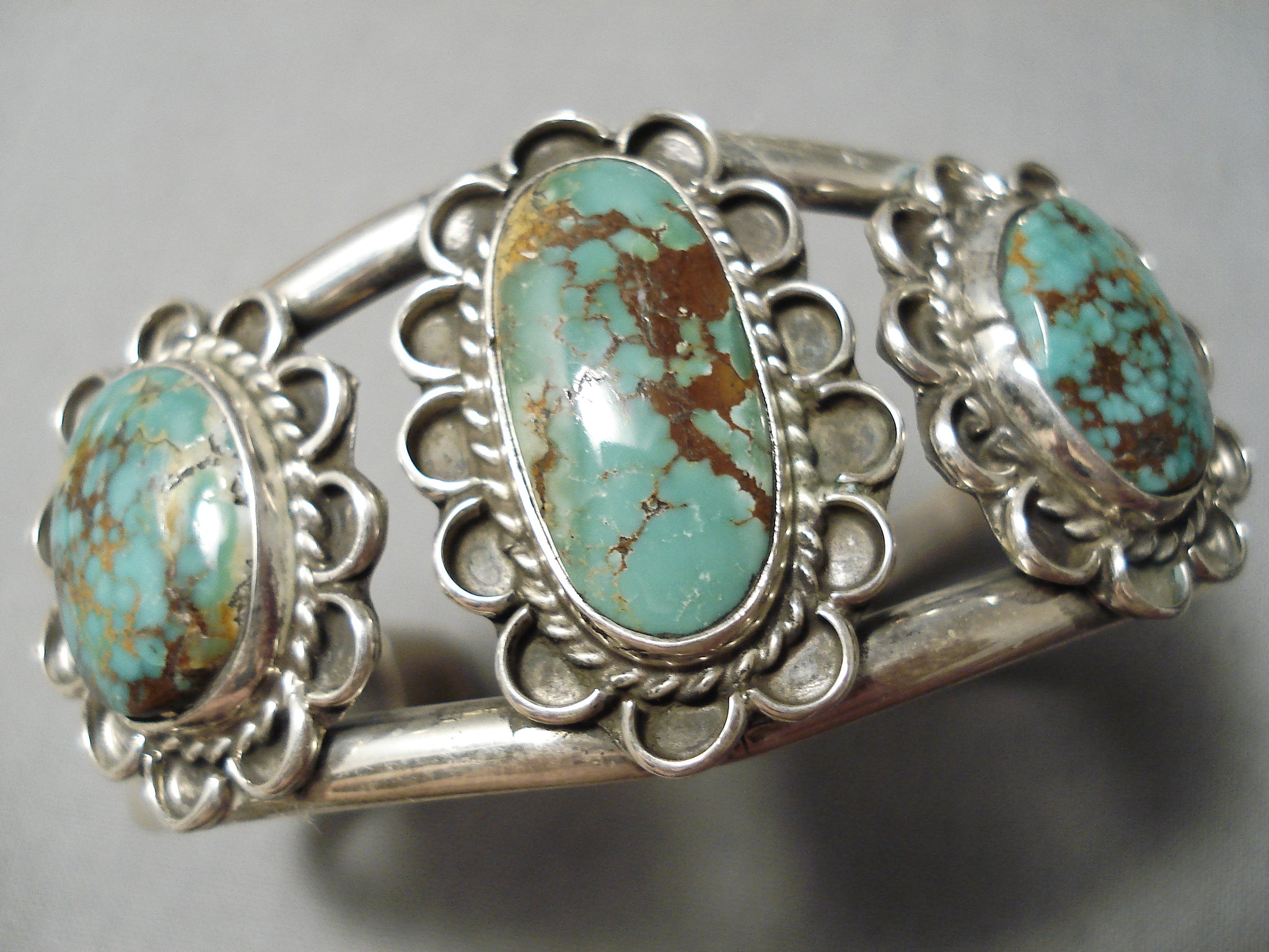 Rare Vintage Native American Navajo Domed Royston Turquoise Sterling Silver Bracelet Old
