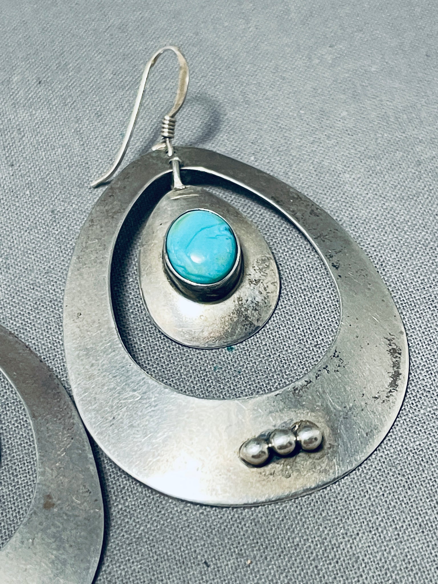 Rare Vintage Native American Navajo Old Kingman Turquoise Sterling Silver Earrings