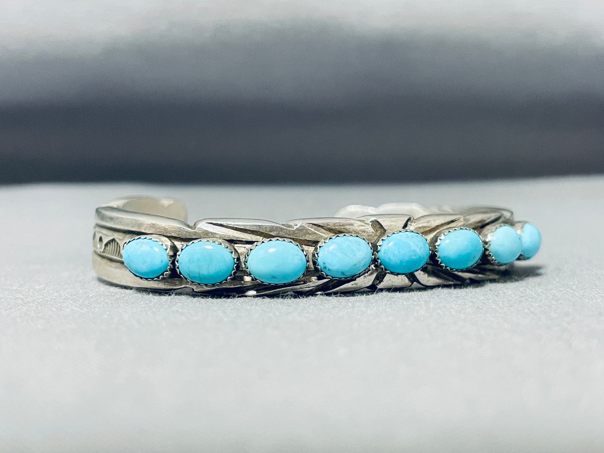 Rare Vintage Native American Navajo Signed 9 Sleeping Beauty Turquoise Sterling Silver Bracelet