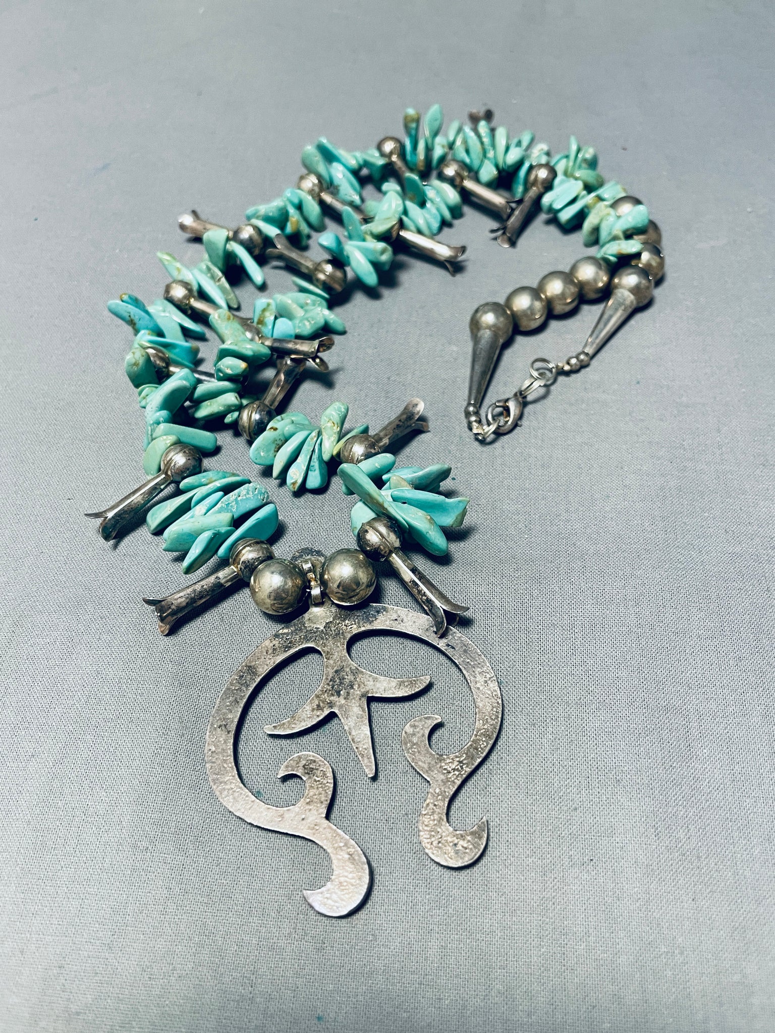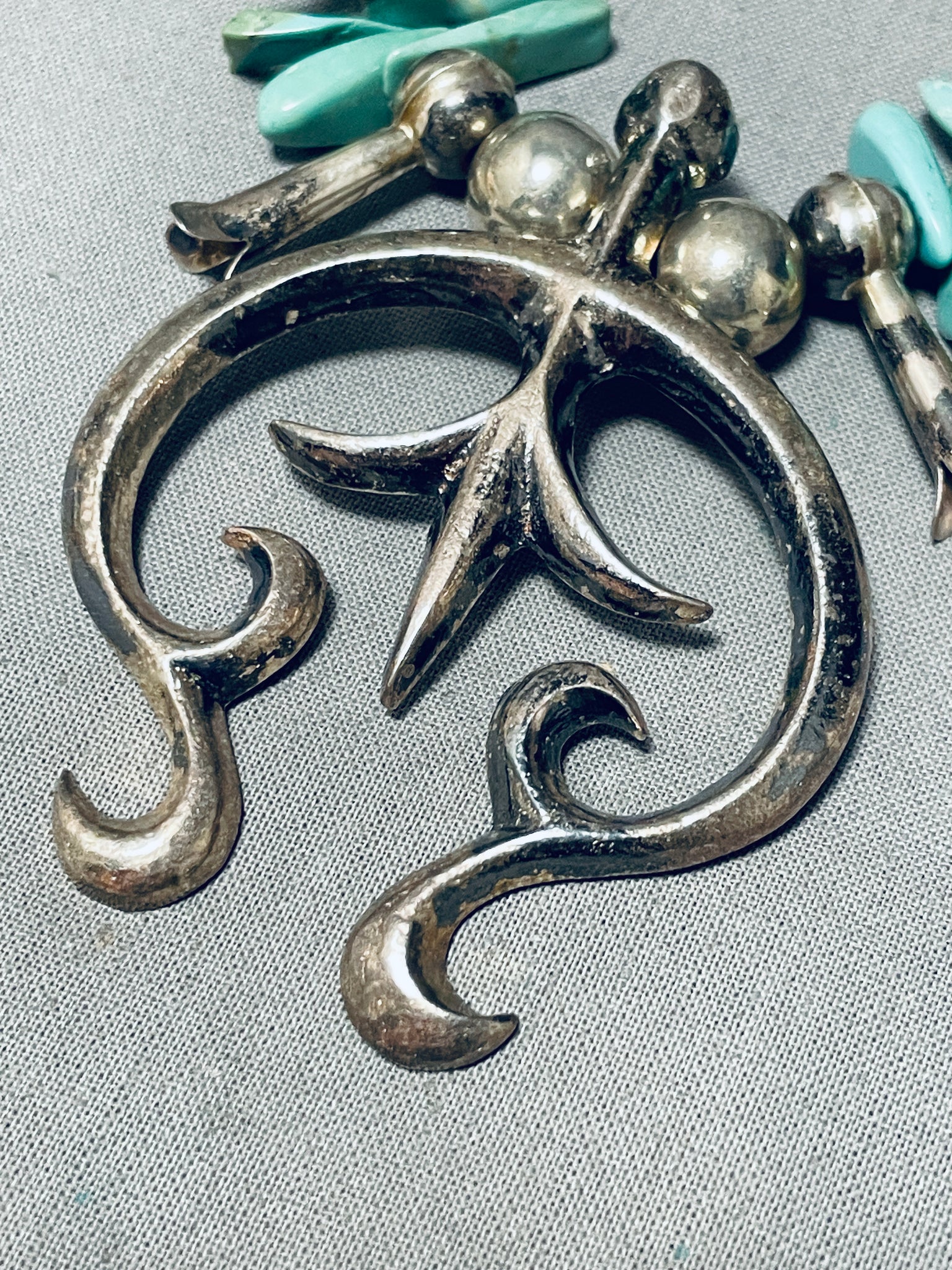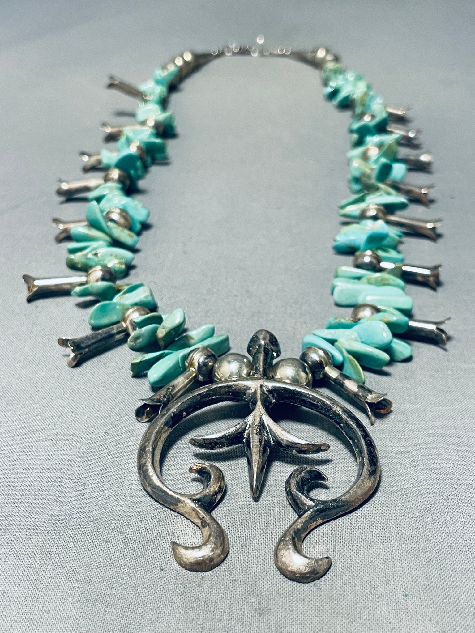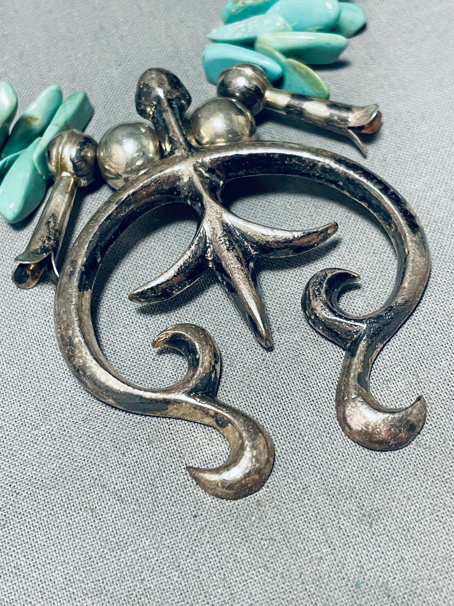 Rare Vintage Native American Navajo Turquoise Sterling Silver Squash Blossom Necklace