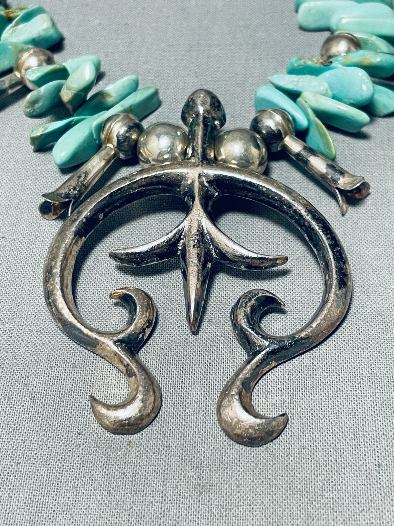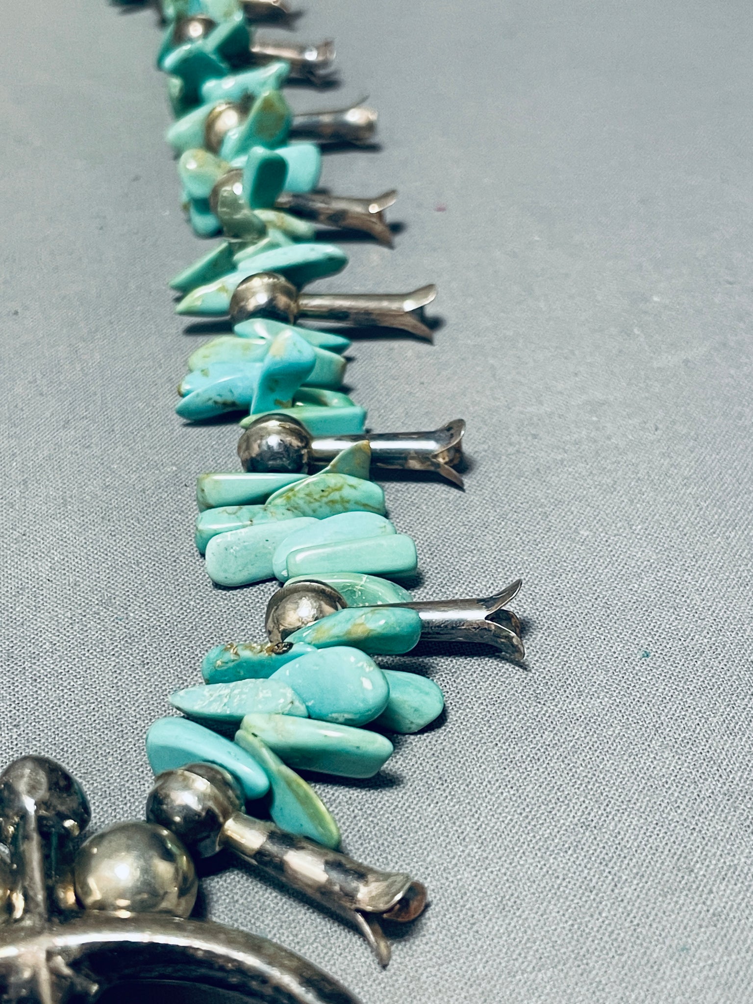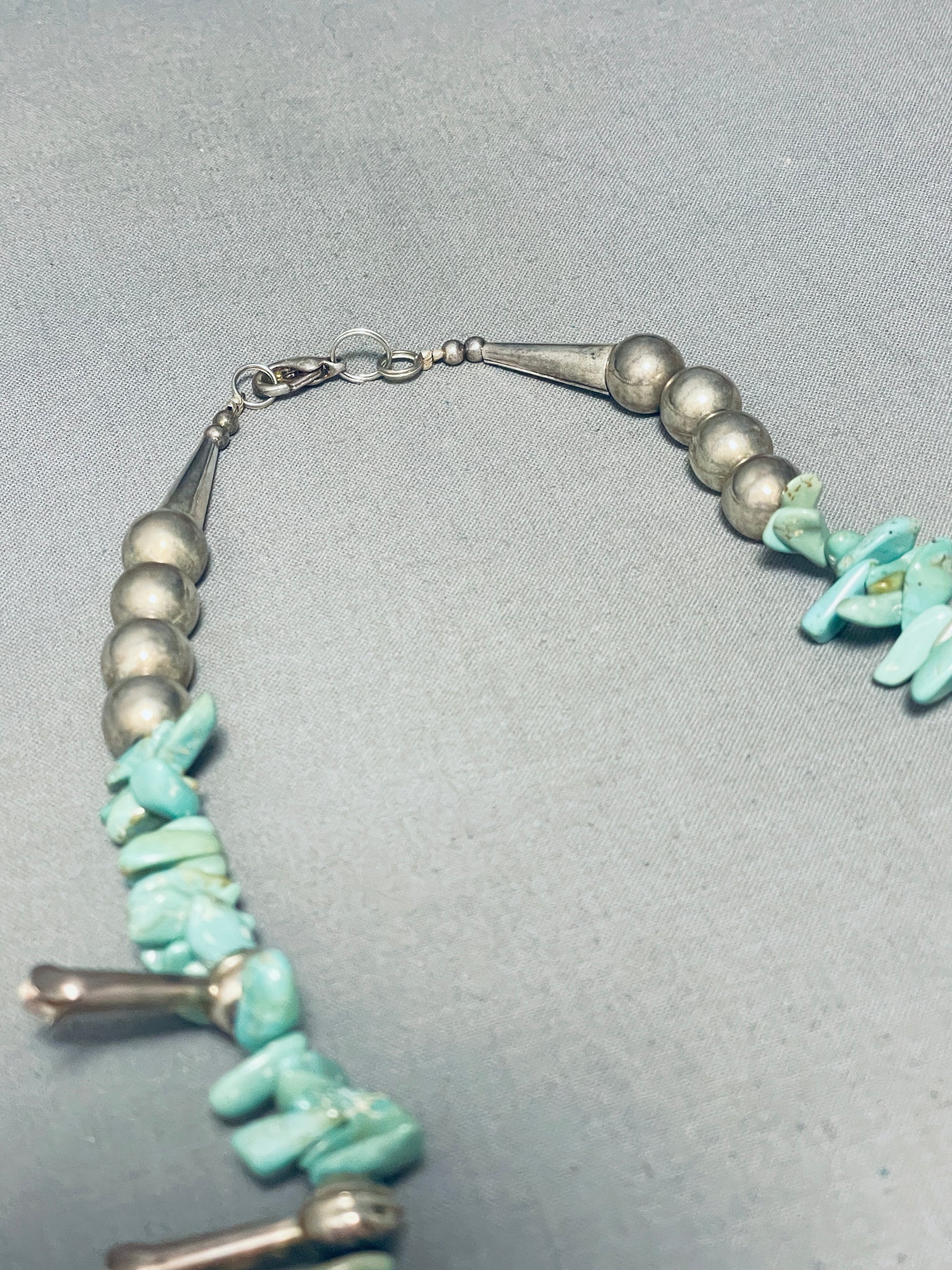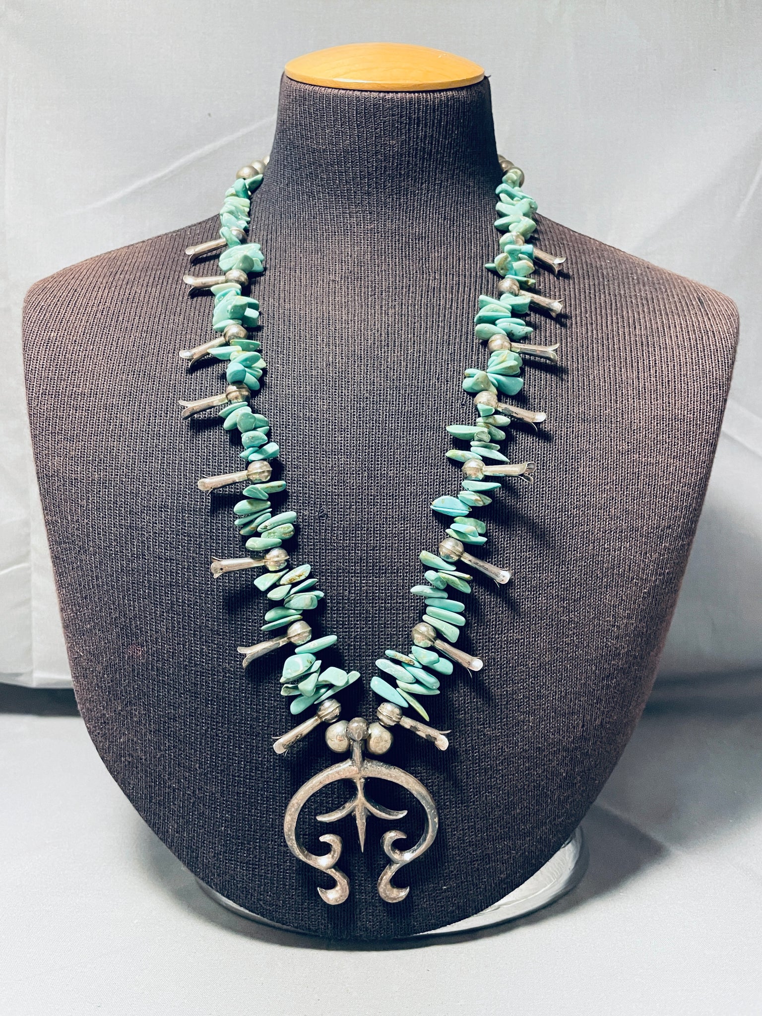 Rare Vintage Native American Navajo Turquoise Sterling Silver Squash Blossom Necklace