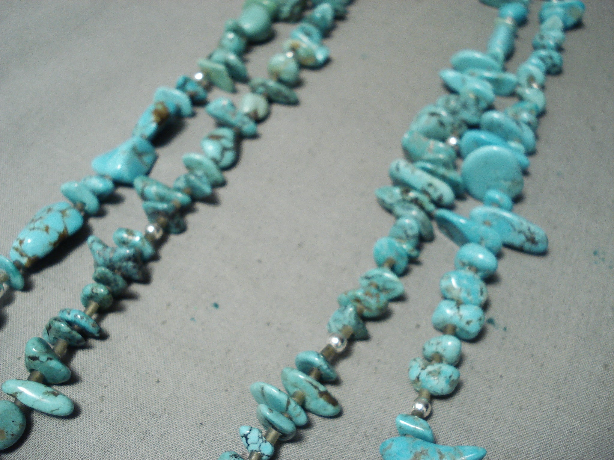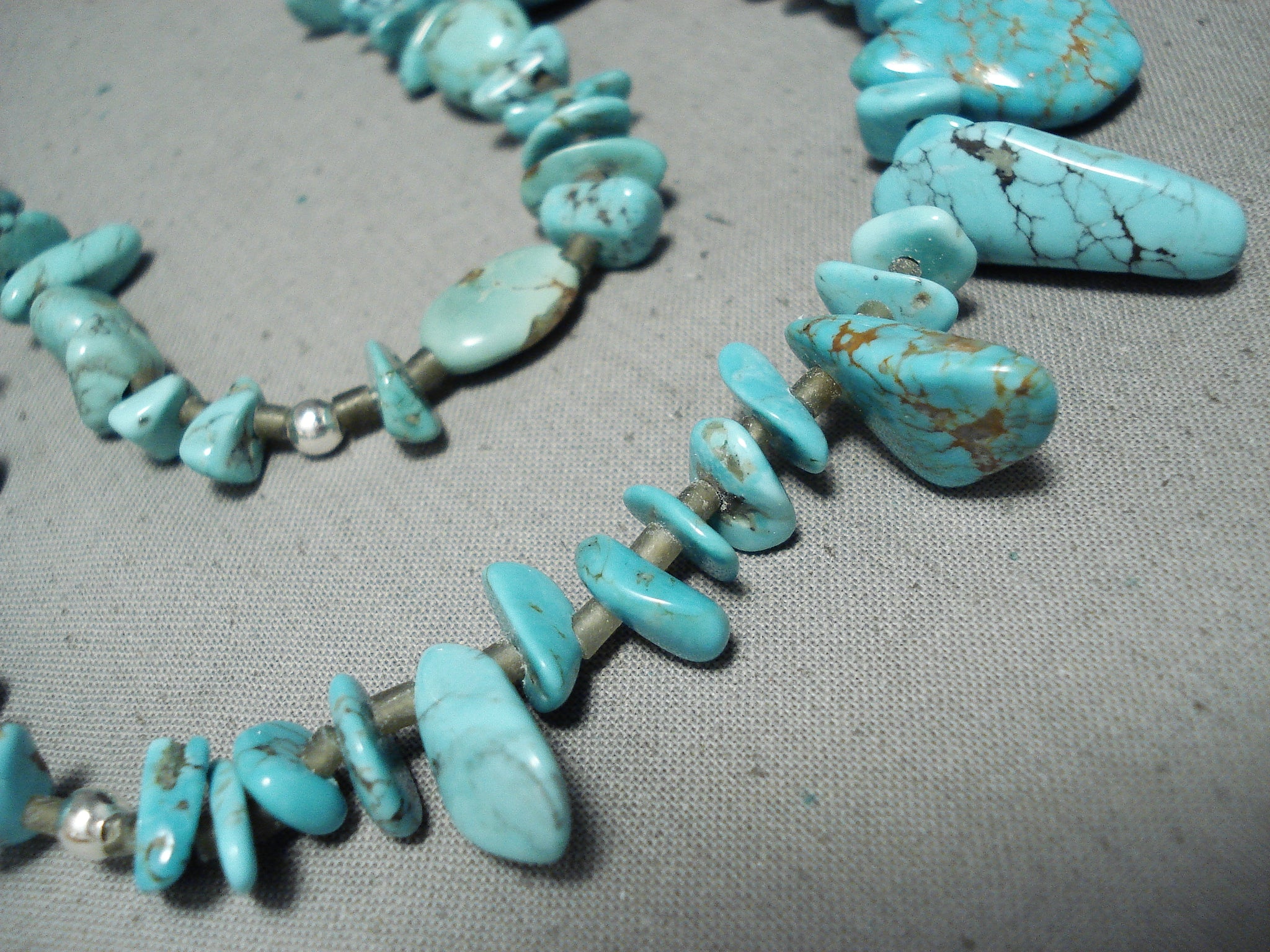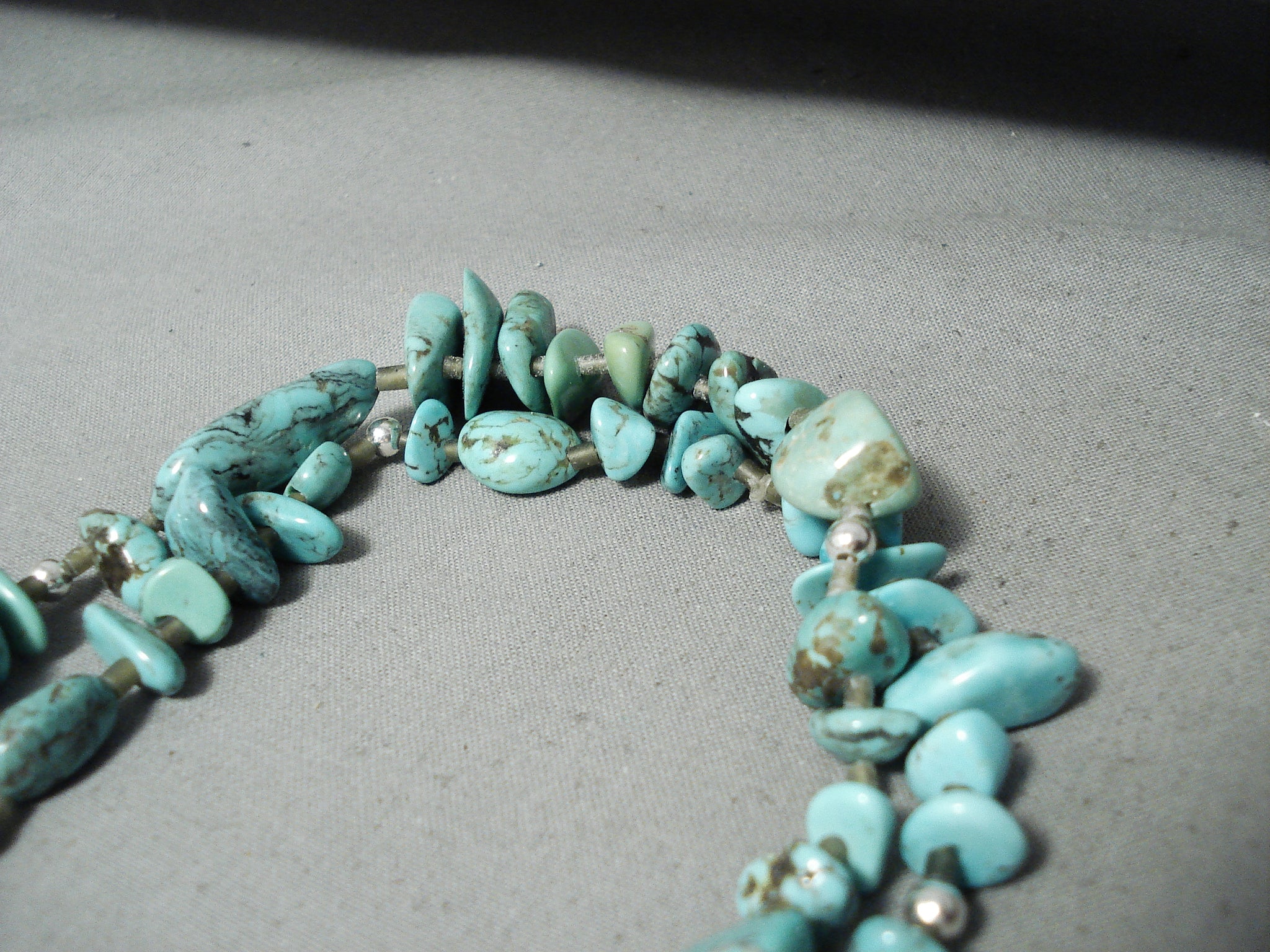 Rare Vintage Native American Navajo Wrap Around Turquoise Sterling Silver Necklace Old