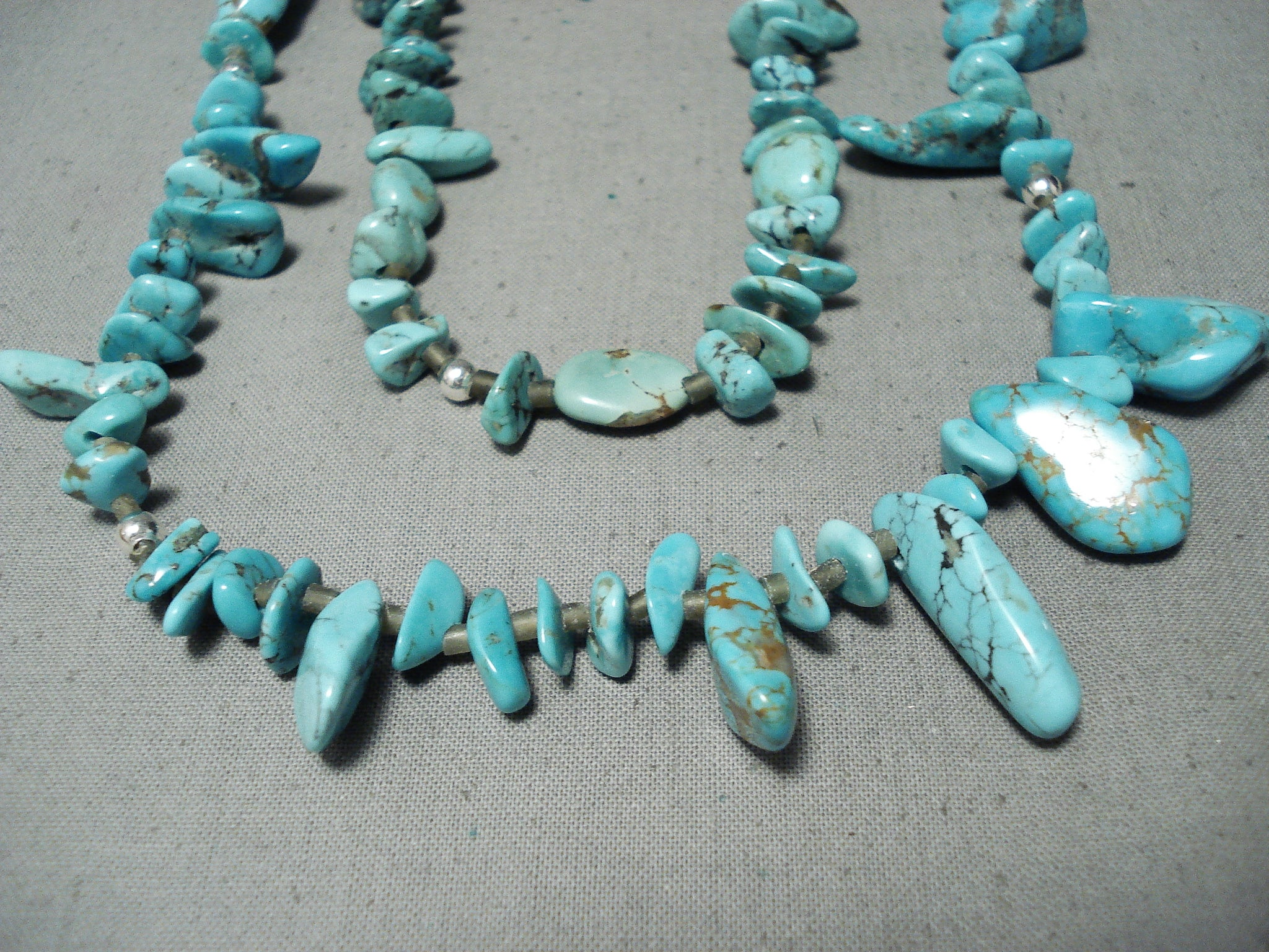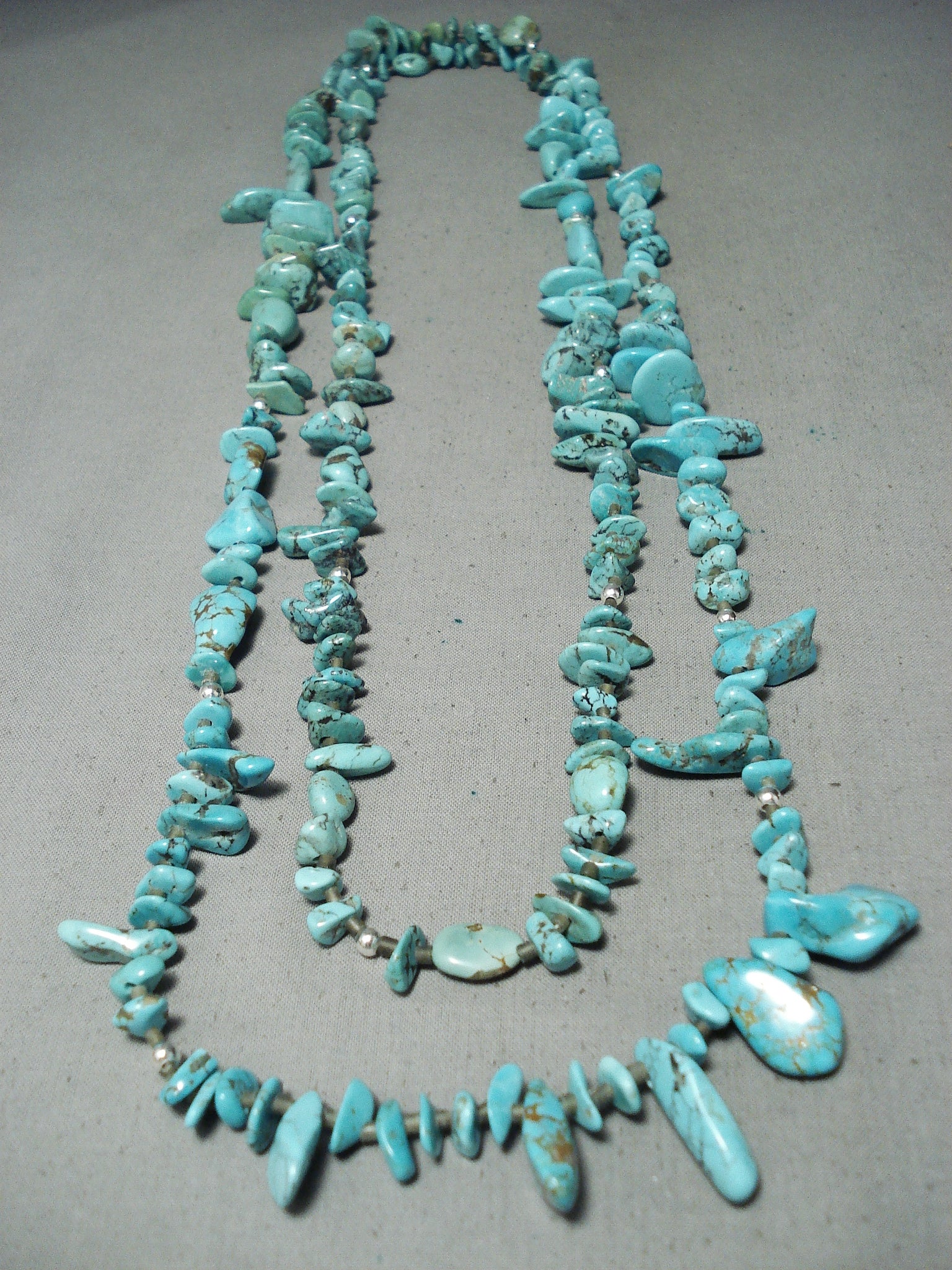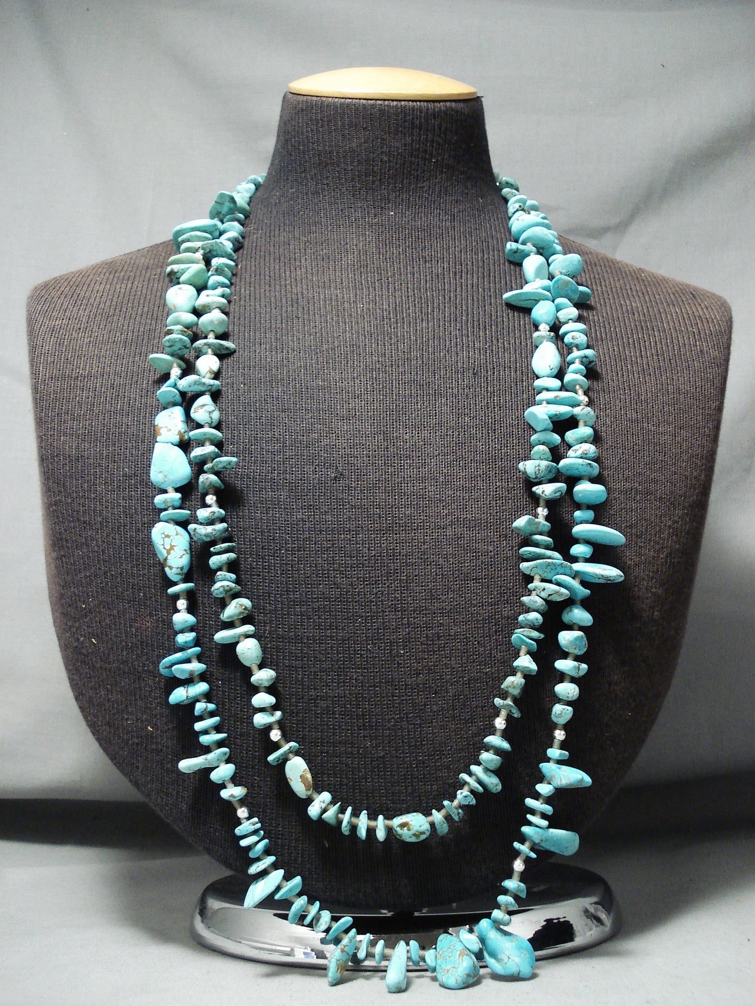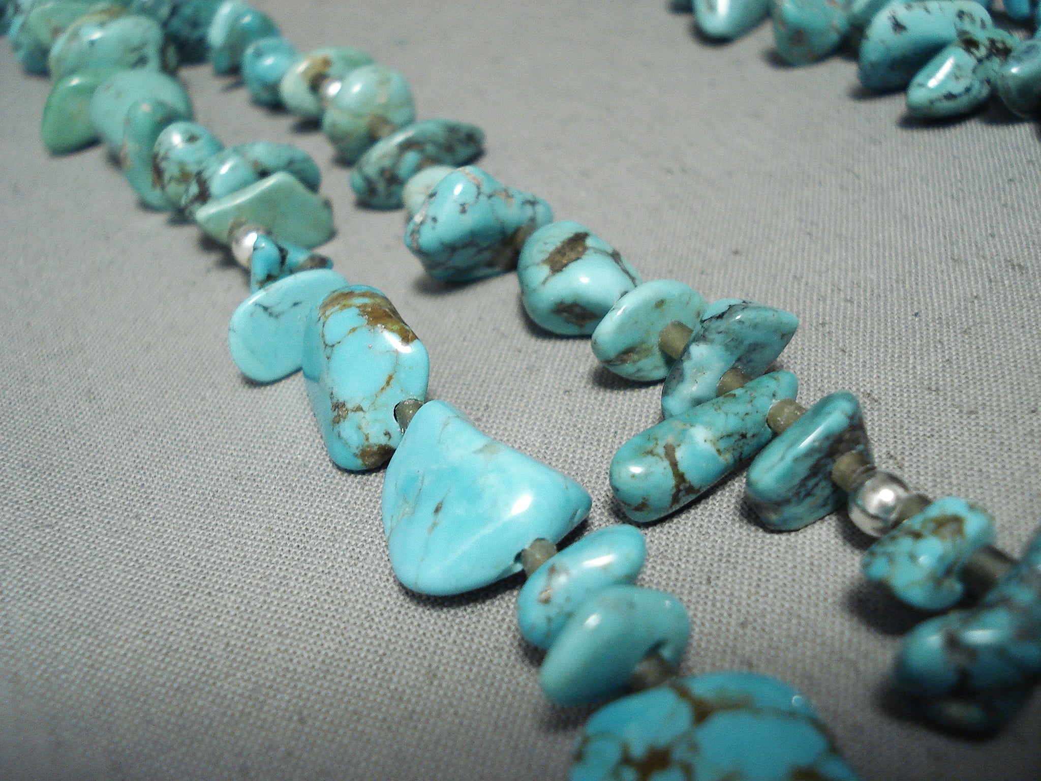 Rare Vintage Native American Navajo Wrap Around Turquoise Sterling Silver Necklace Old