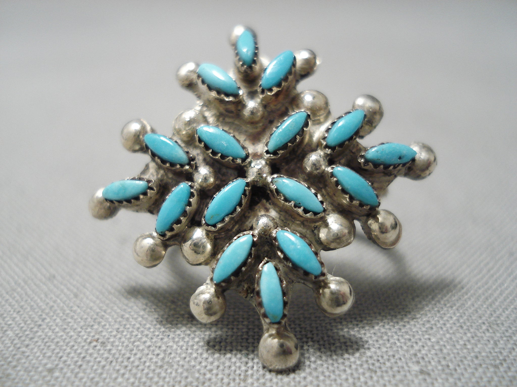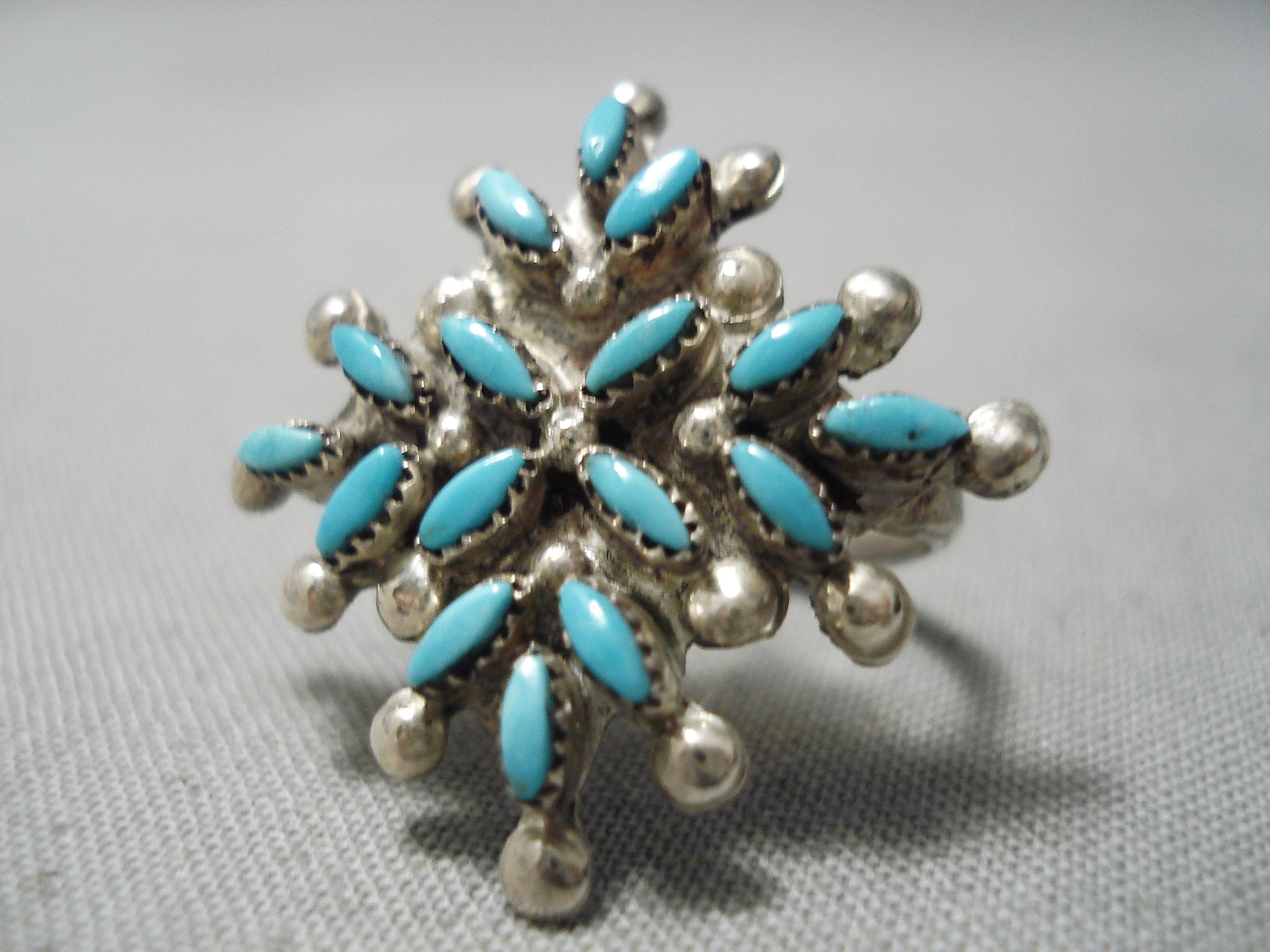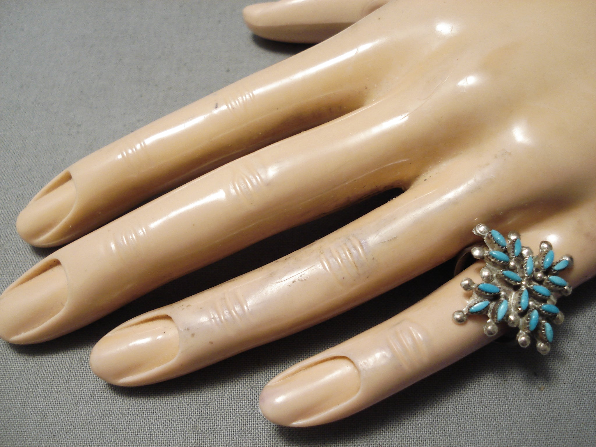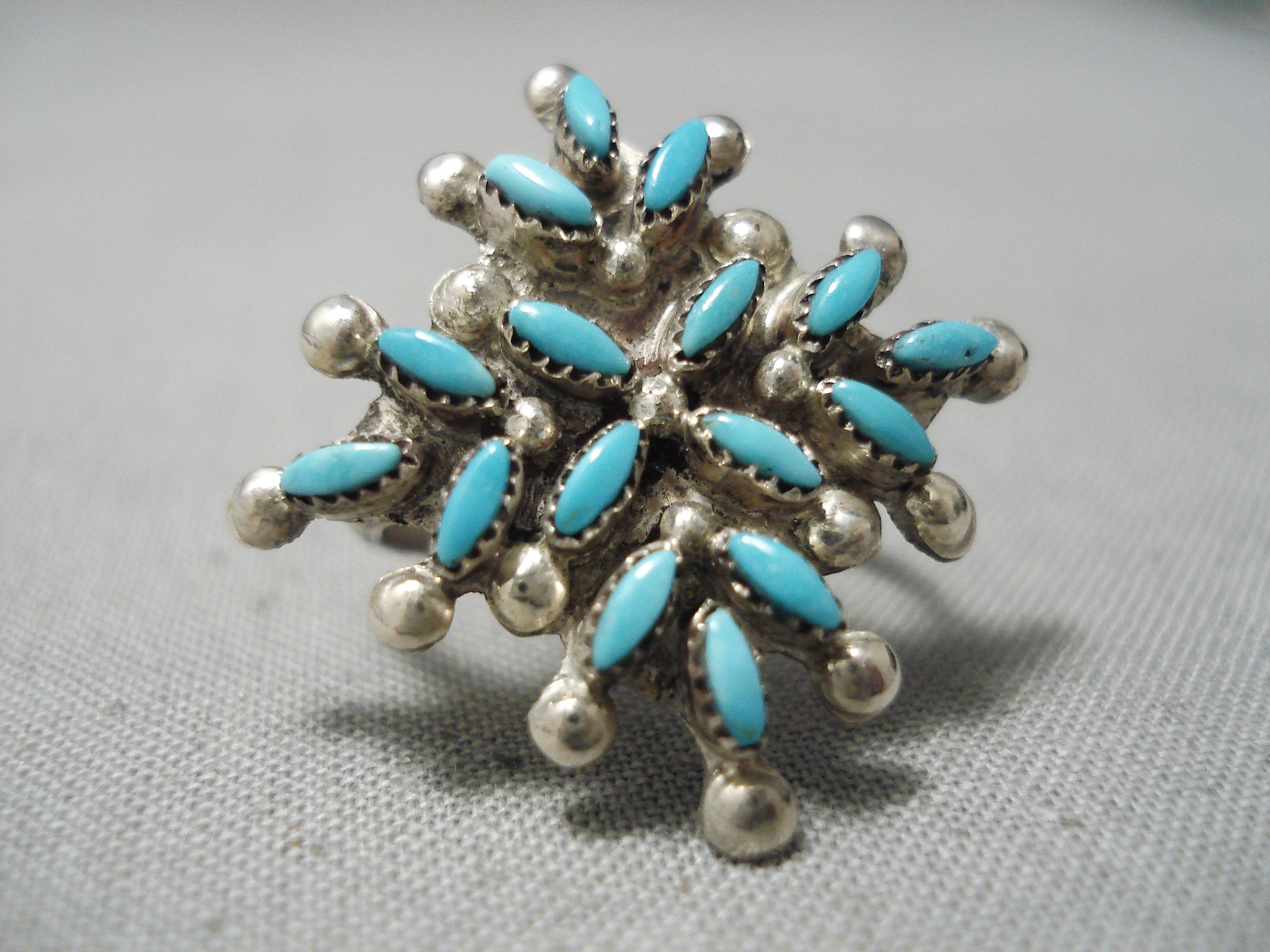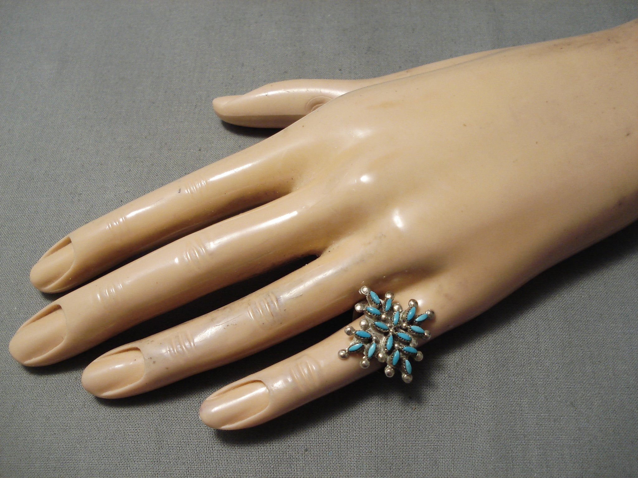 Rare Vintage Zuni Native American Neelde Turquoise Sterling Silver Ring