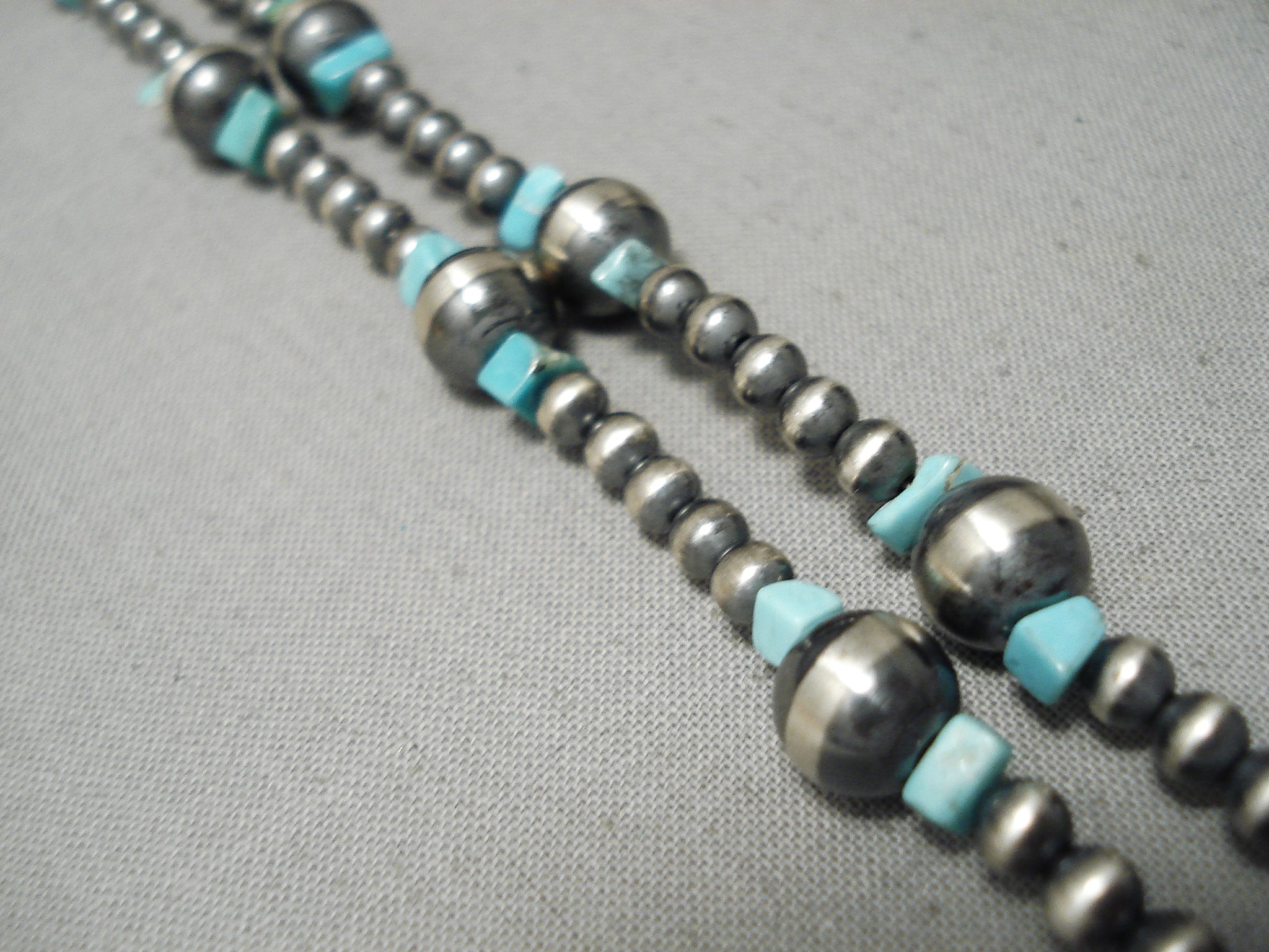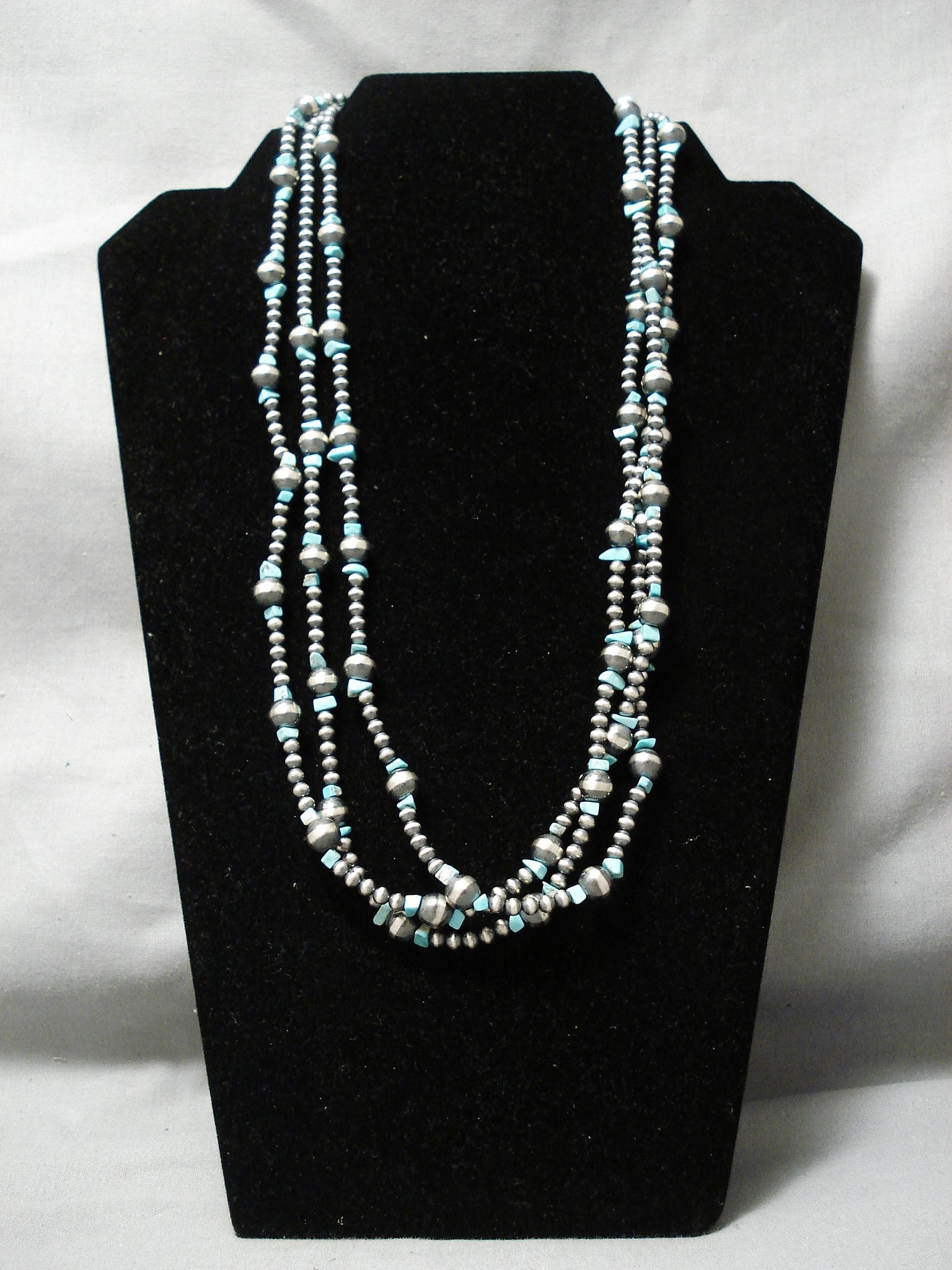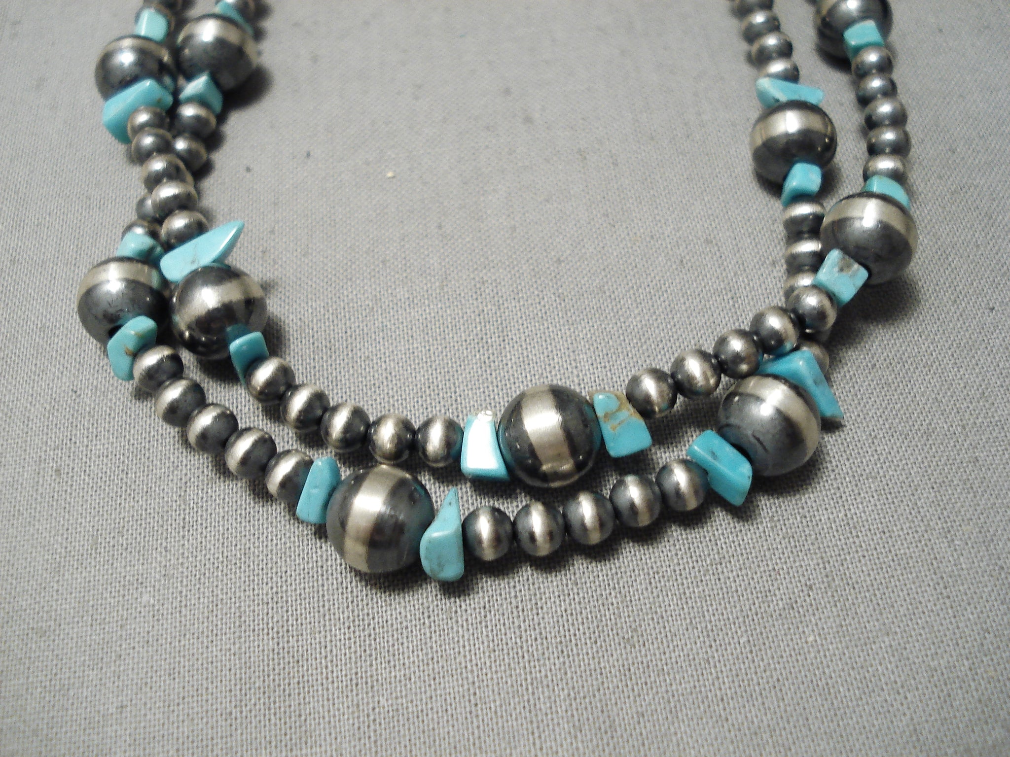 Rare Wrap Around Native American Navajo Turquoise Sterling Silver Wrap Around Bead Necklace