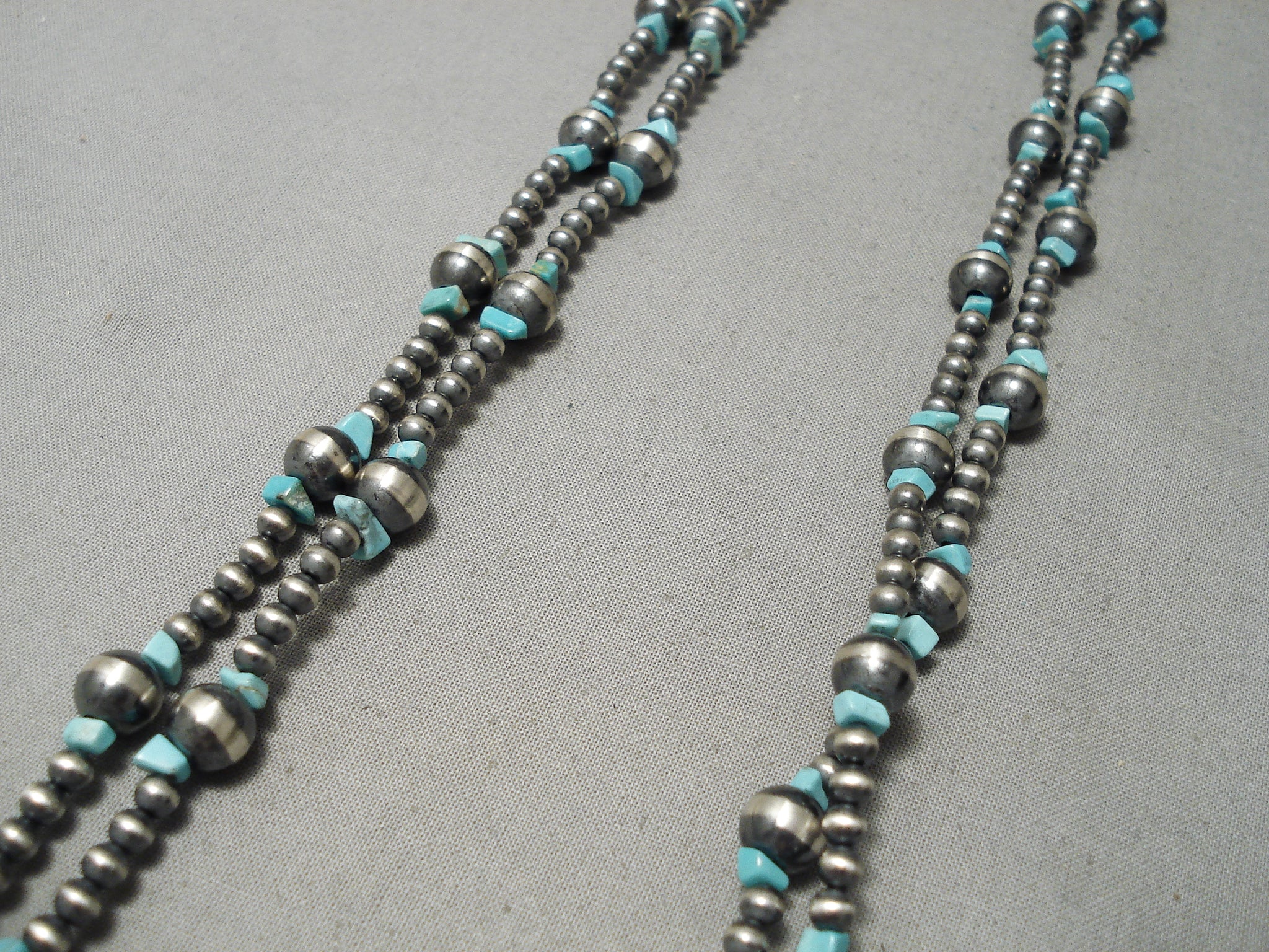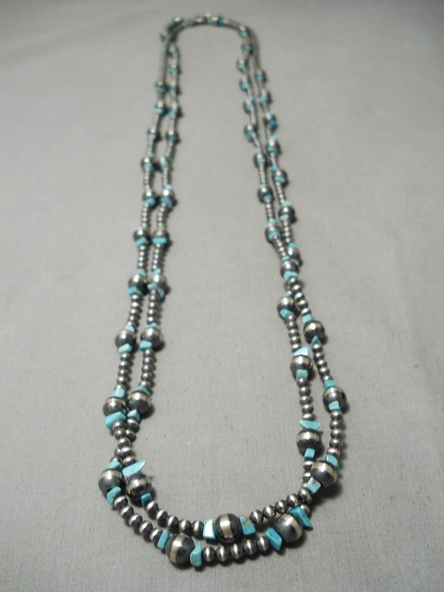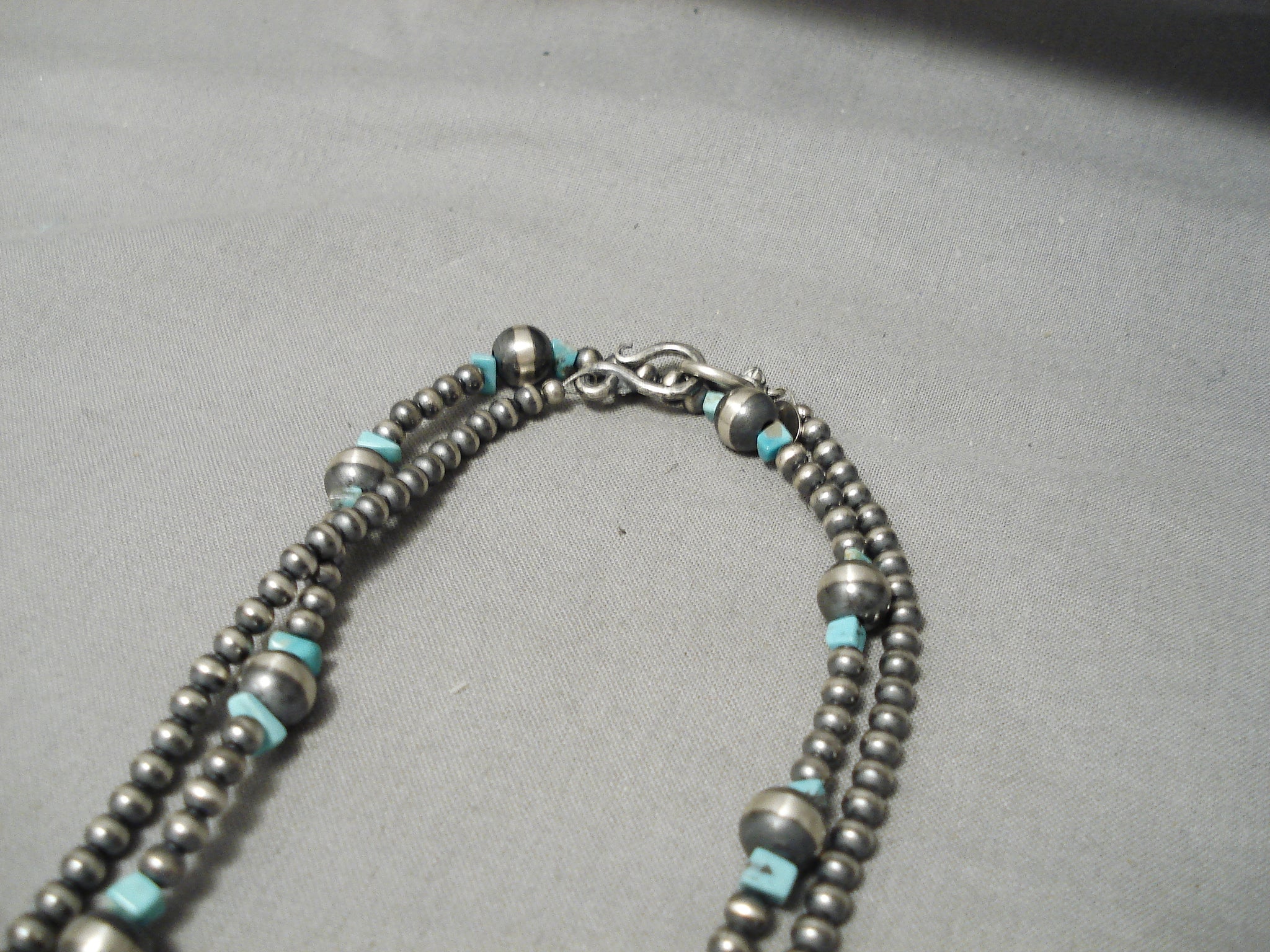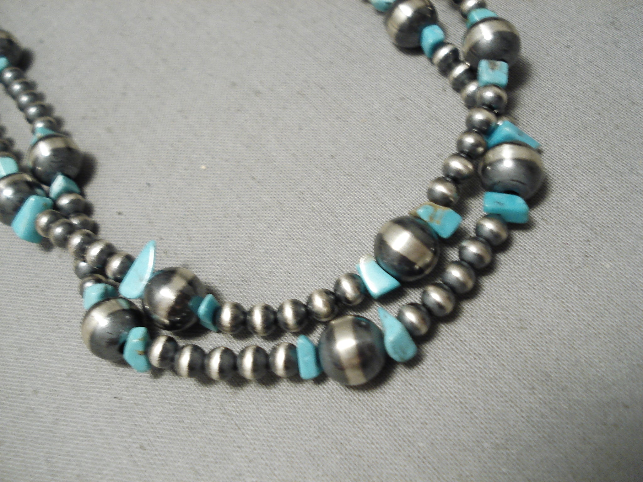 Rare Wrap Around Native American Navajo Turquoise Sterling Silver Wrap Around Bead Necklace