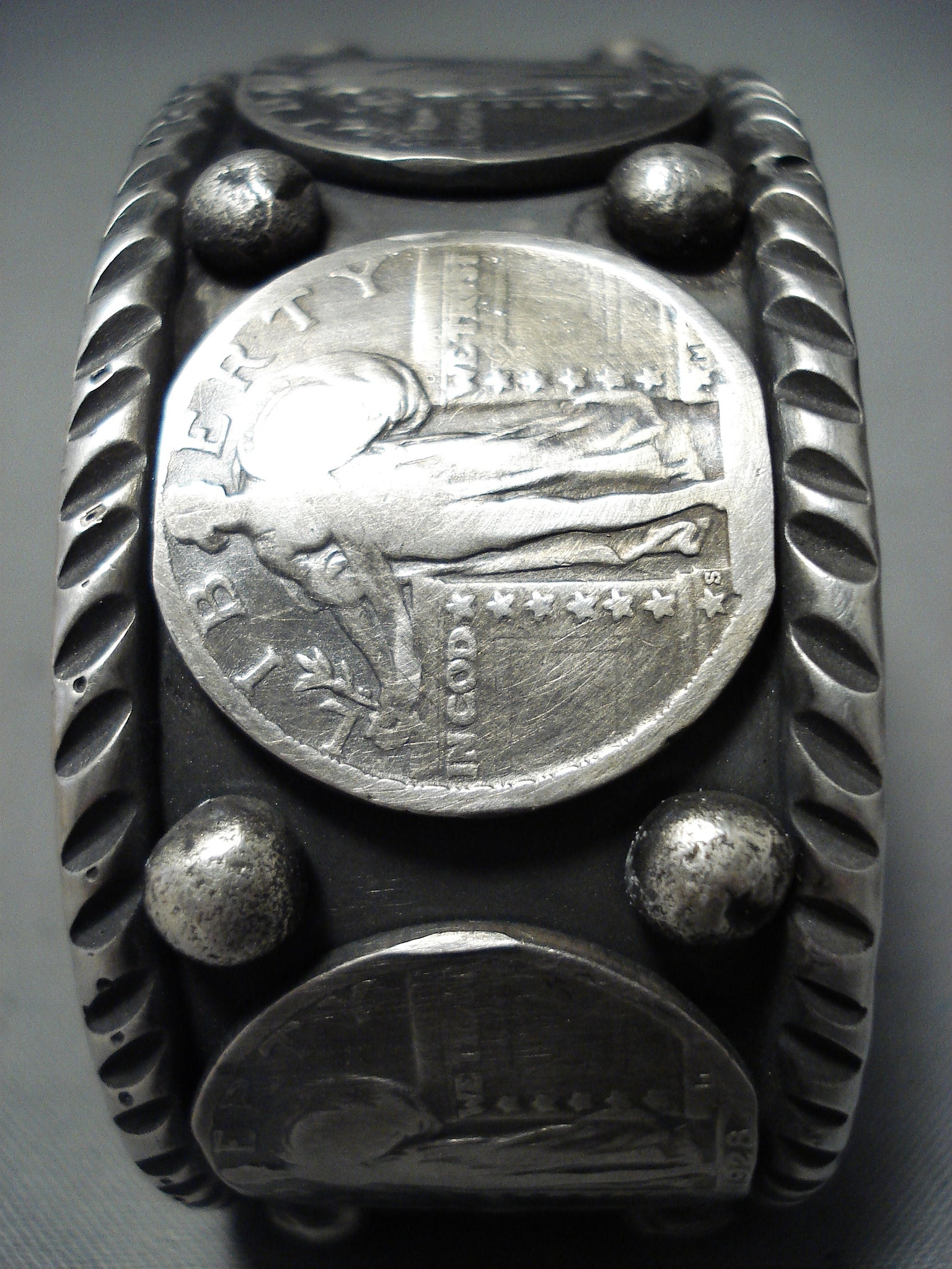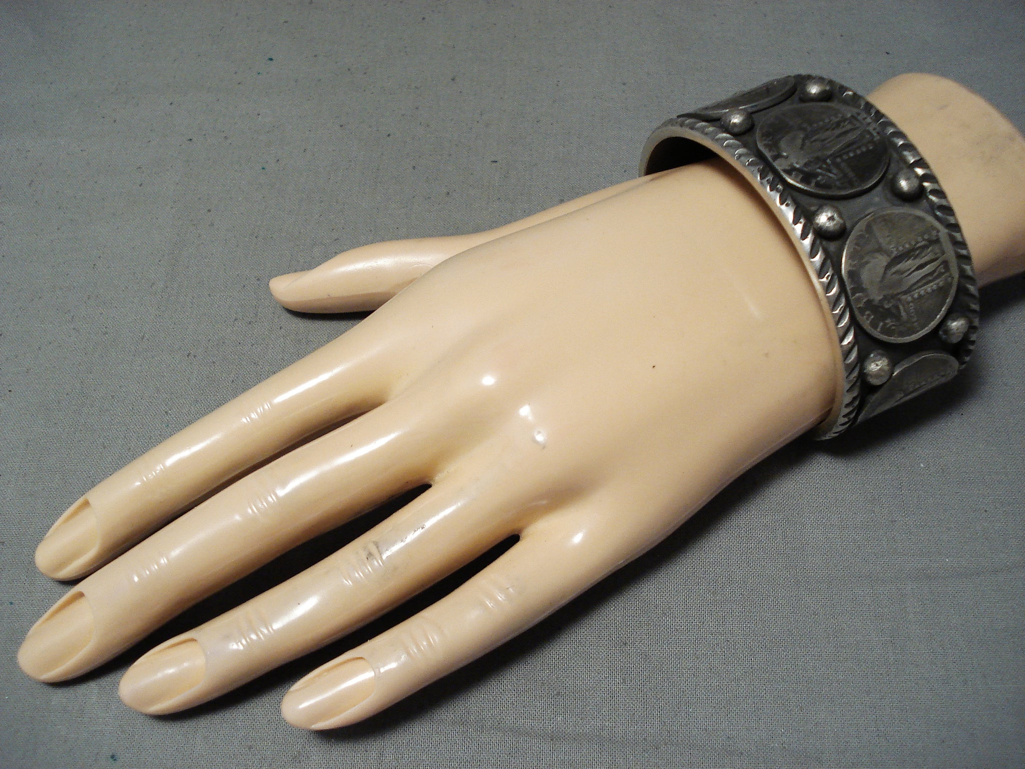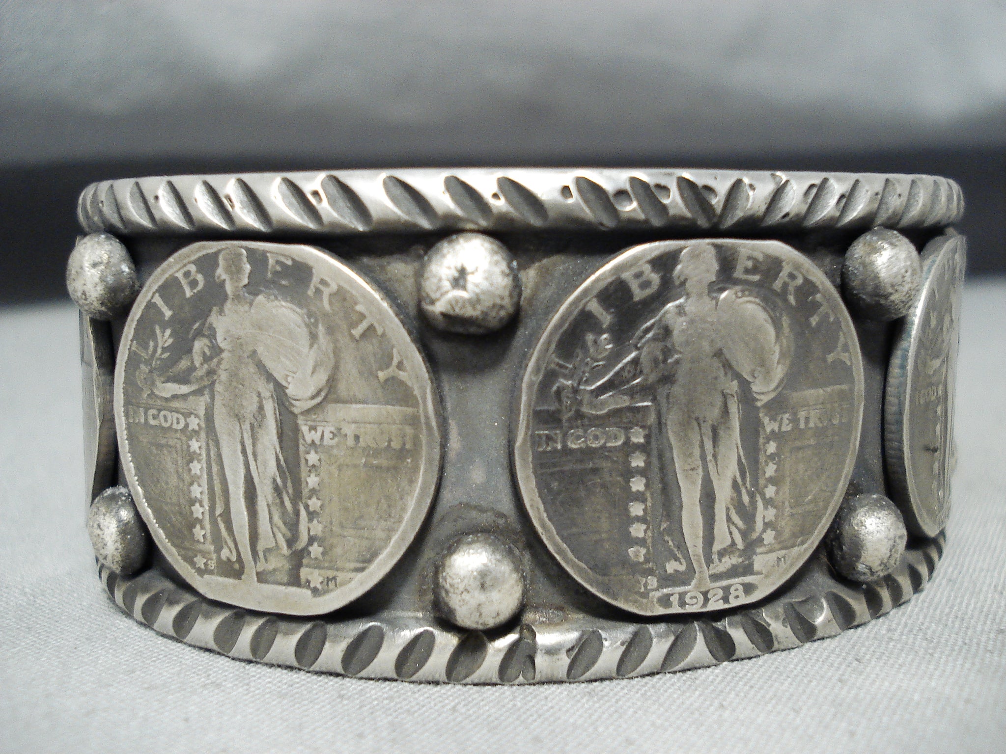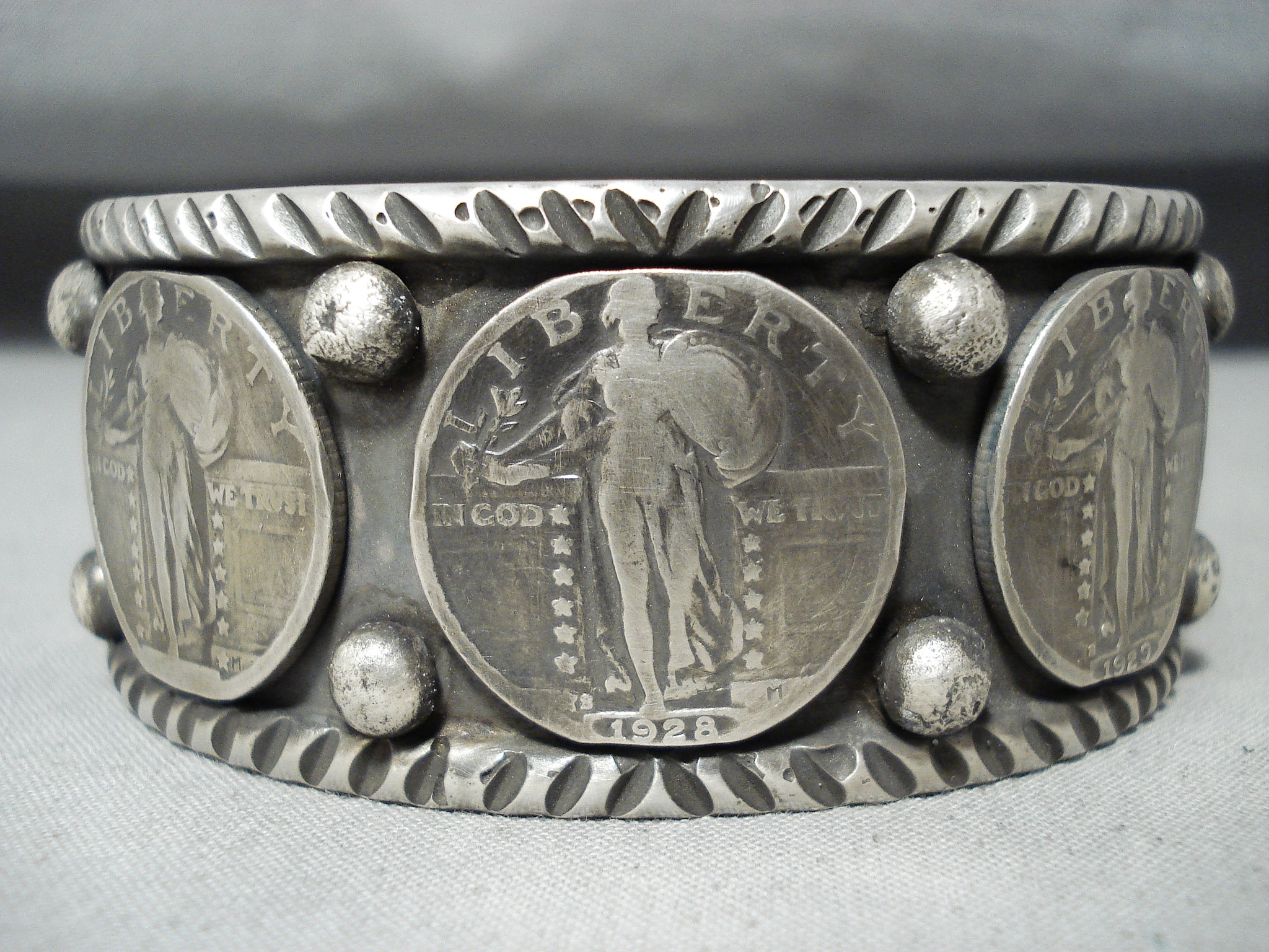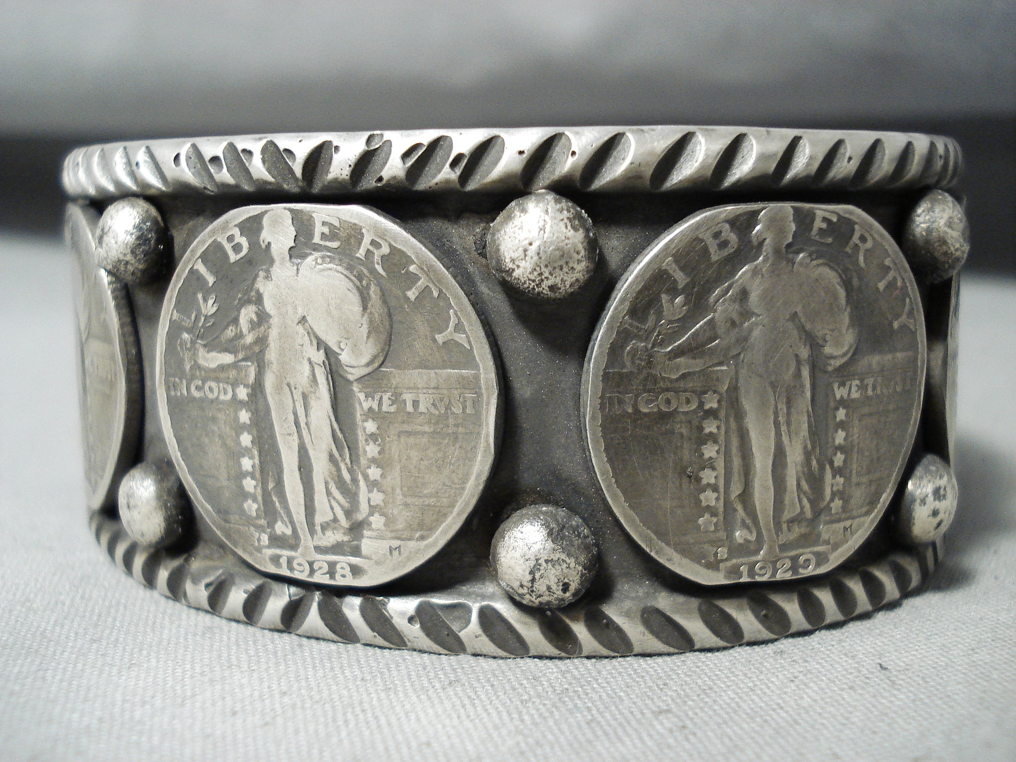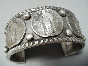 Remarkable Native American Navajo Sterling Silver Vintage Quarters Bracelet