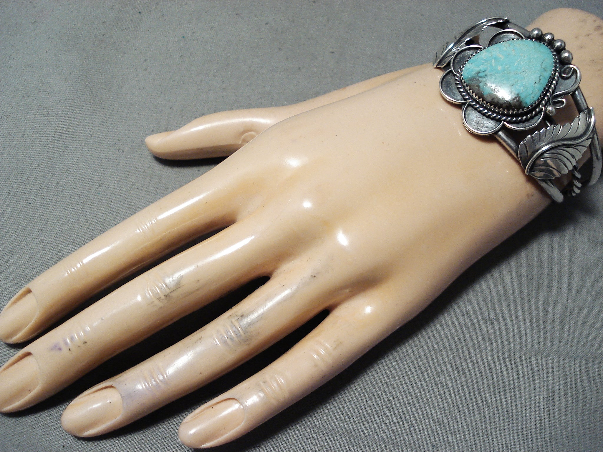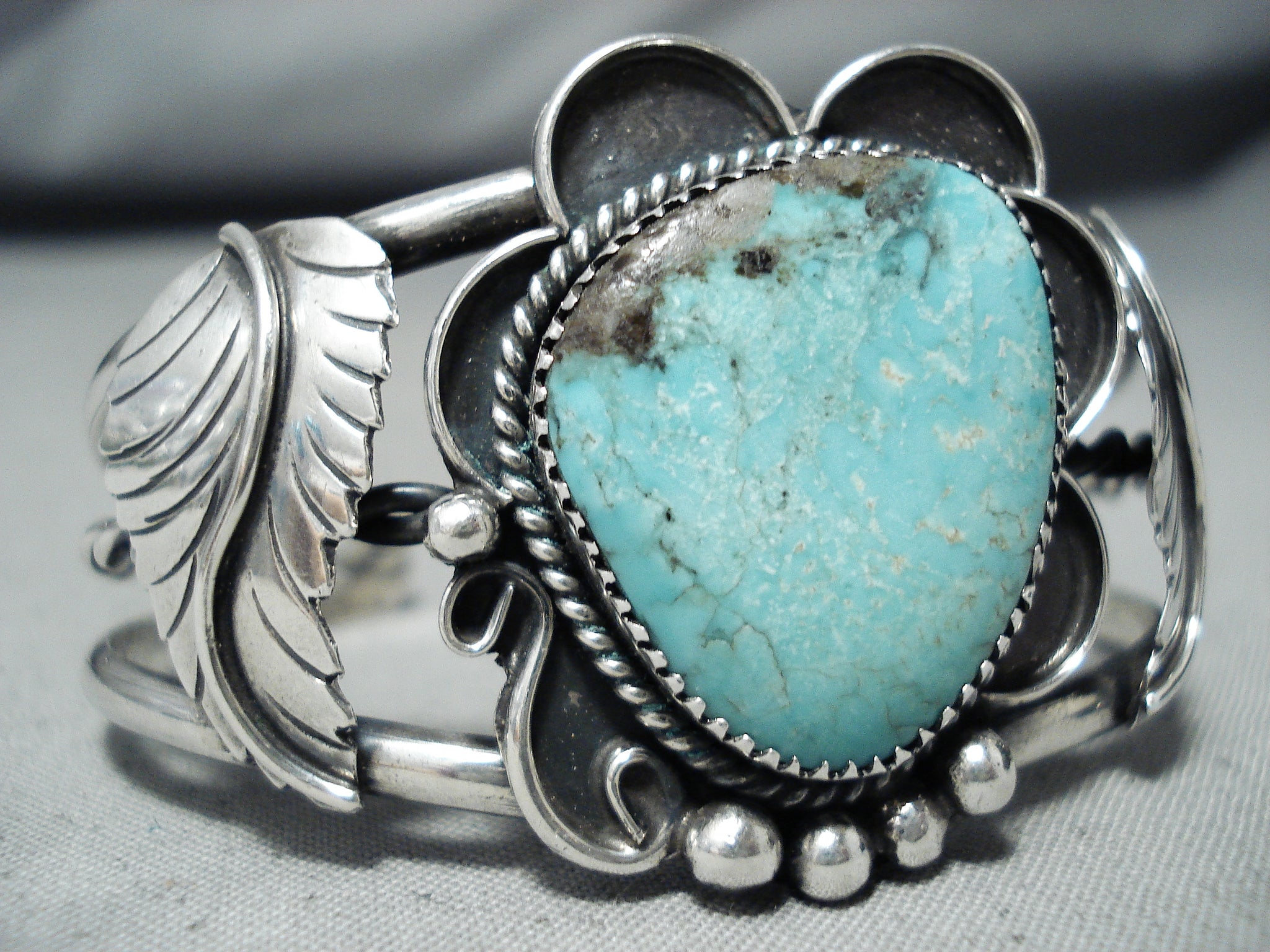 Remarkable Navajo Kingman Turquoise Sterling Silver Bracelet Native American