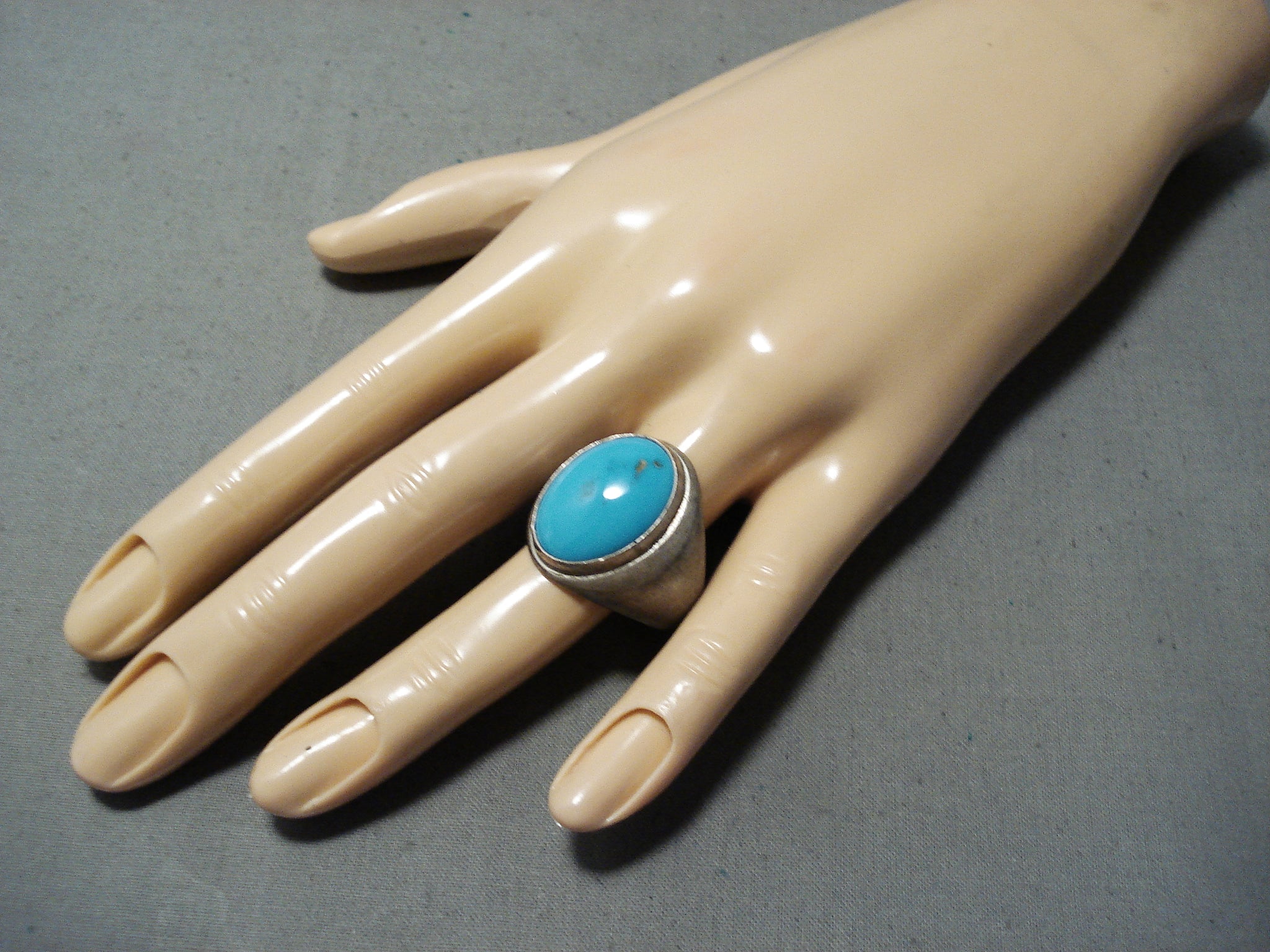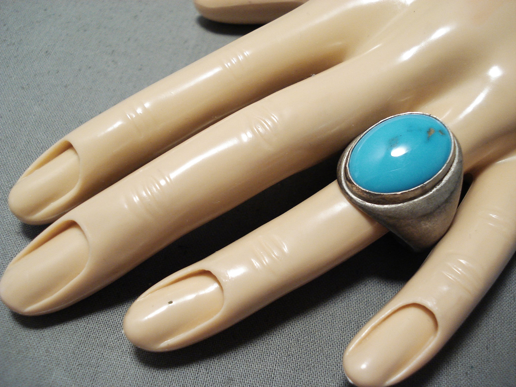 Remarkable Vintage Native American Navajo Blue Gem Sterling Silver Ring