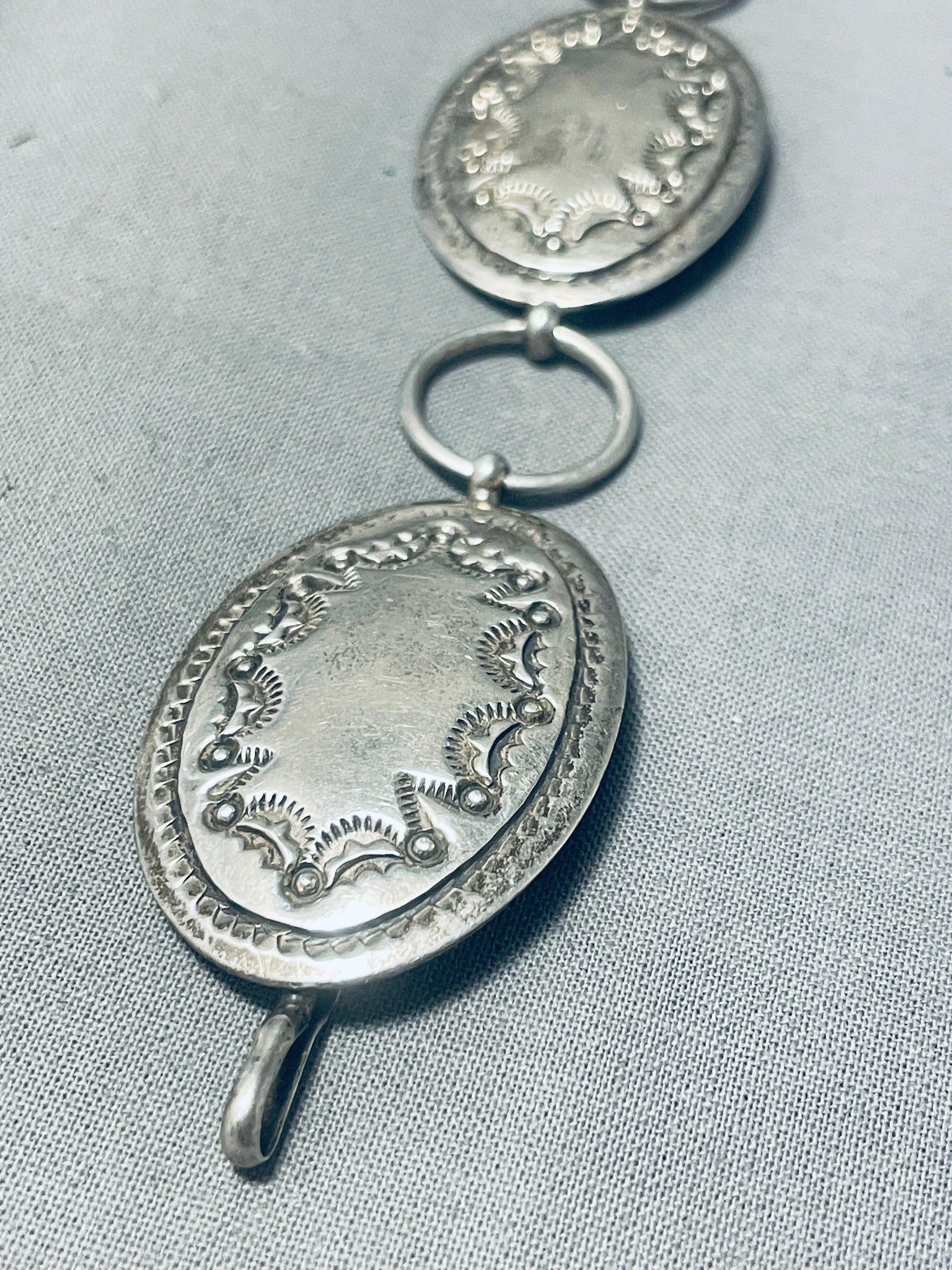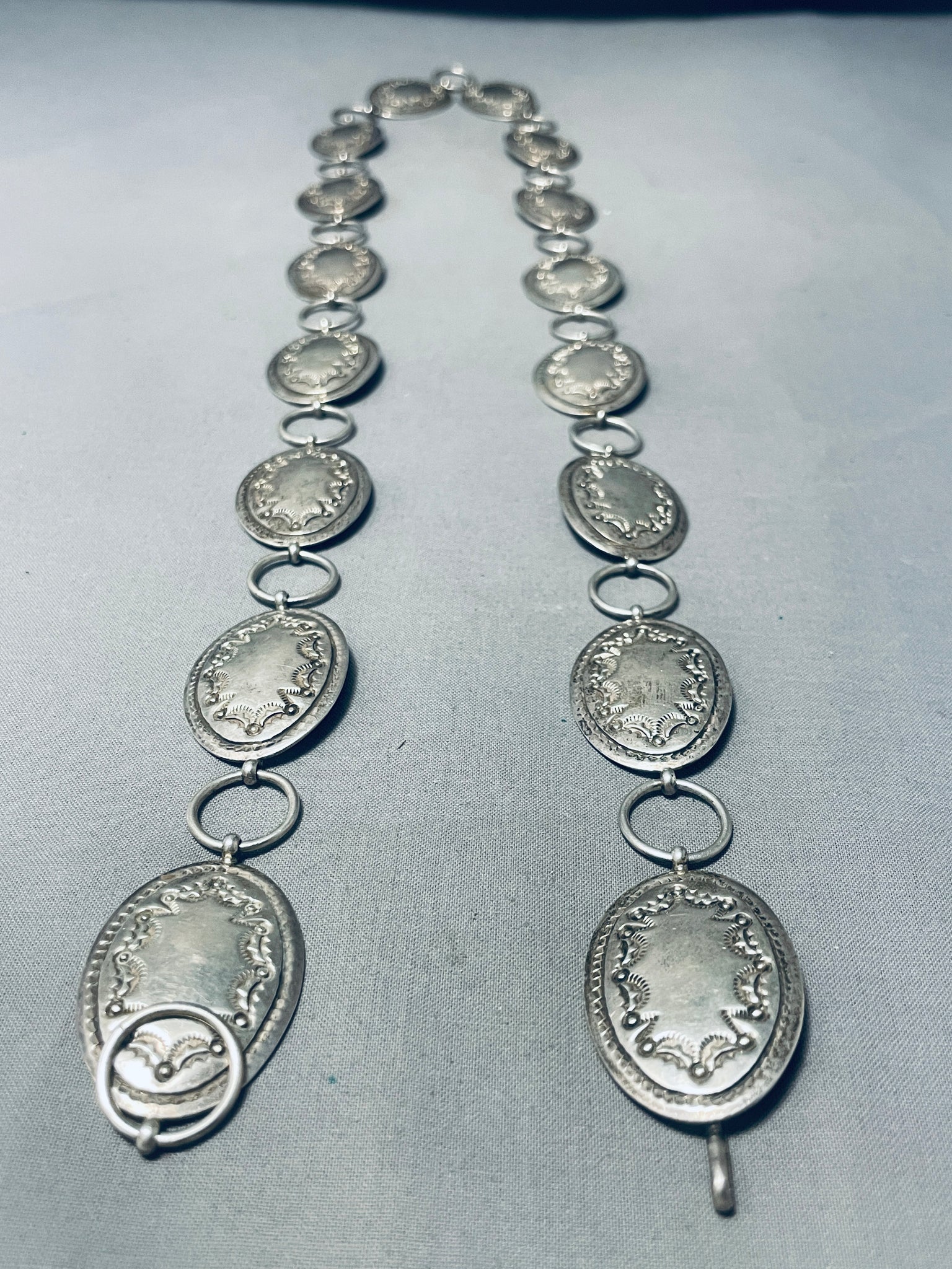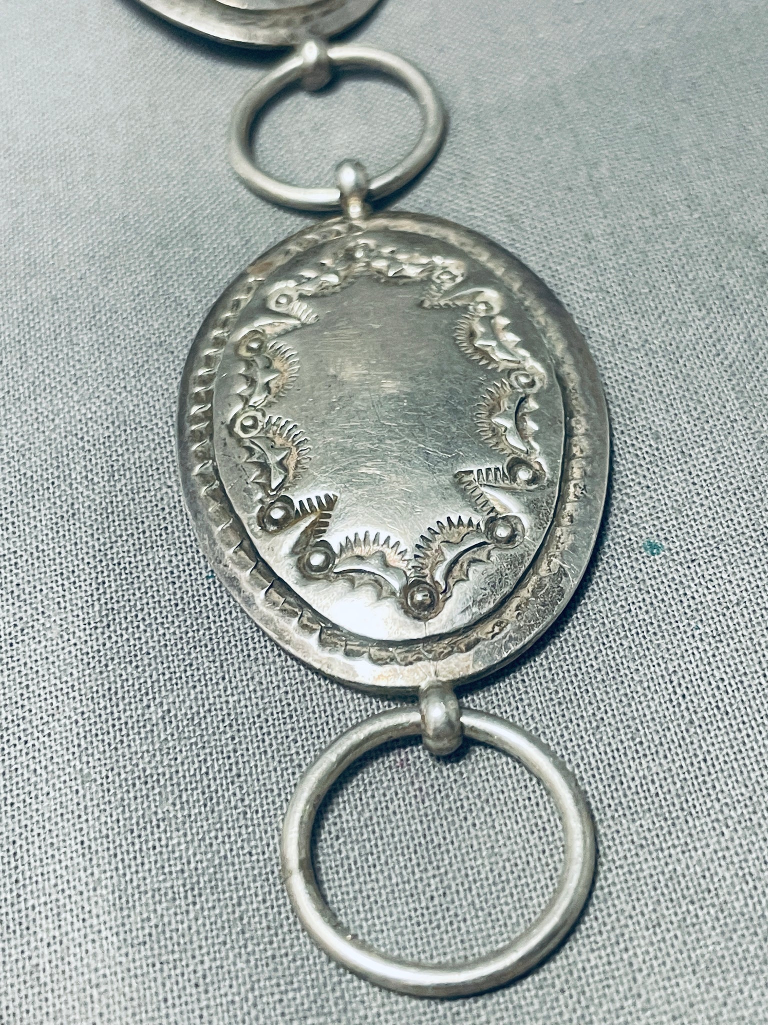 Remarkable Vintage Native American Navajo Handcarved Sterling Silver Concho Belt
