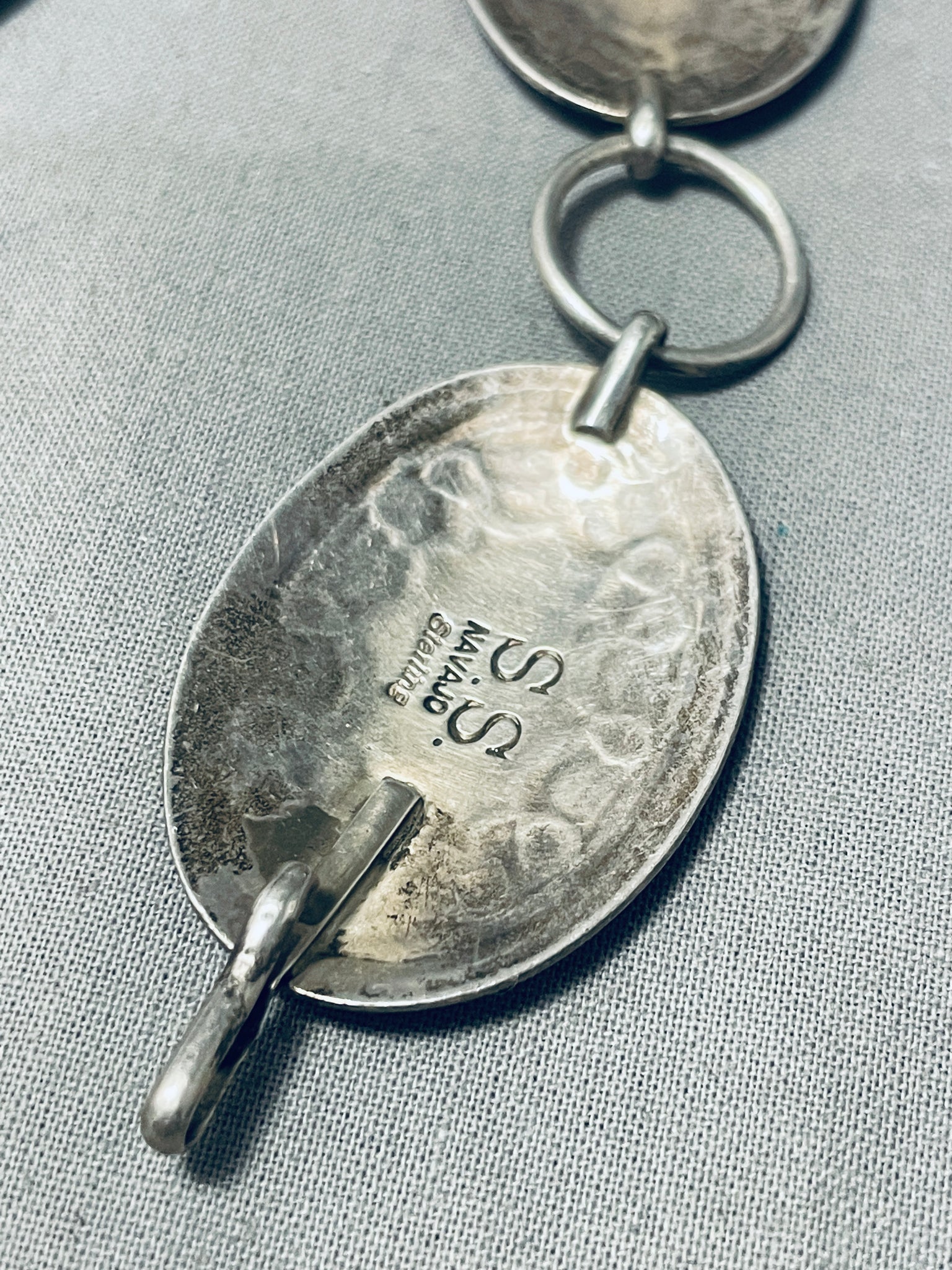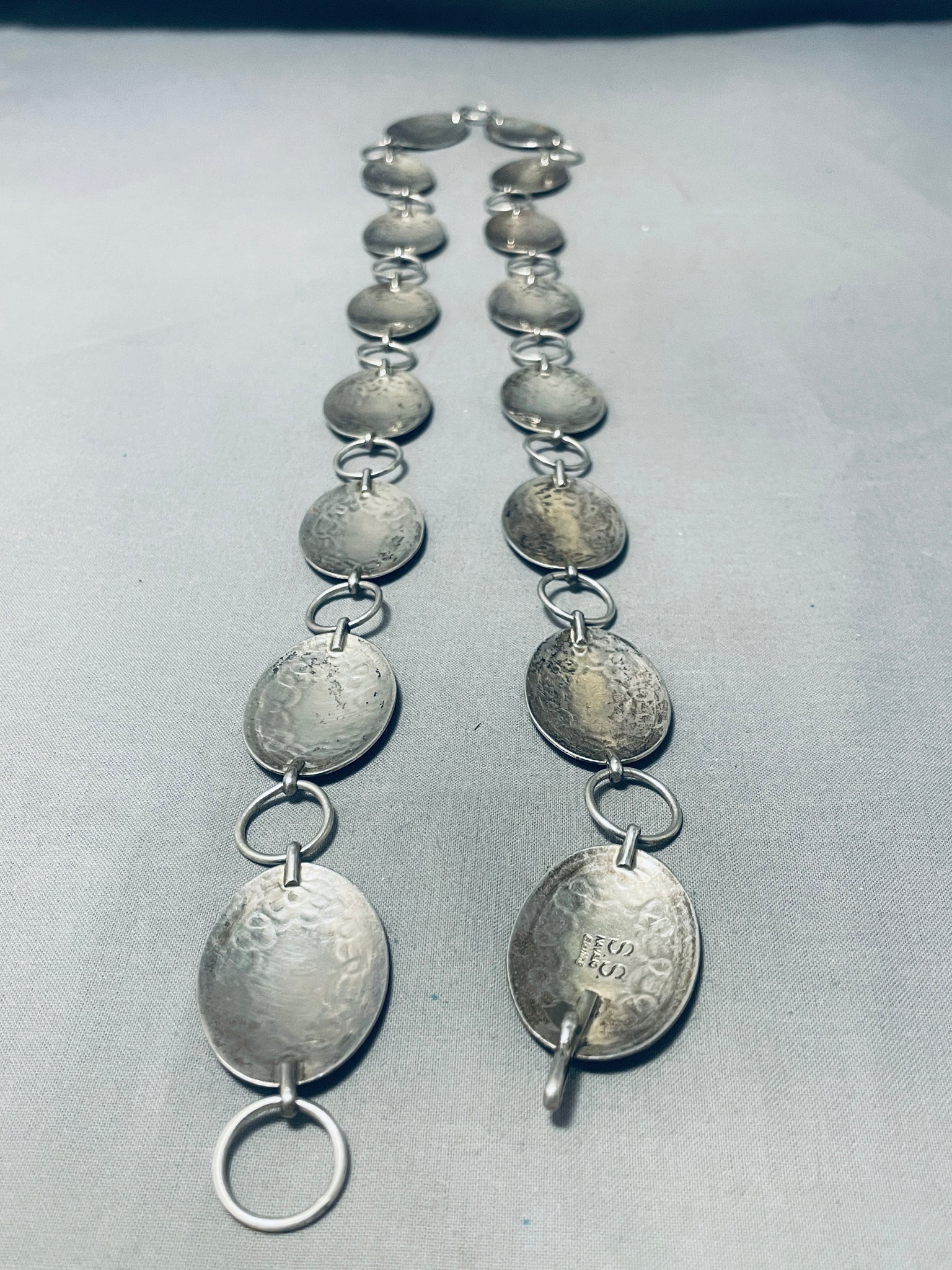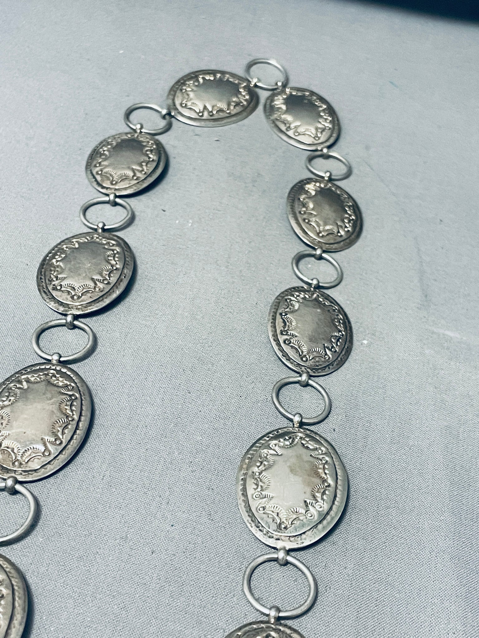 Remarkable Vintage Native American Navajo Handcarved Sterling Silver Concho Belt