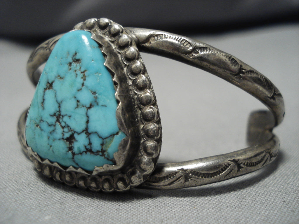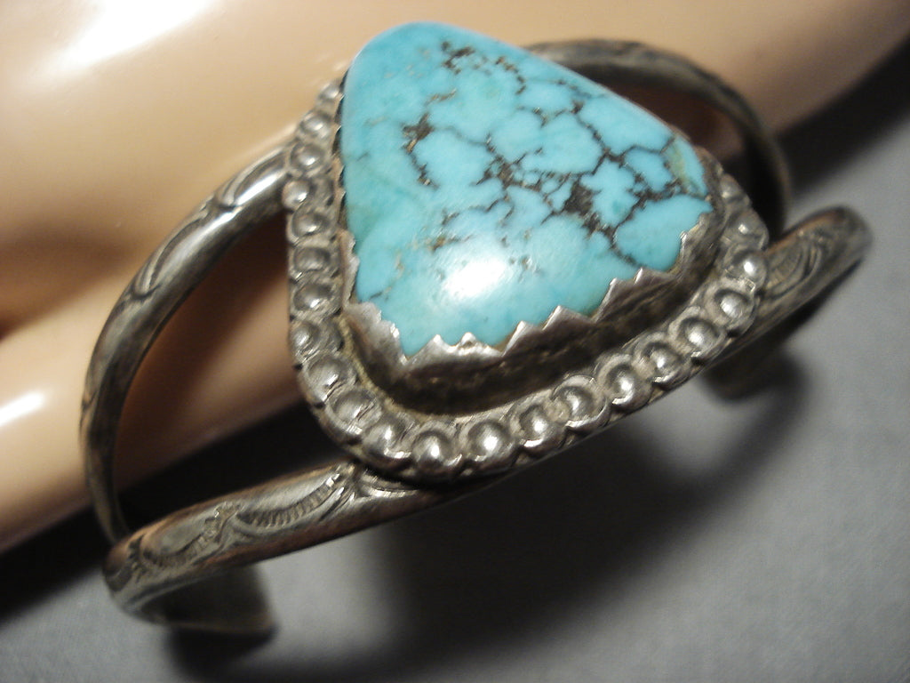 Remarkable Vintage Native American Navajo Spiderweb Turquoise Sterling Silver Bracelet Old