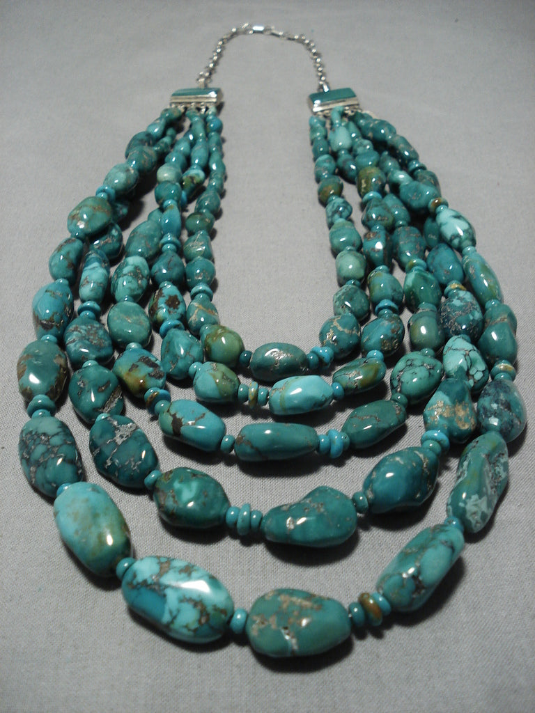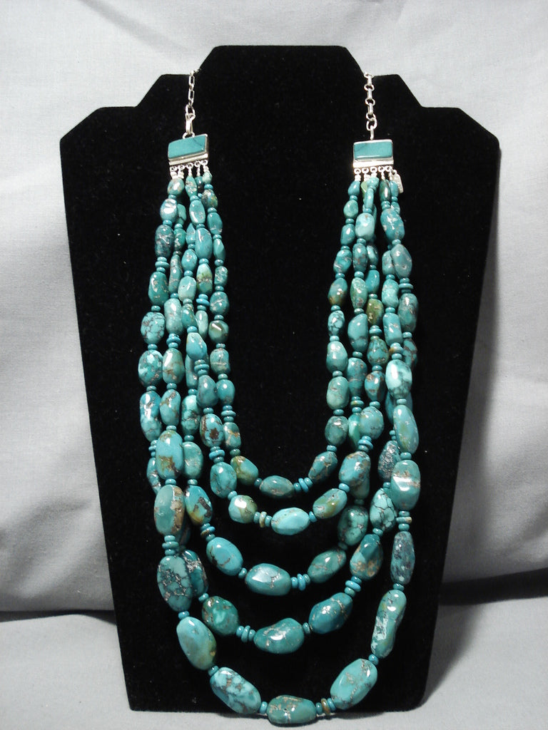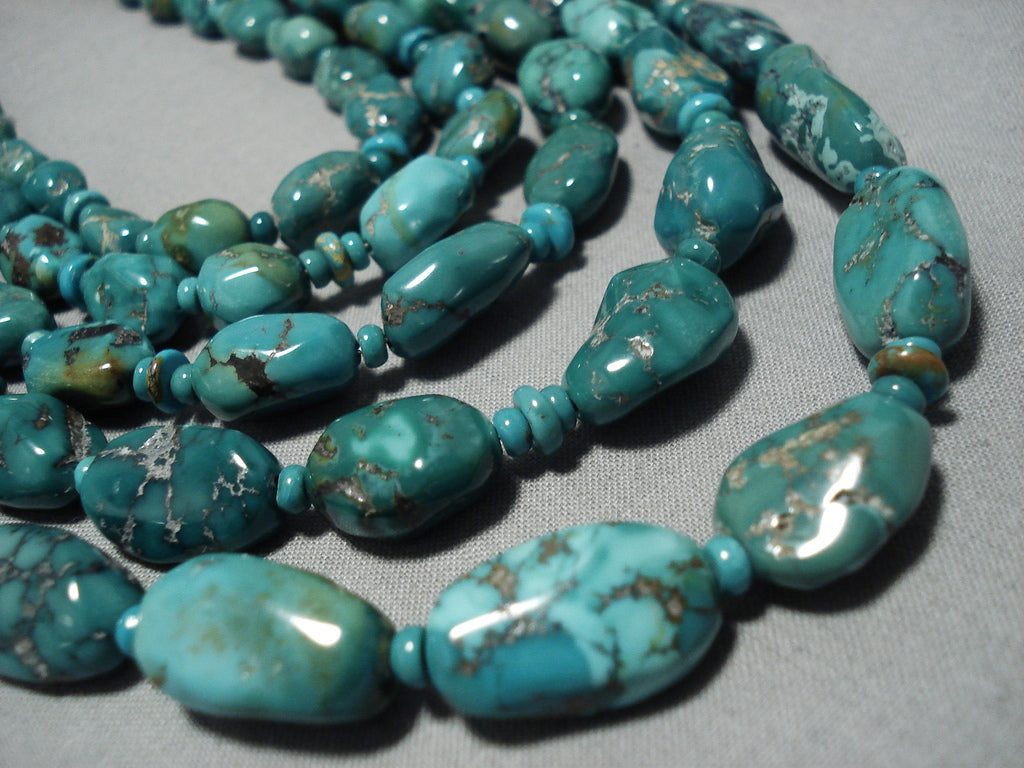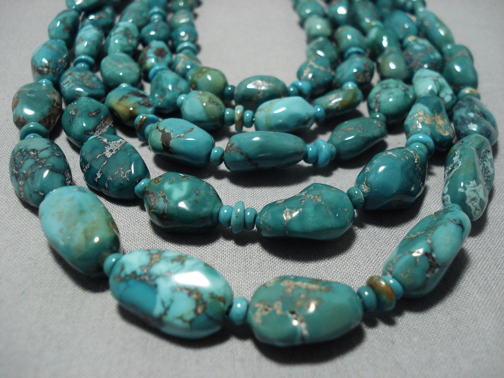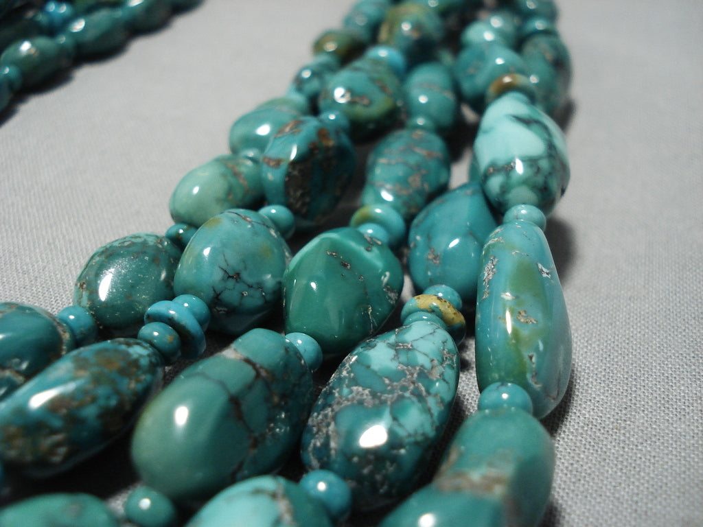 Remarkable Vintage Navajo Green Turquoise Native American Necklace