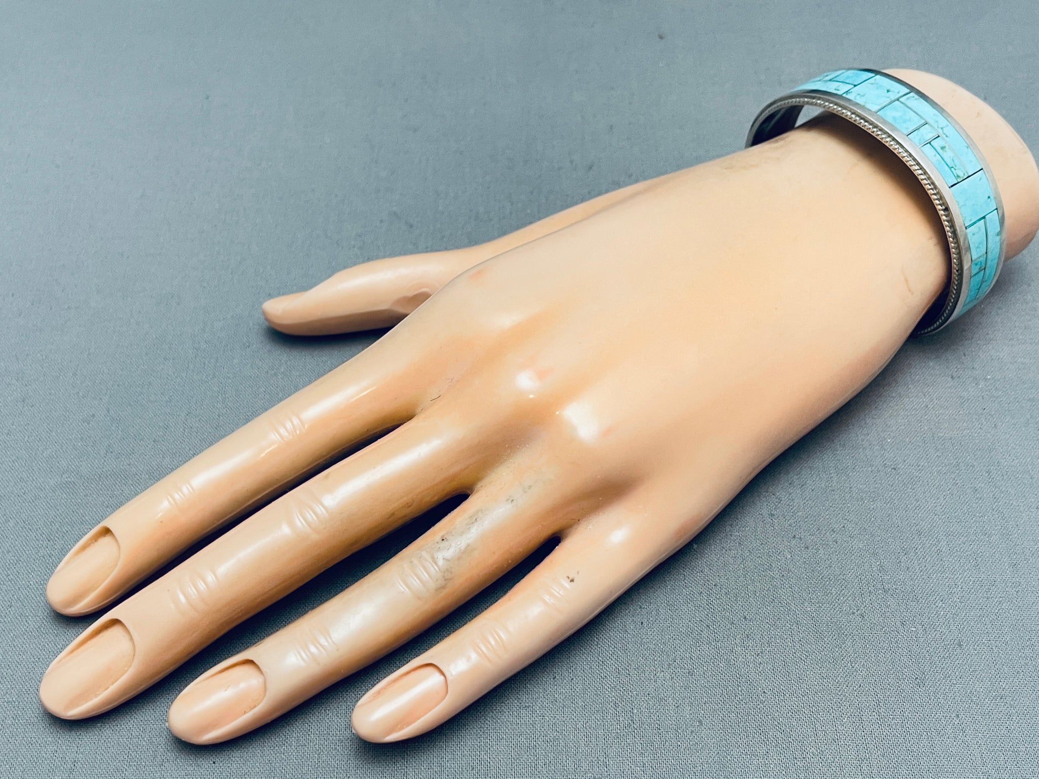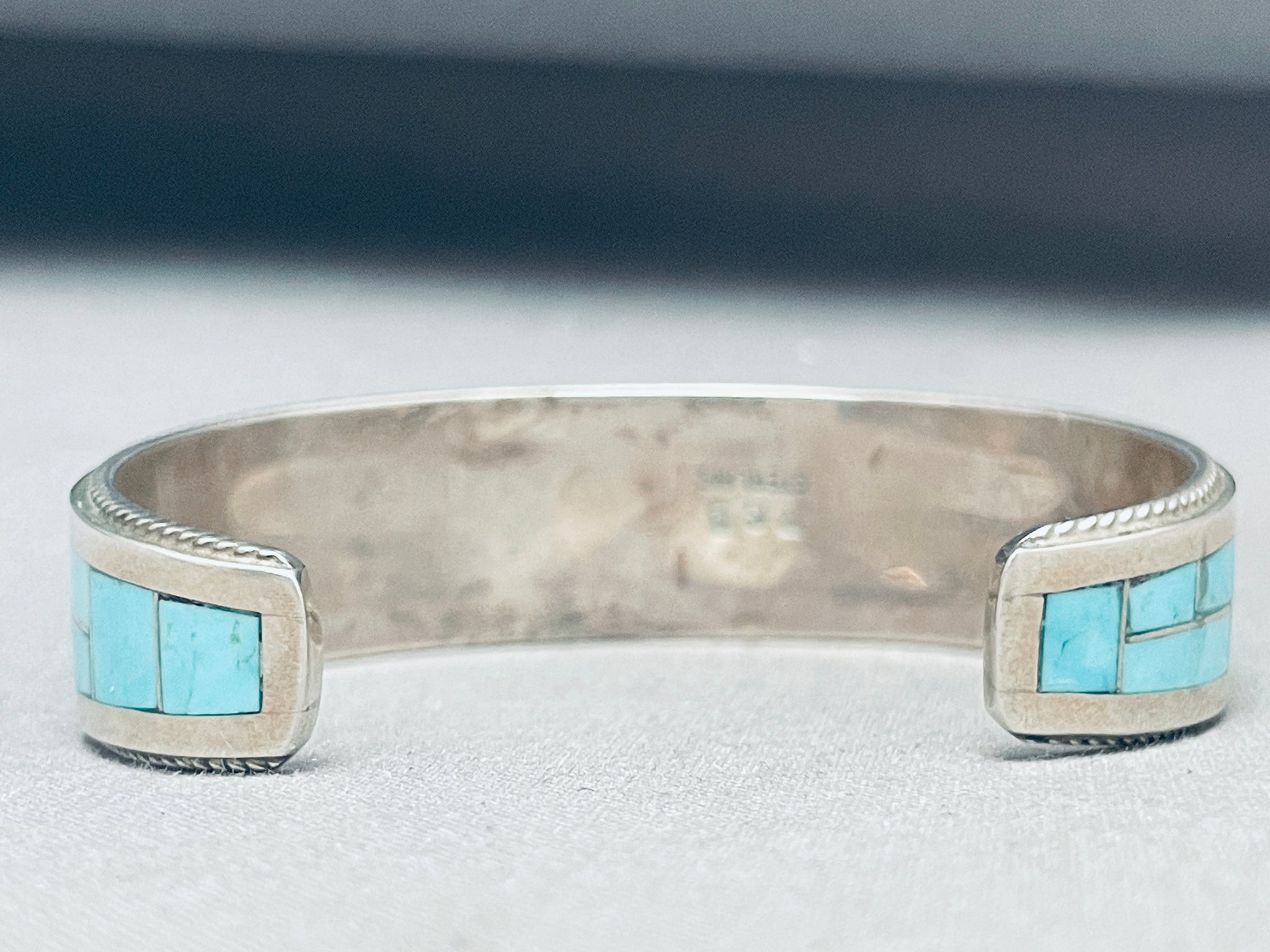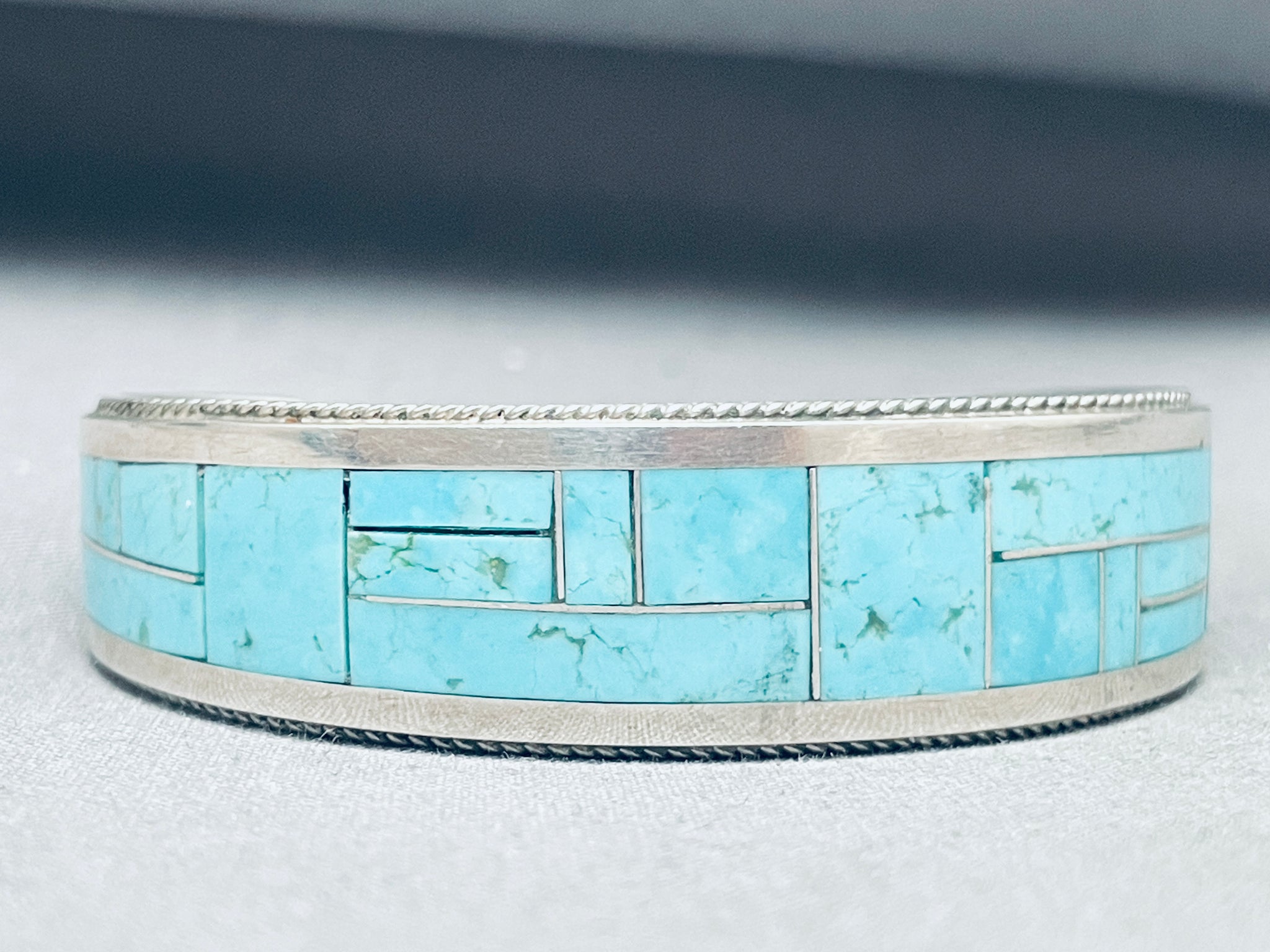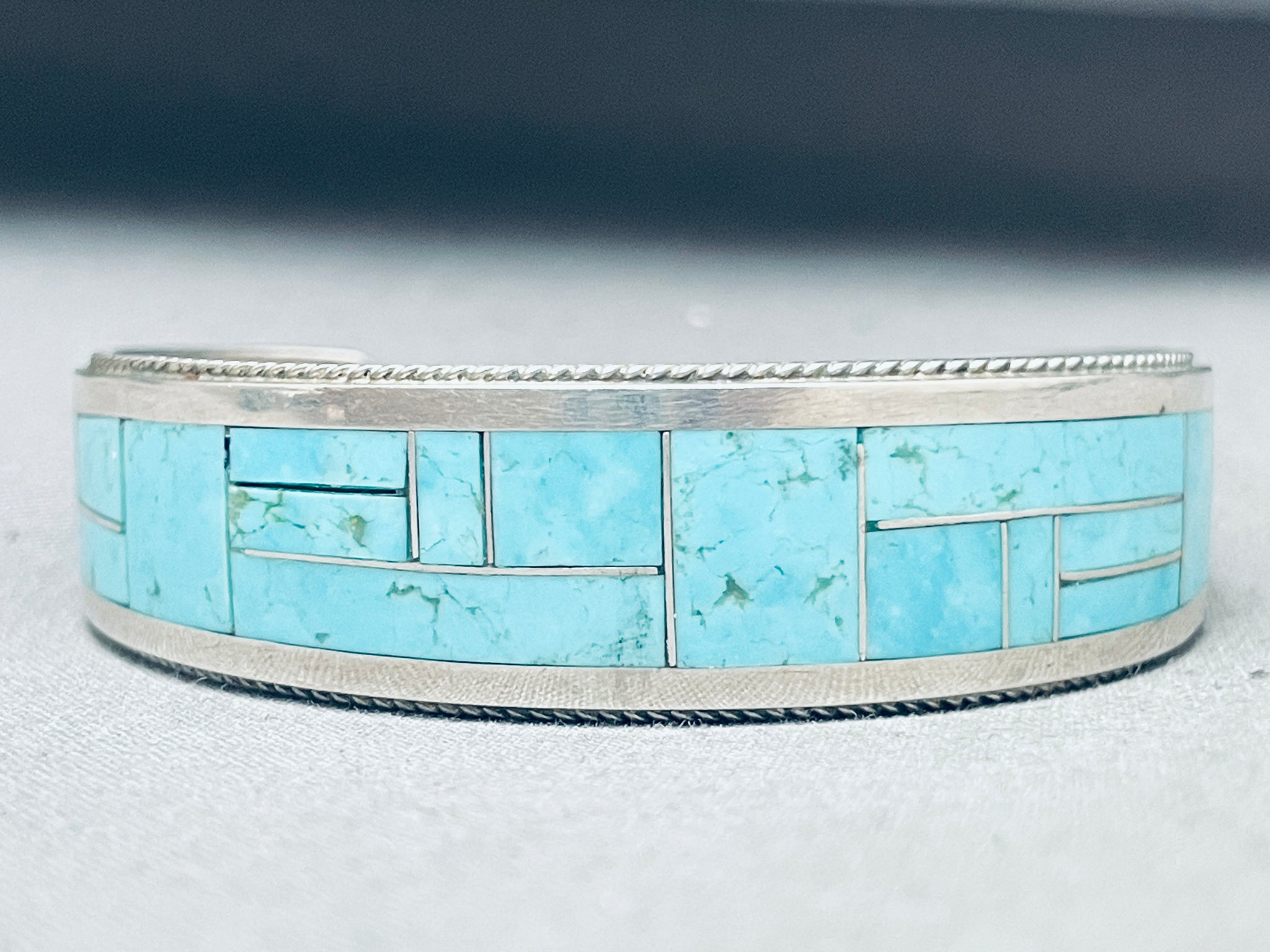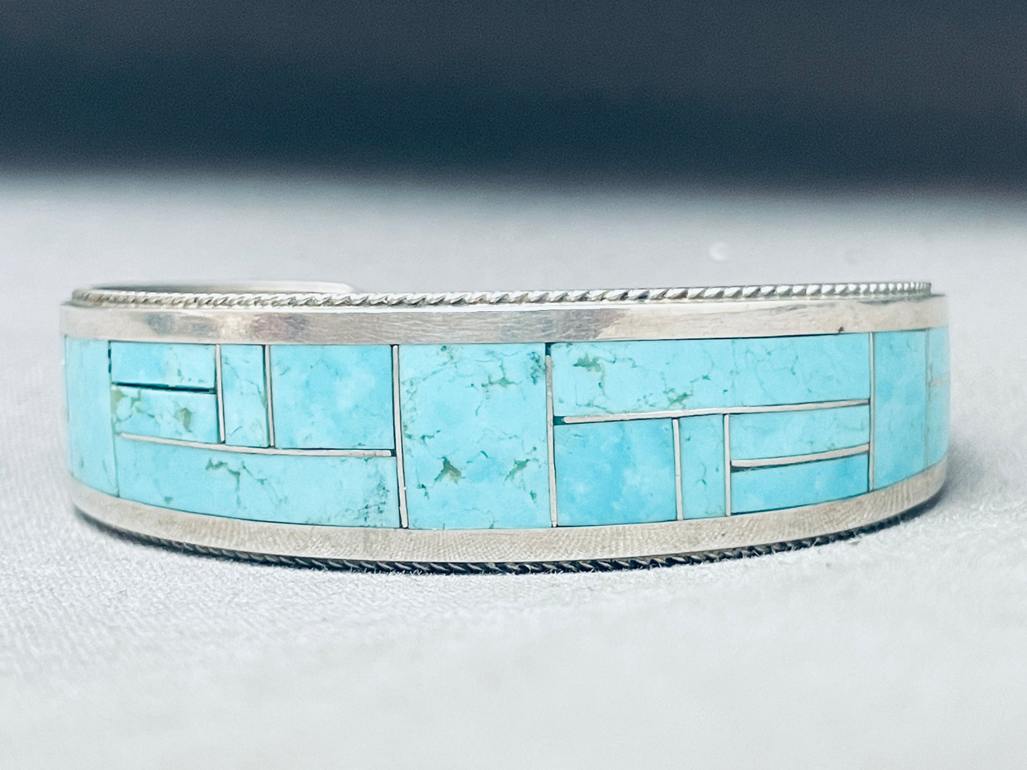 Rickell Booqua Native American Zuni Blue Gem Turquoise Sterling Silver Bracelet