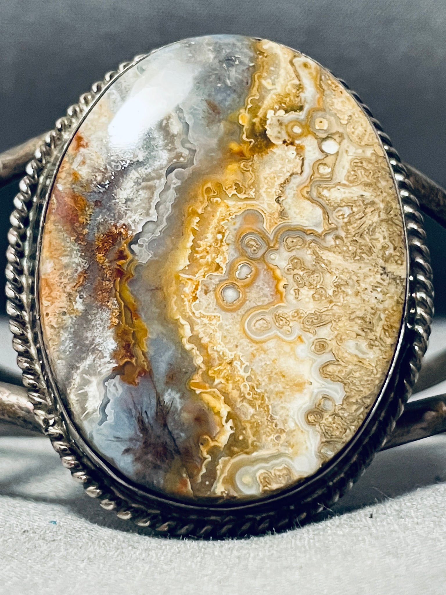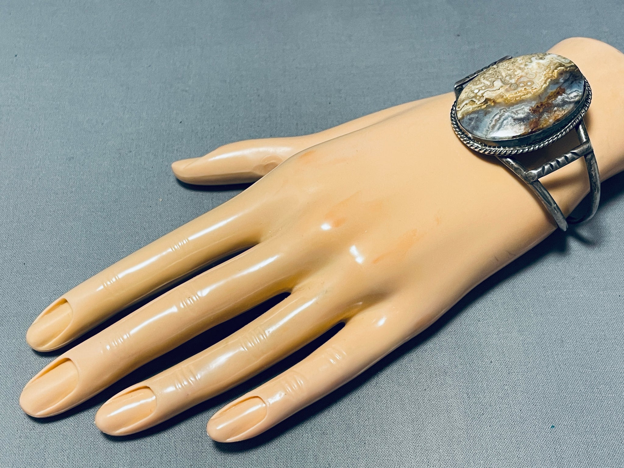 River In Jasper Vintage Native American Navajo Sterling Silver Bracelet Cuff