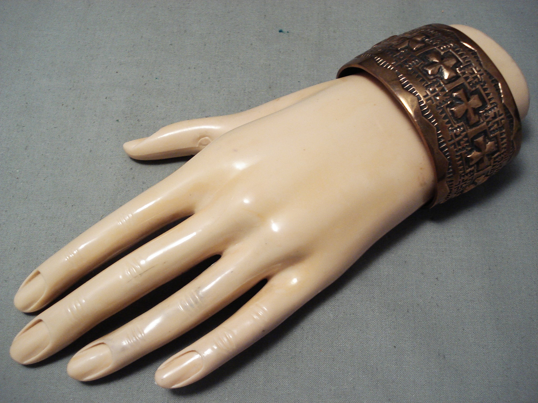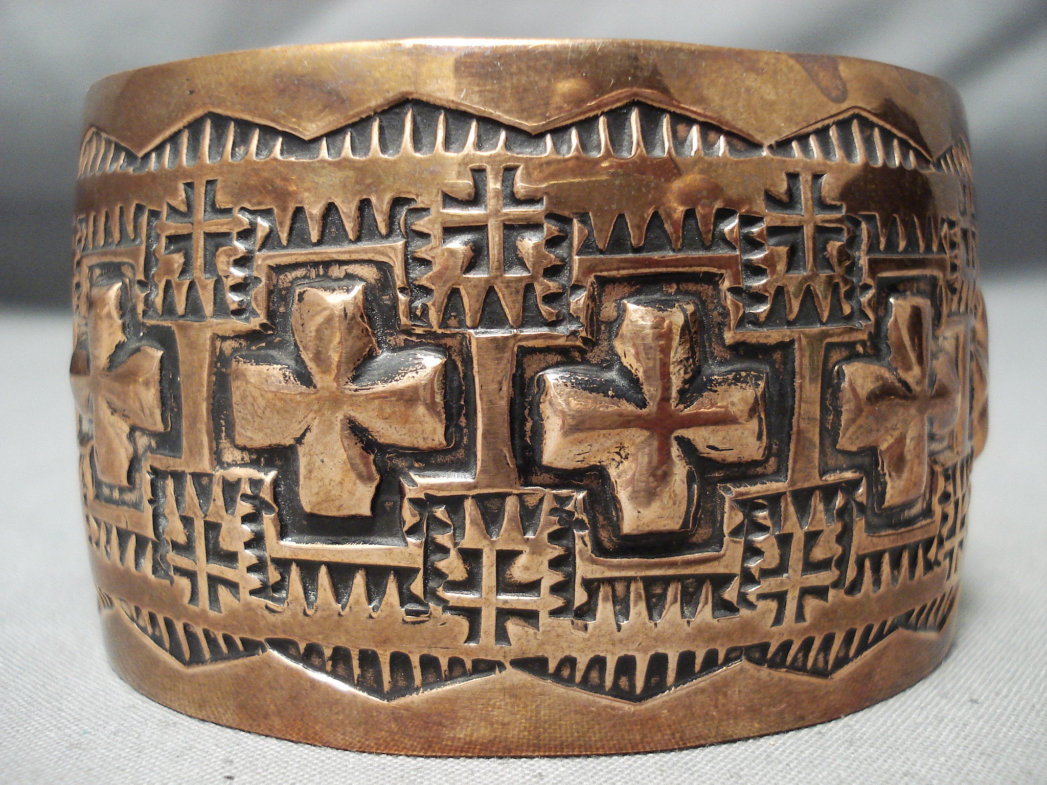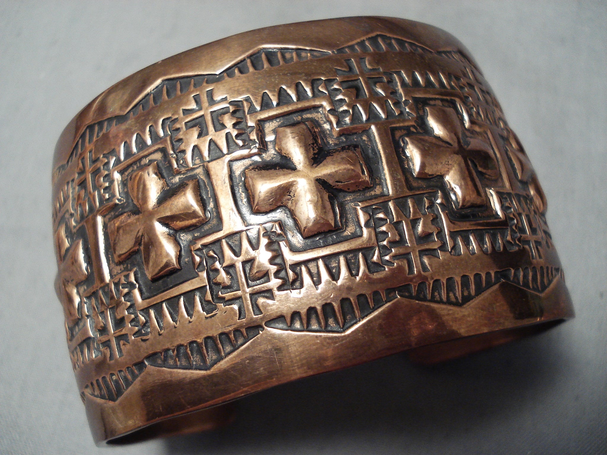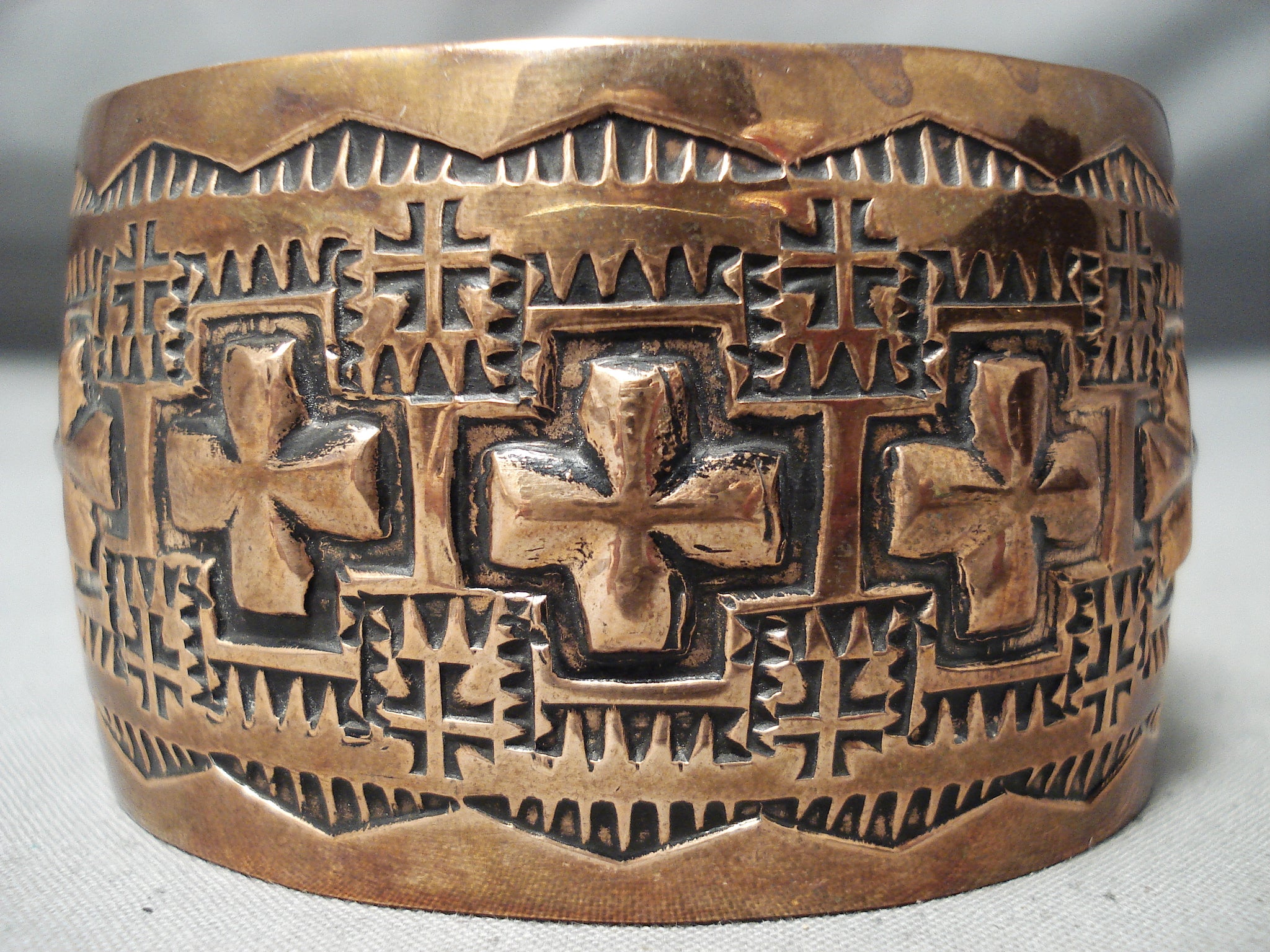 Ron Willie Navajo Wide Copper Cross Bracelet Native American