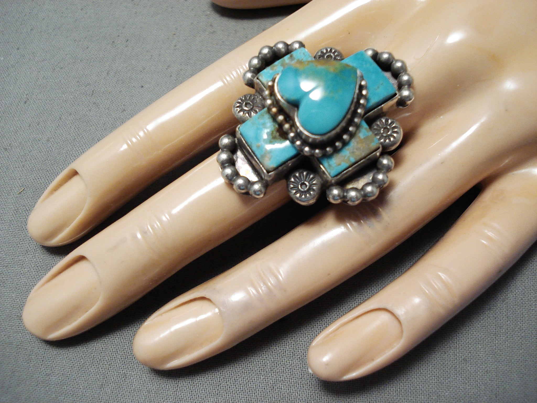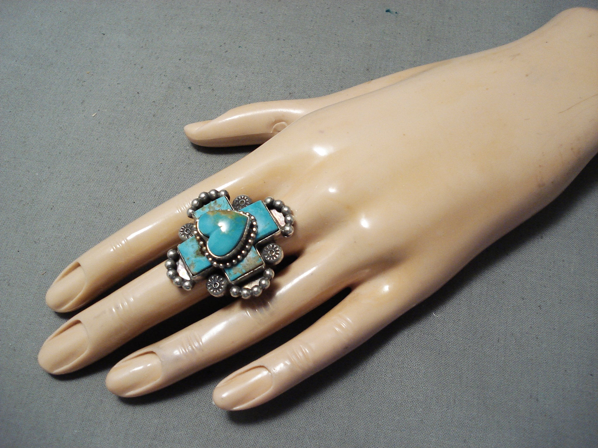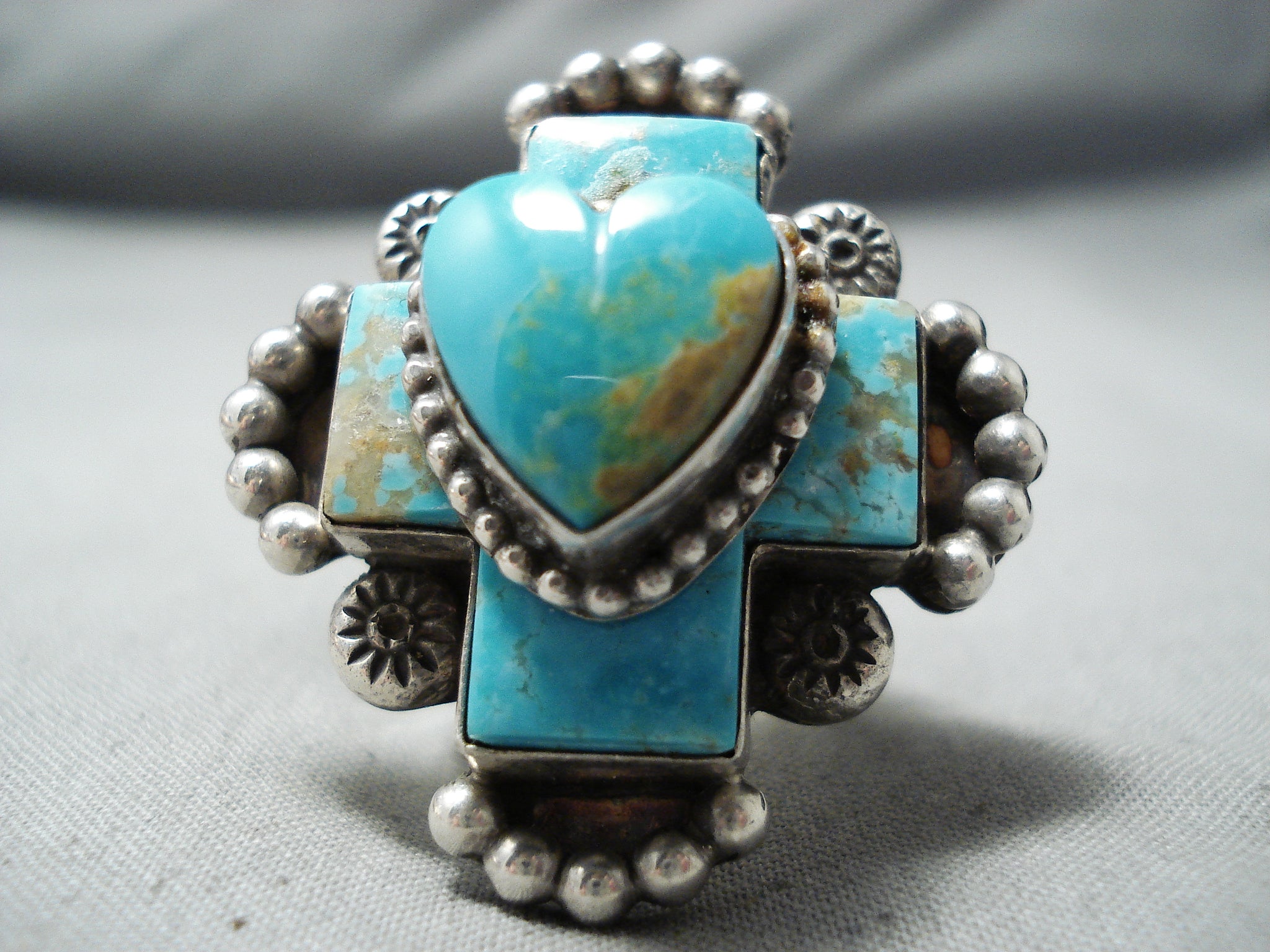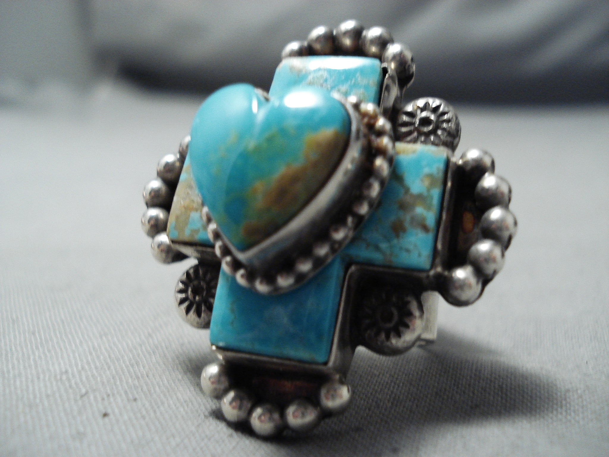 Rose Paxton Native American Navajo Royston Turquoise Heart Cross Sterling Silver Ring