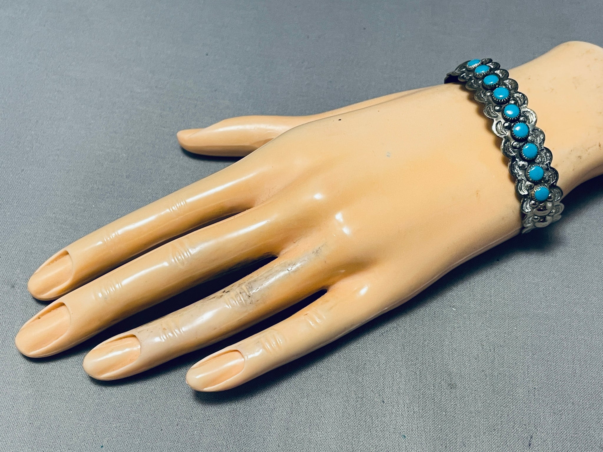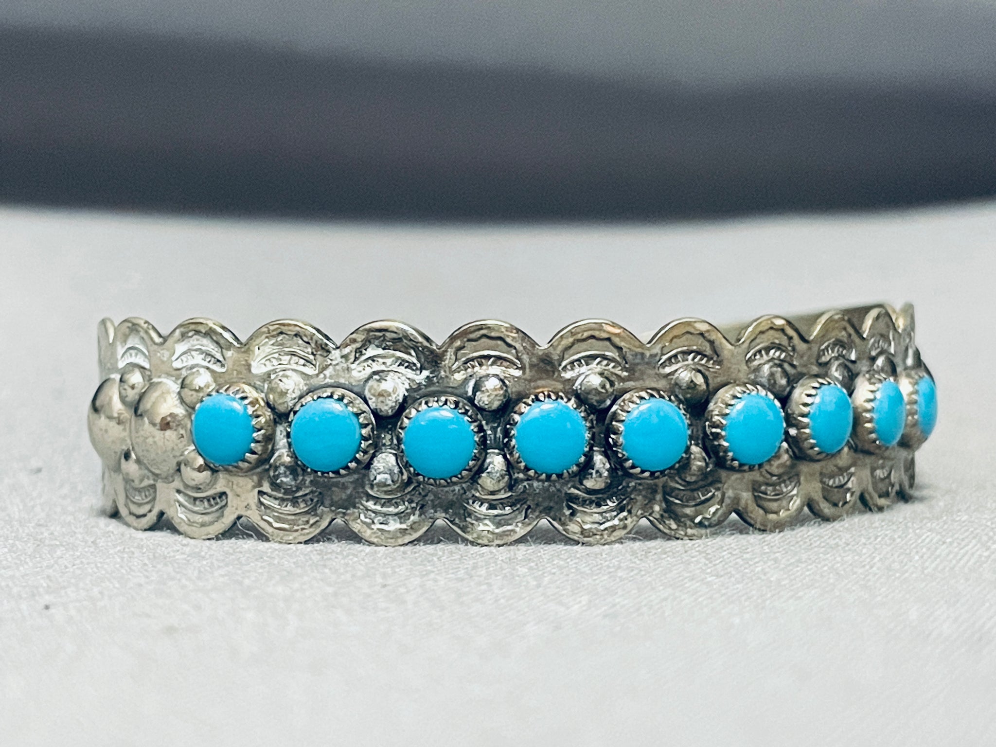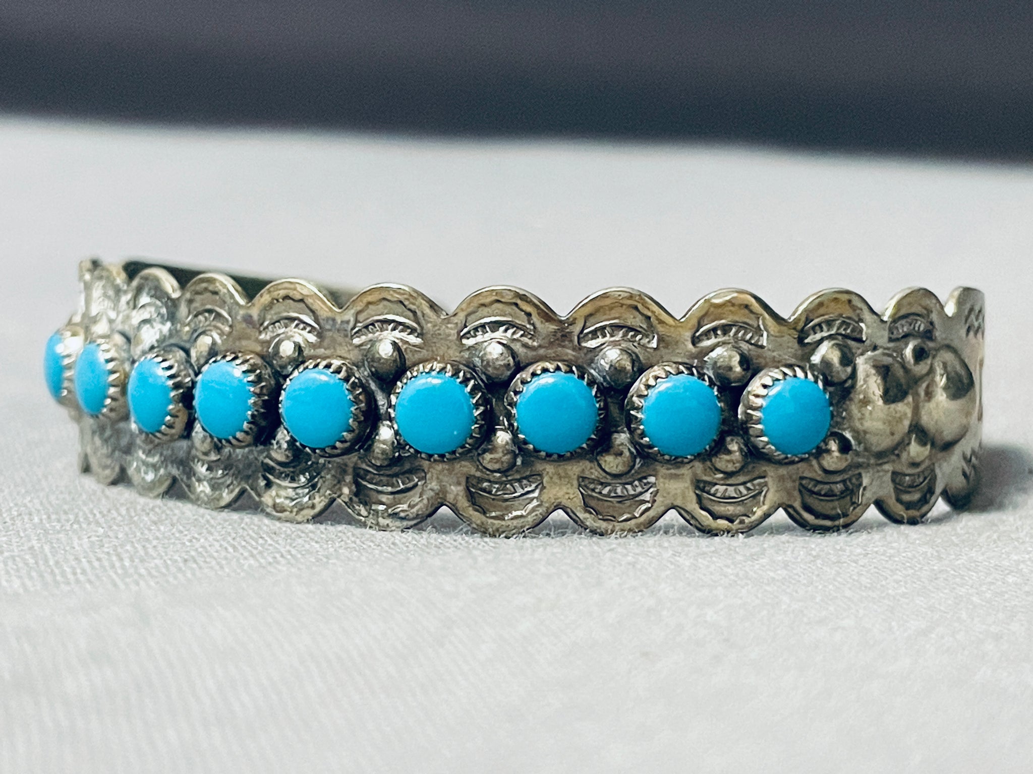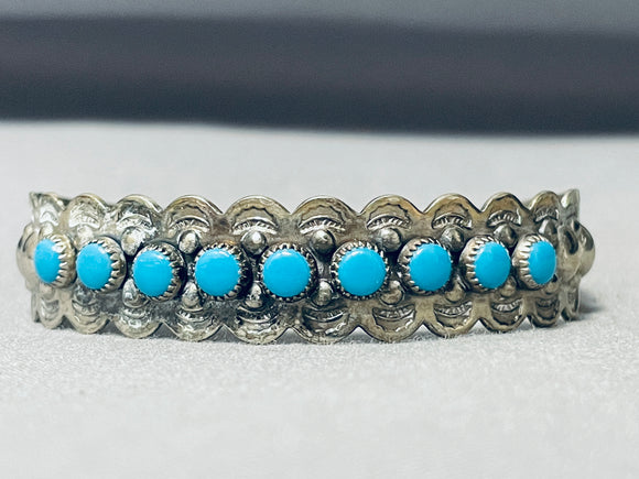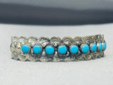 Rounded Turquoise Vintage Native American Navajo Sterling Silver Bracelet