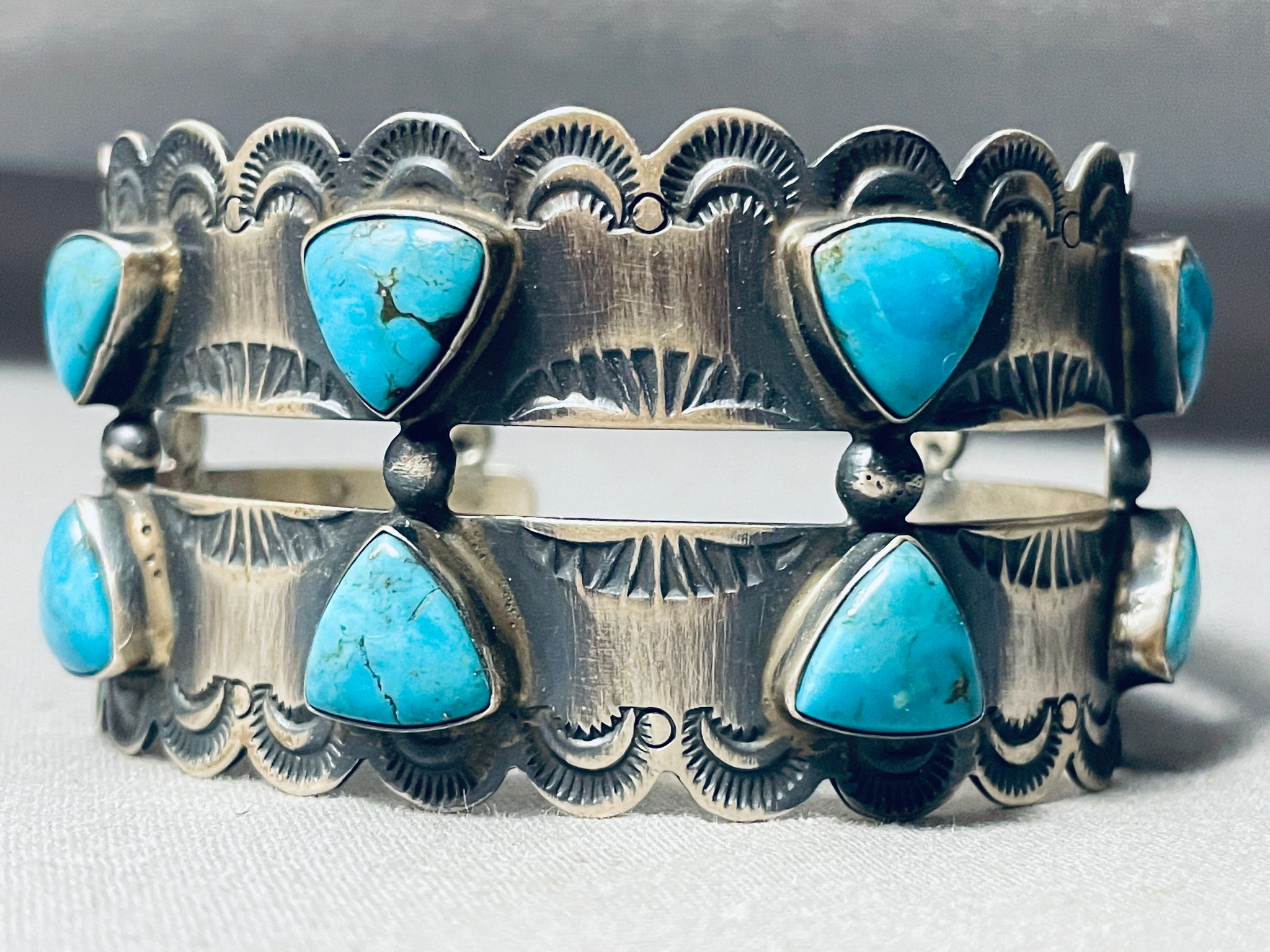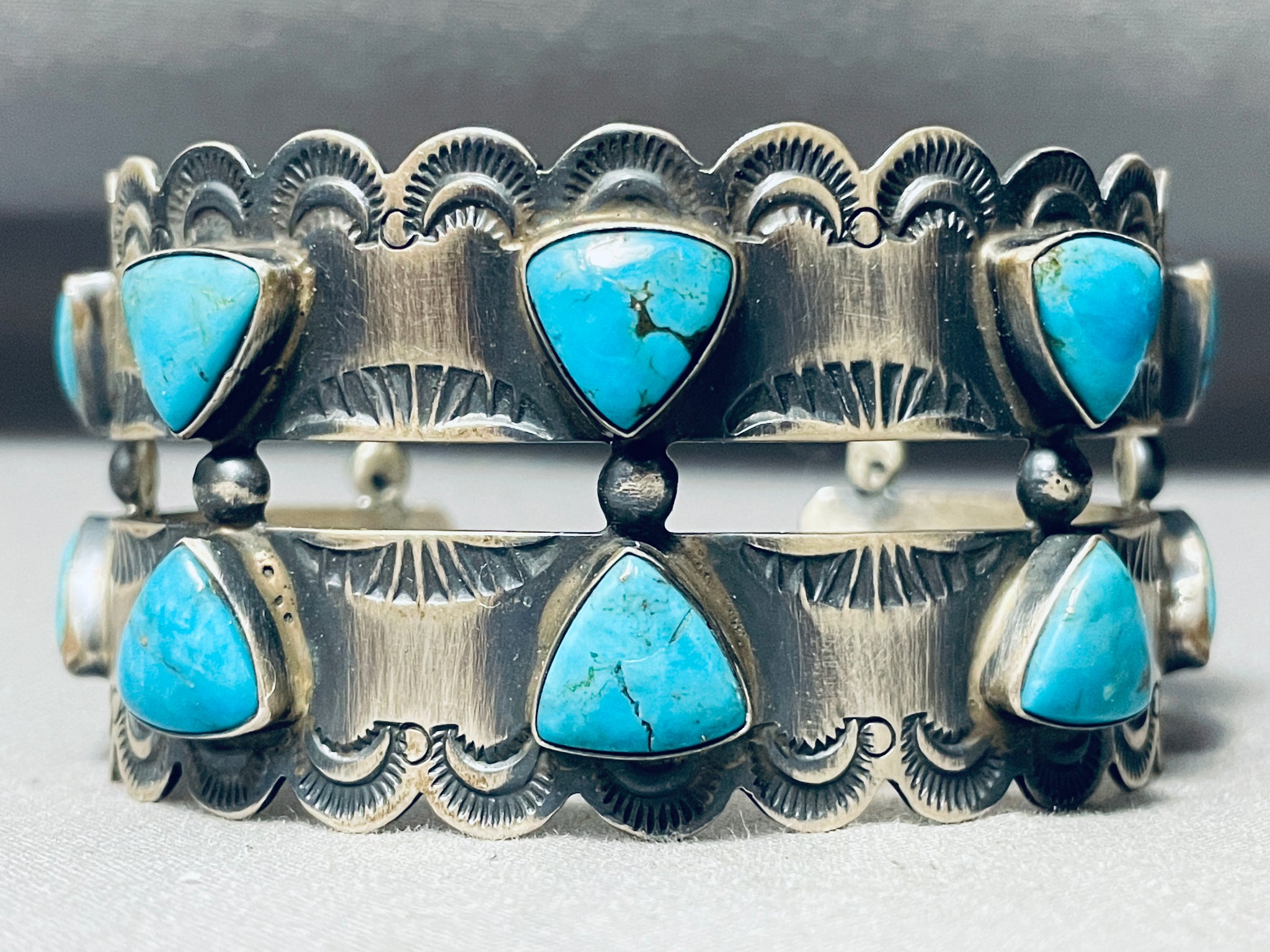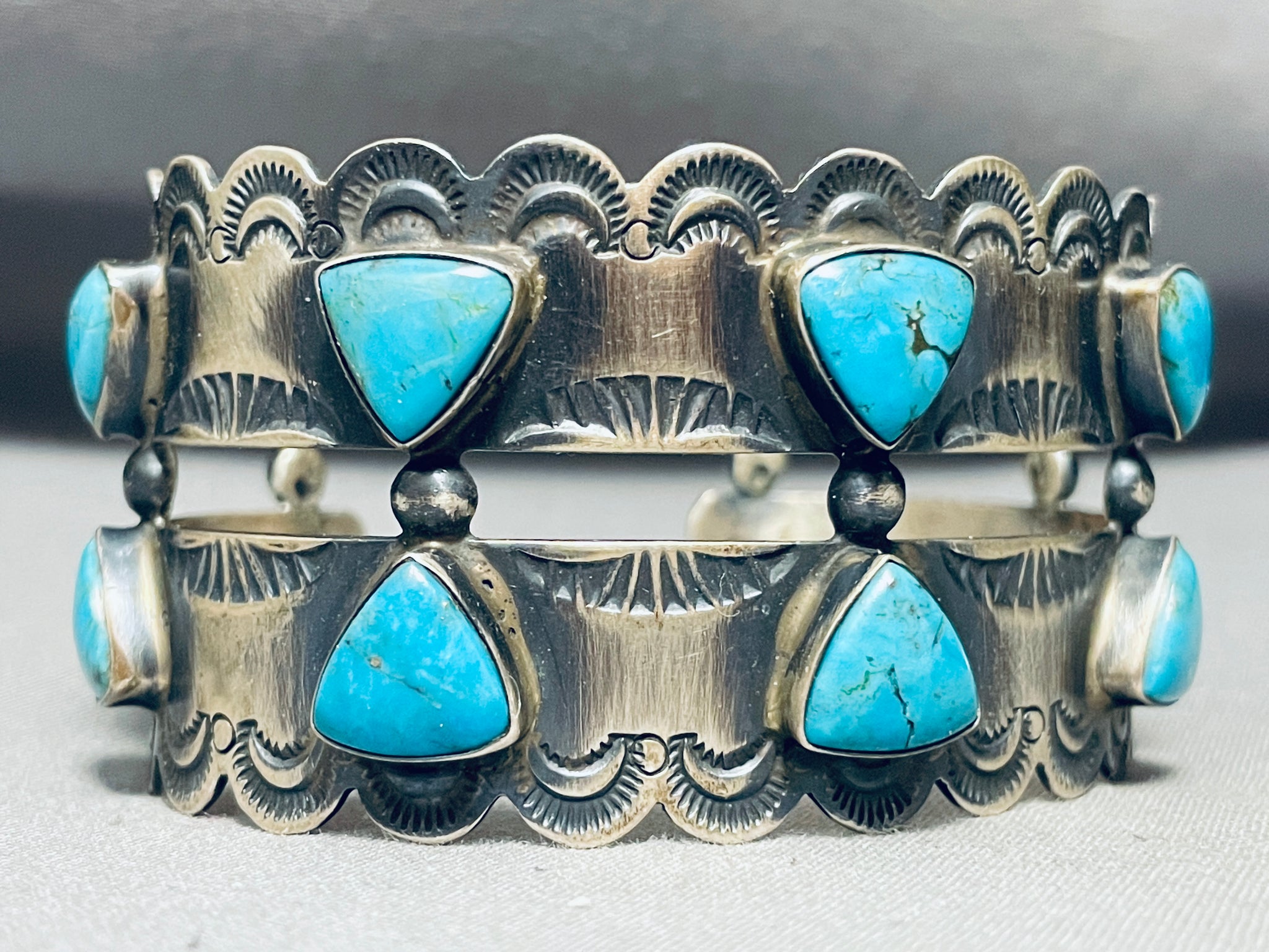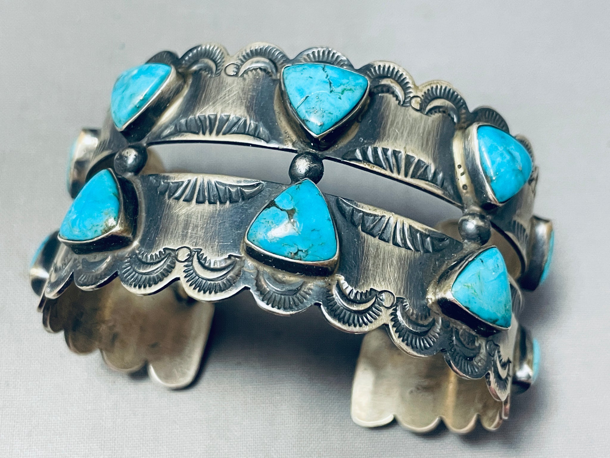 Russ Sam Vintage Native American Navajo Teardrop Turquoise Sterling Silver Bracelet