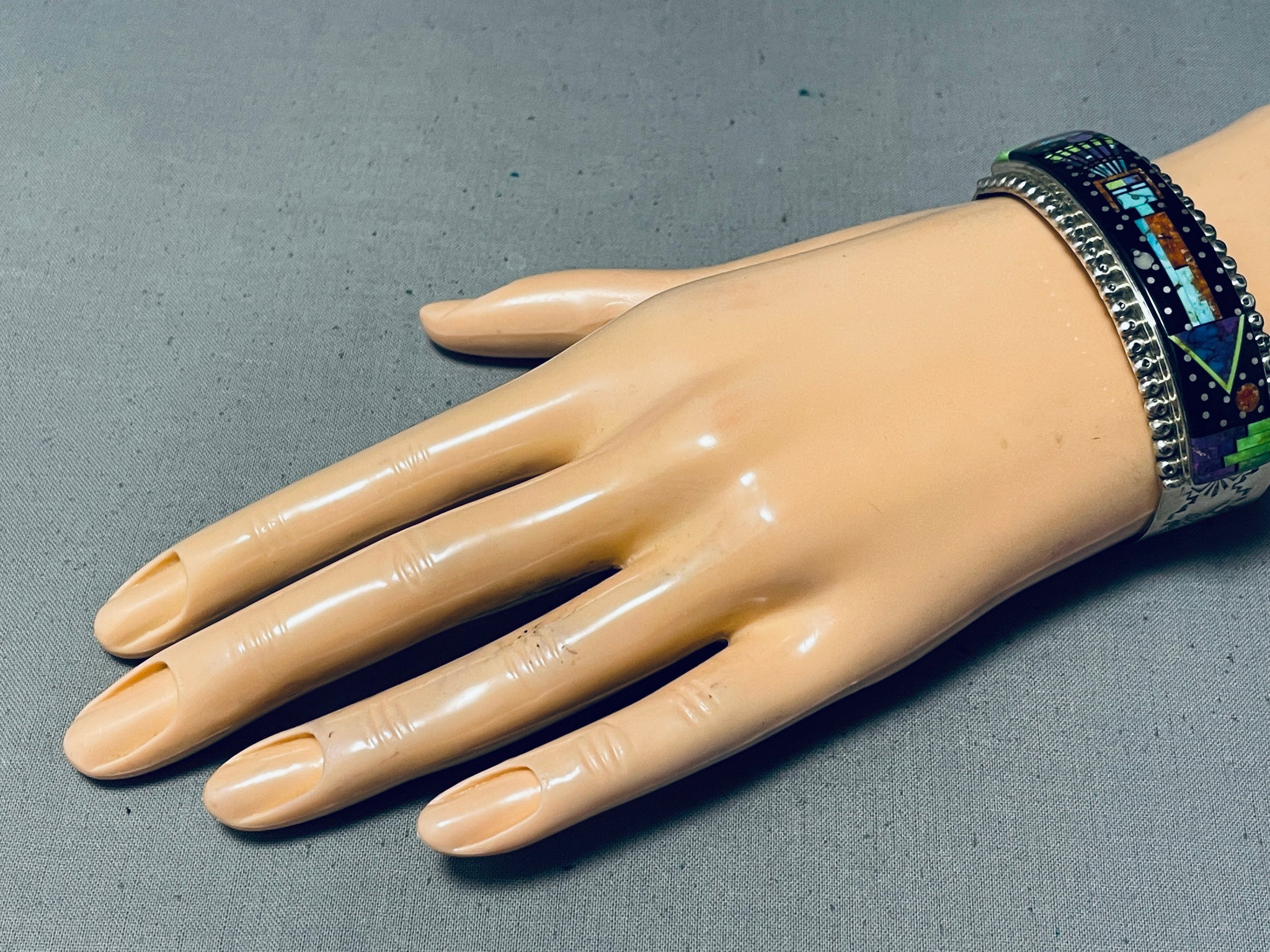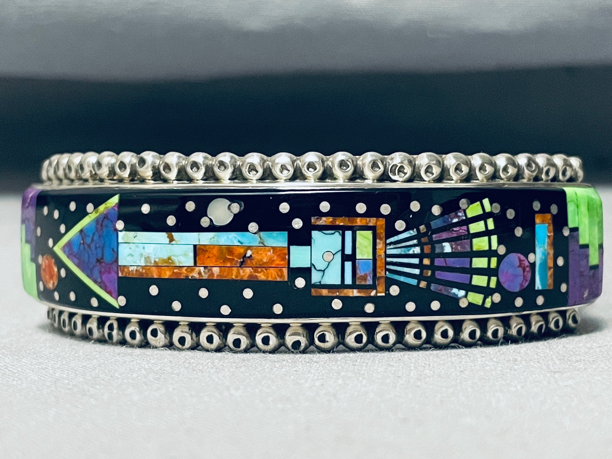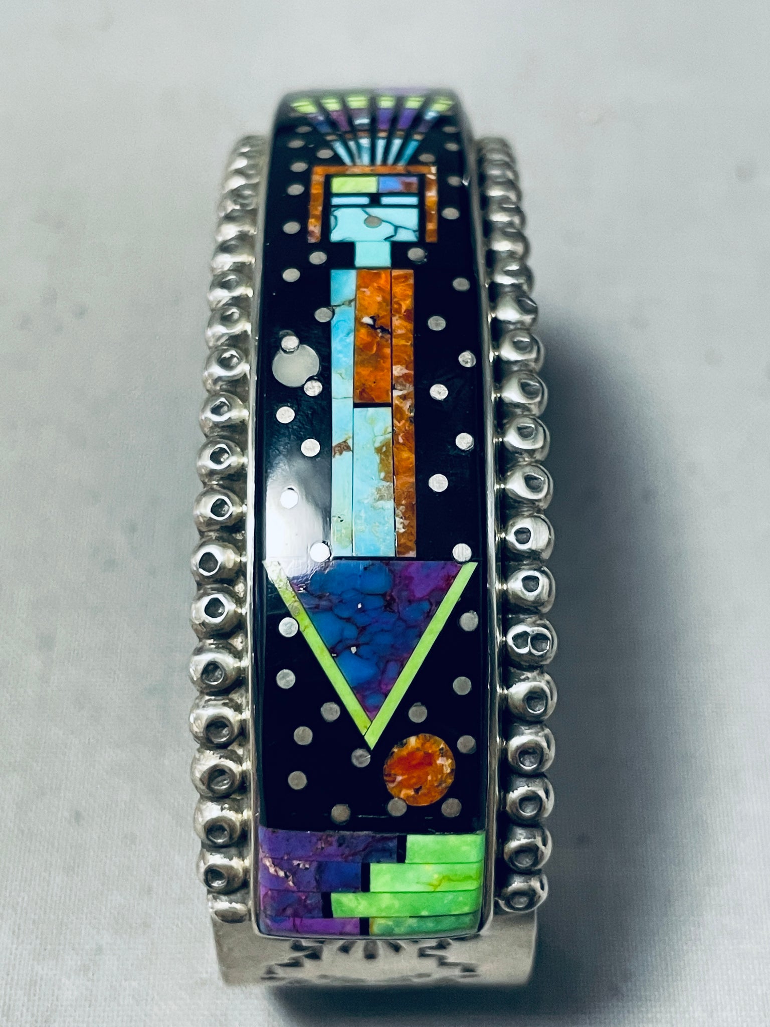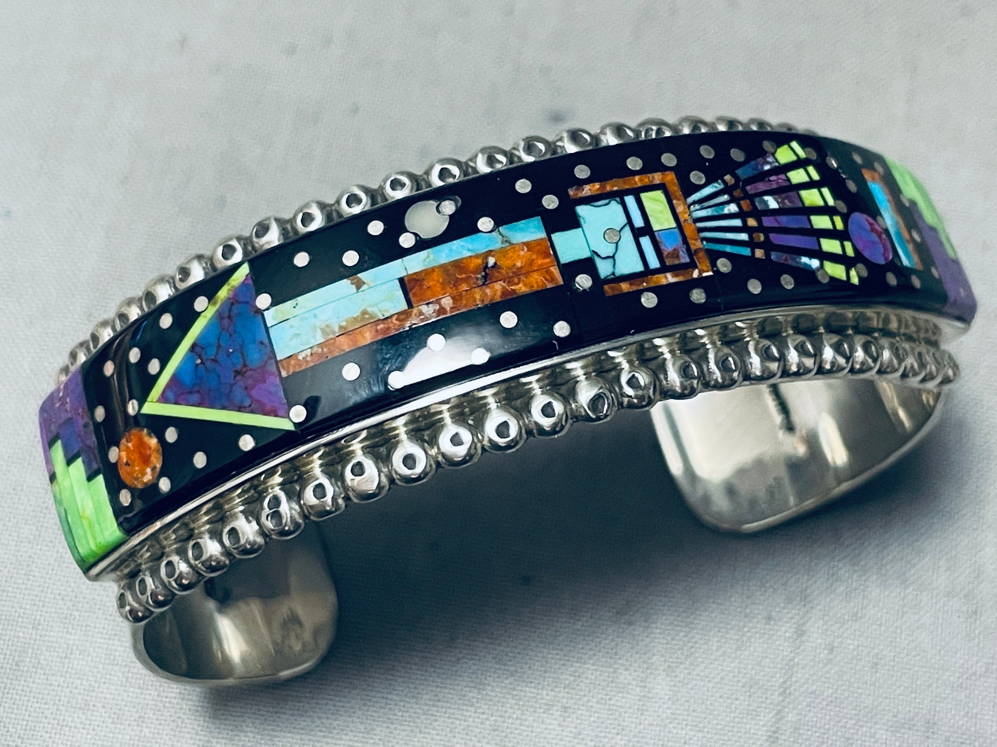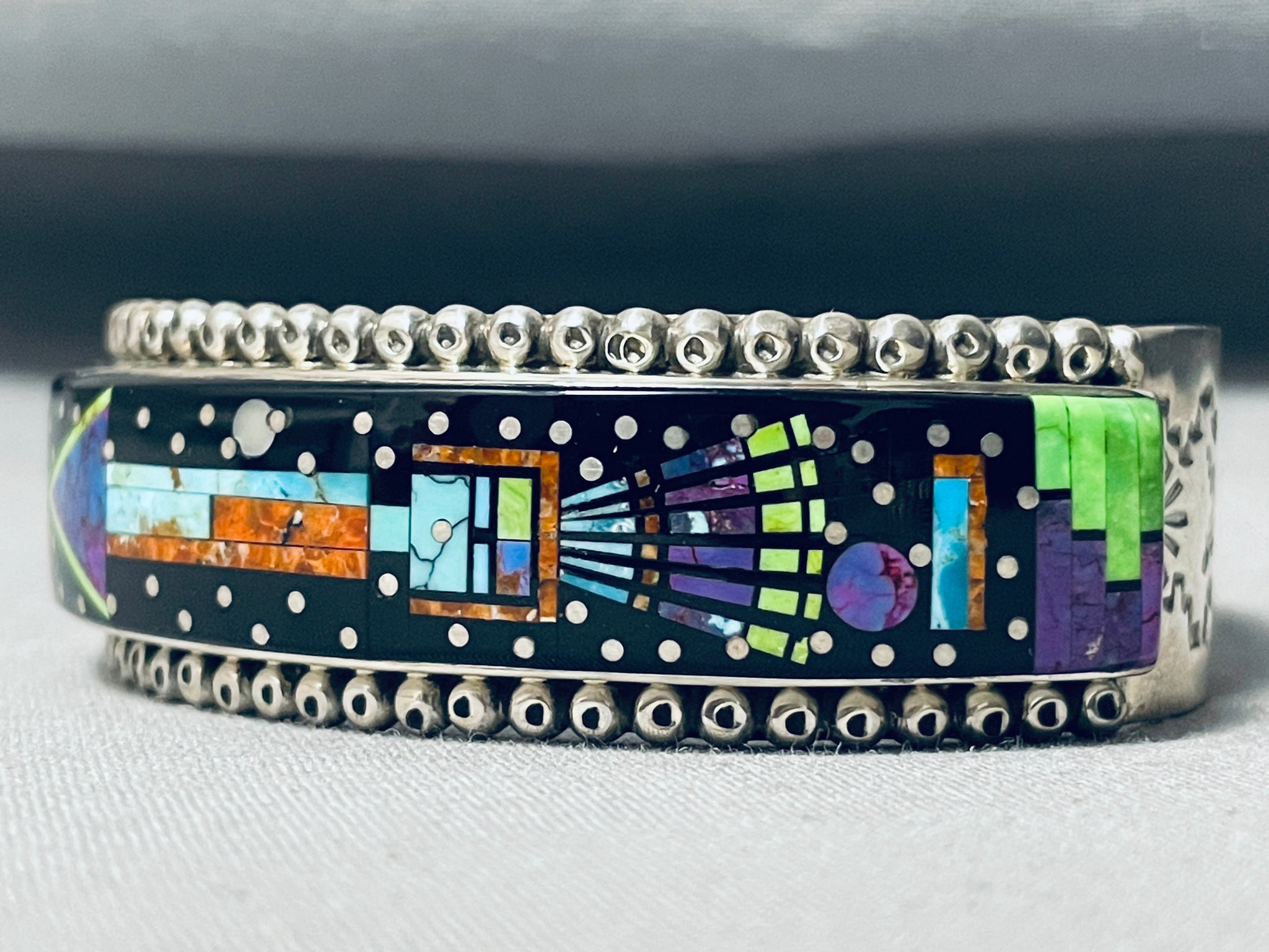 Sammy Smith Extreme Inlay Native American Navajo Turquoise Sterling Silver Space Bracelet