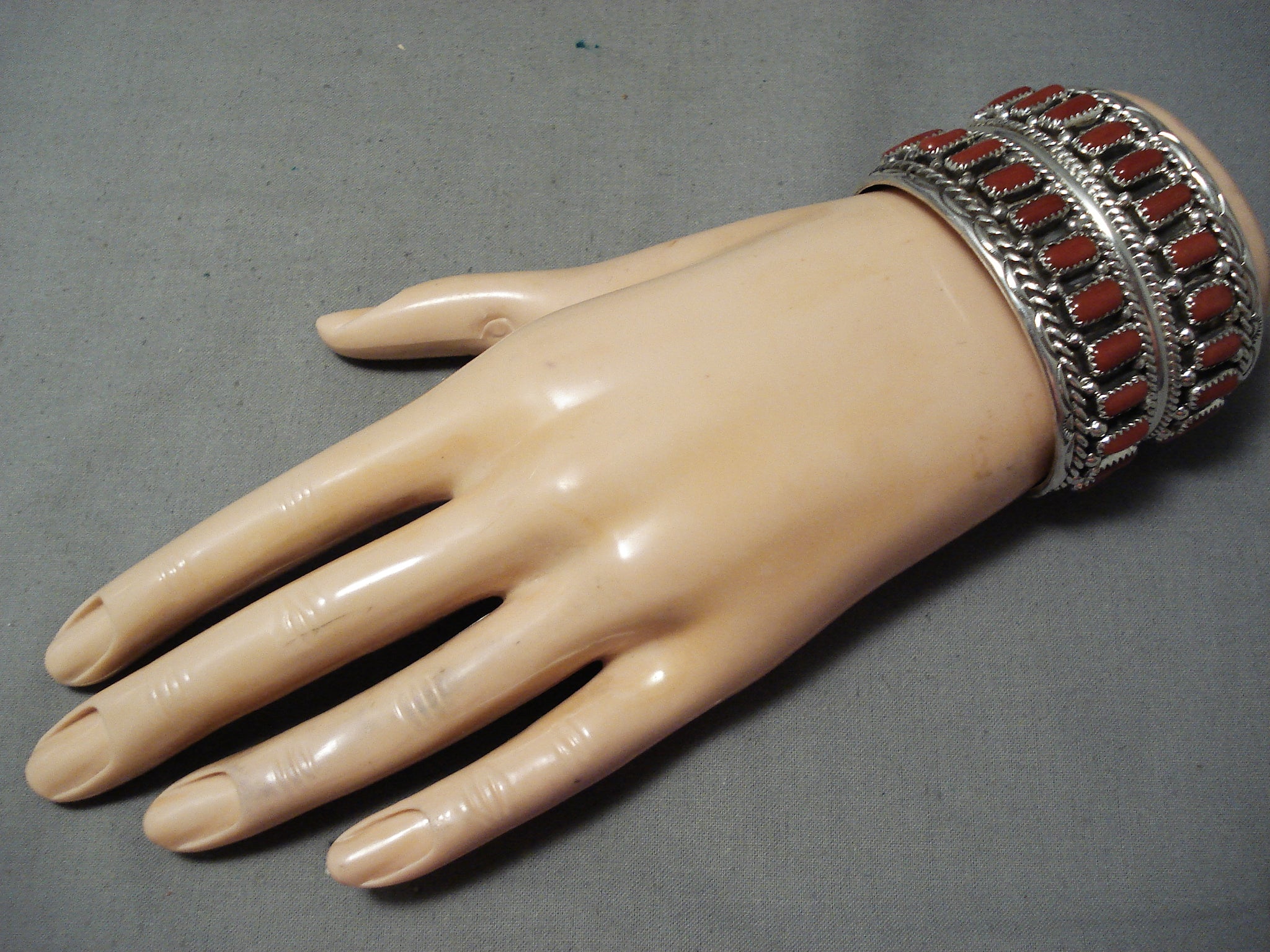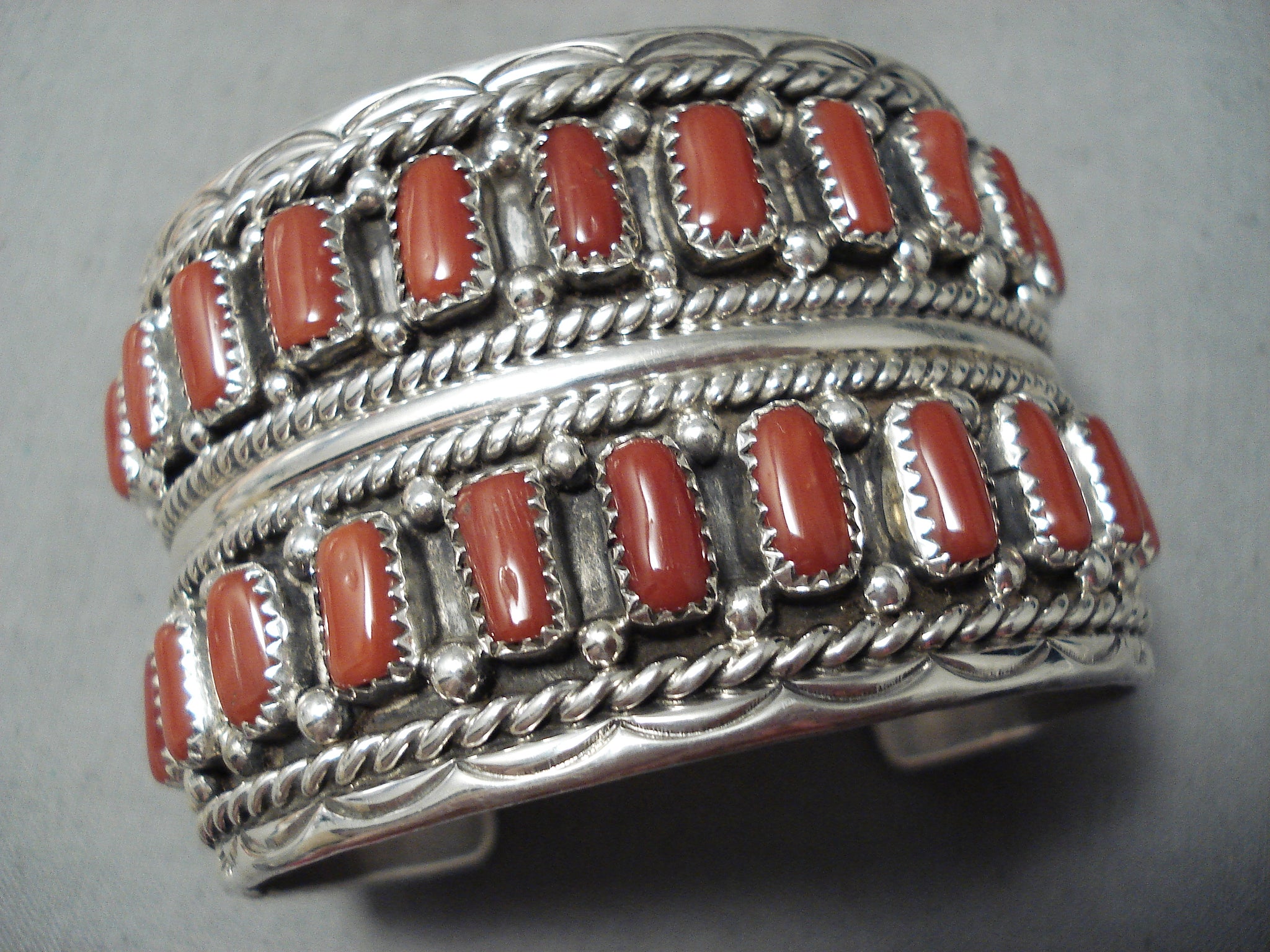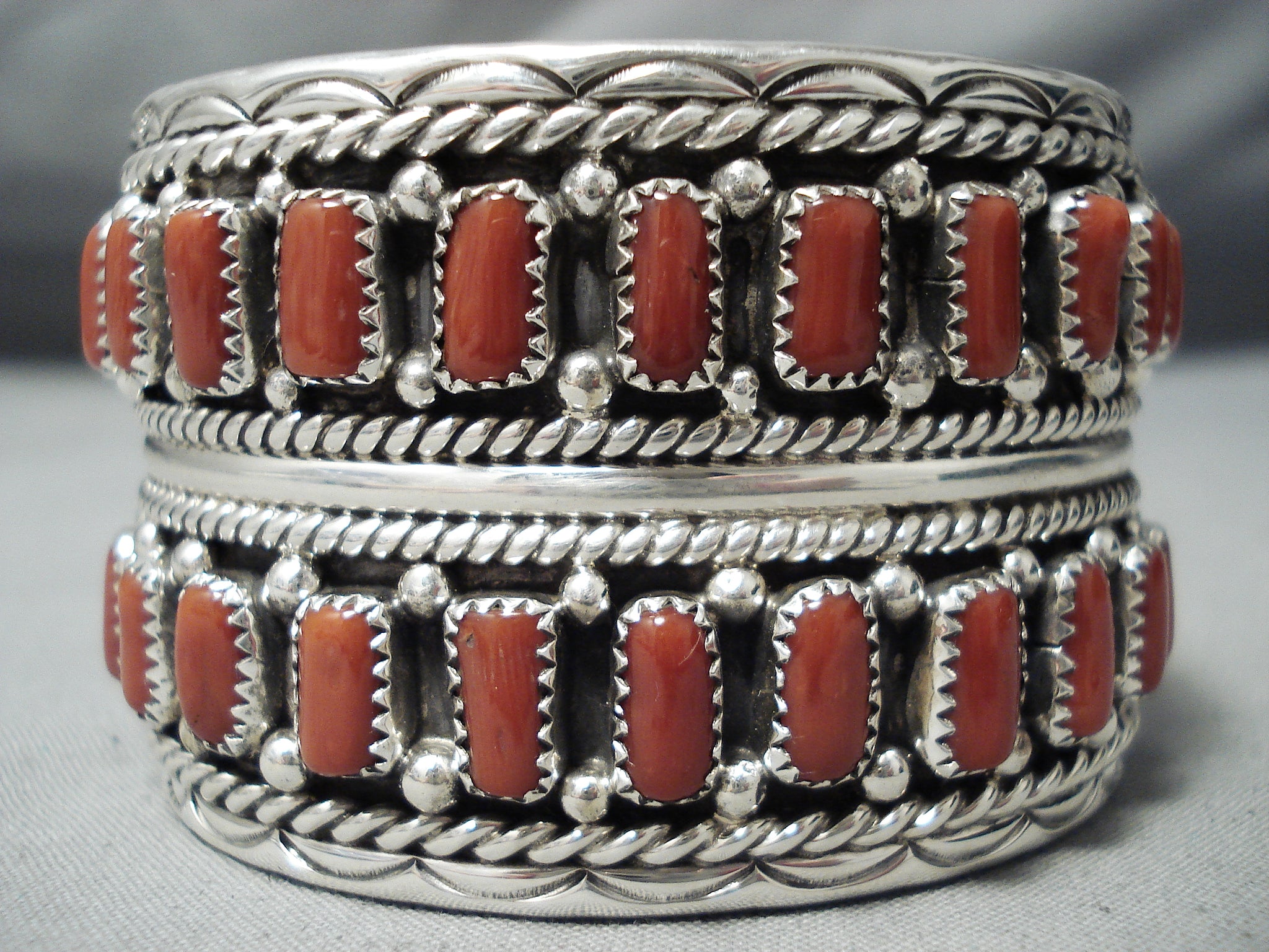 Sensational Navajo Coral Sterling Silver Bracelet Native American