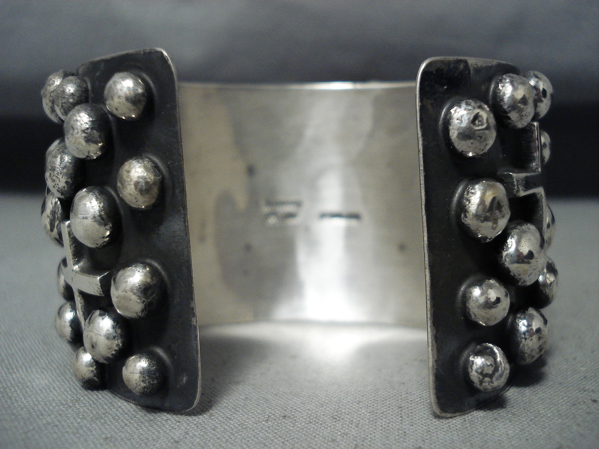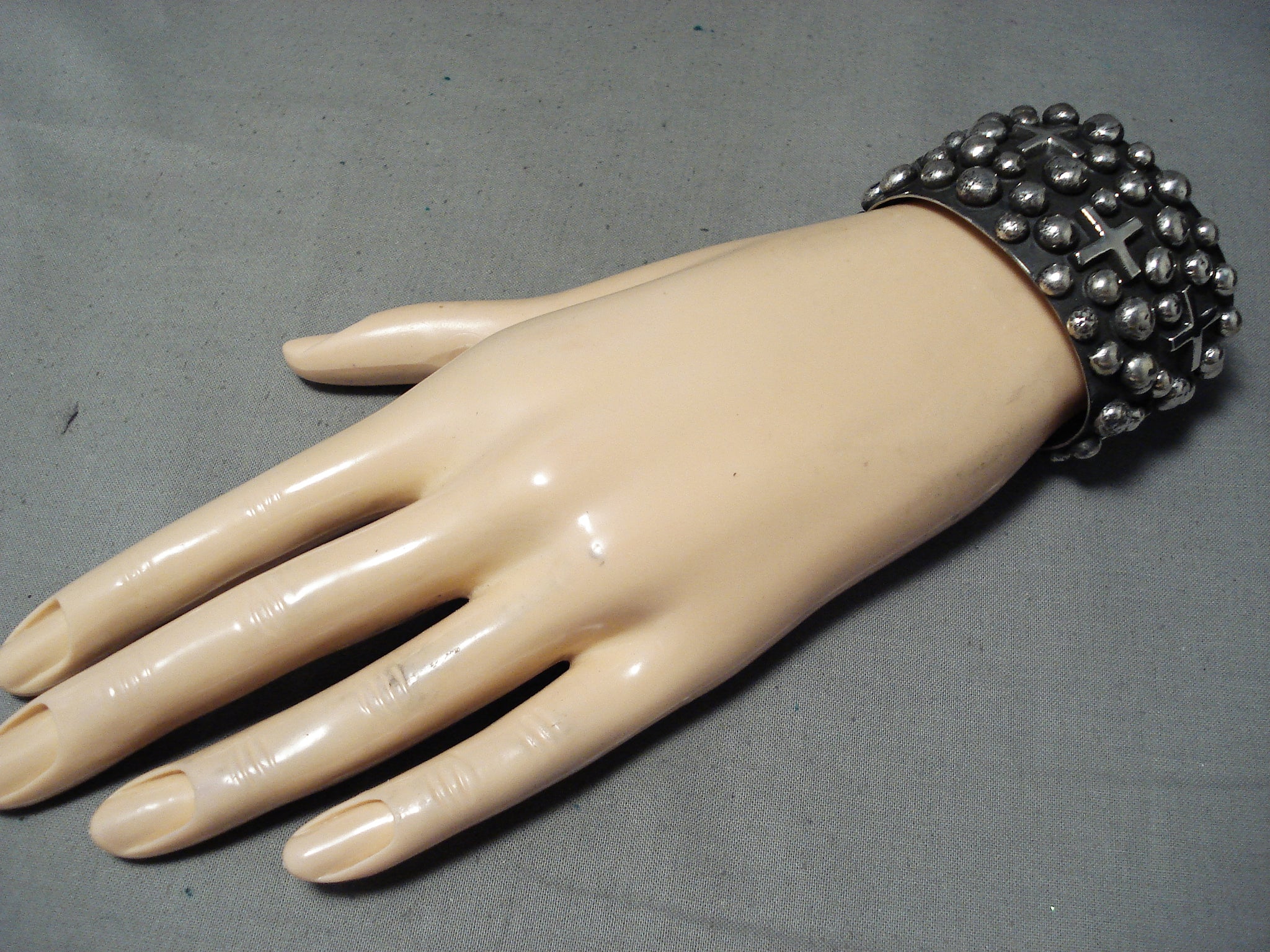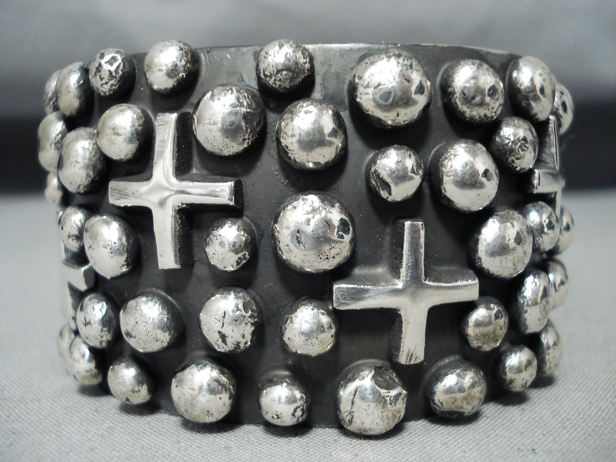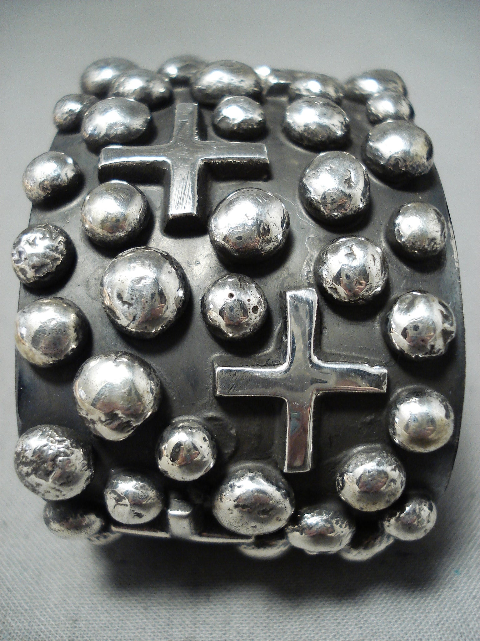 Signed Astounding Native American Navajo Sterling Silver Cross Bracelet