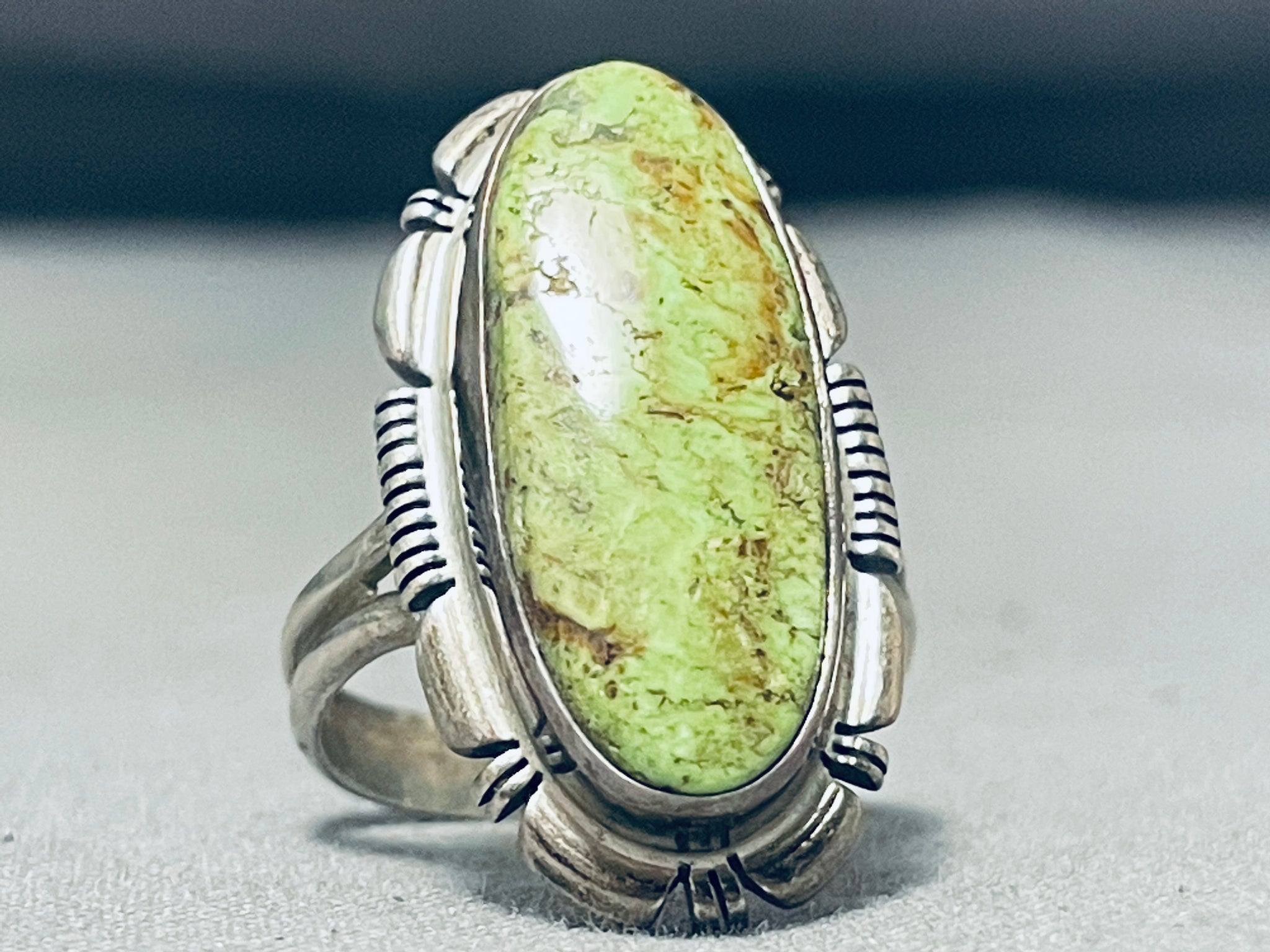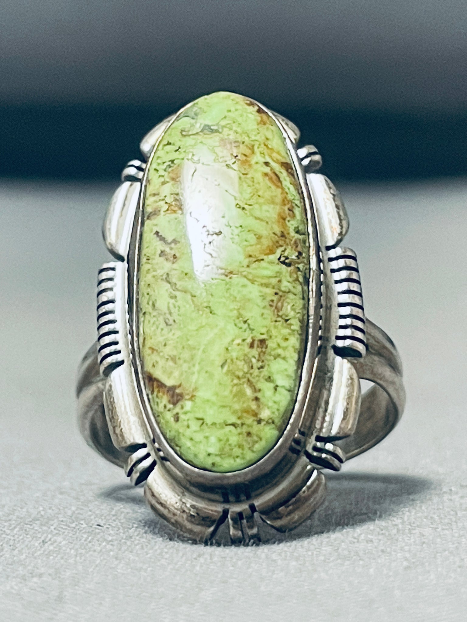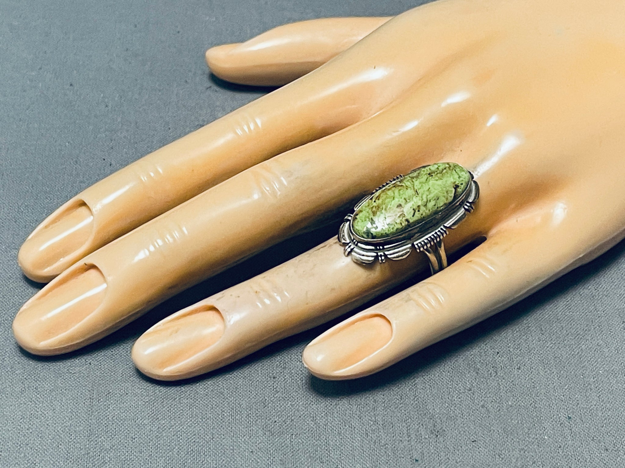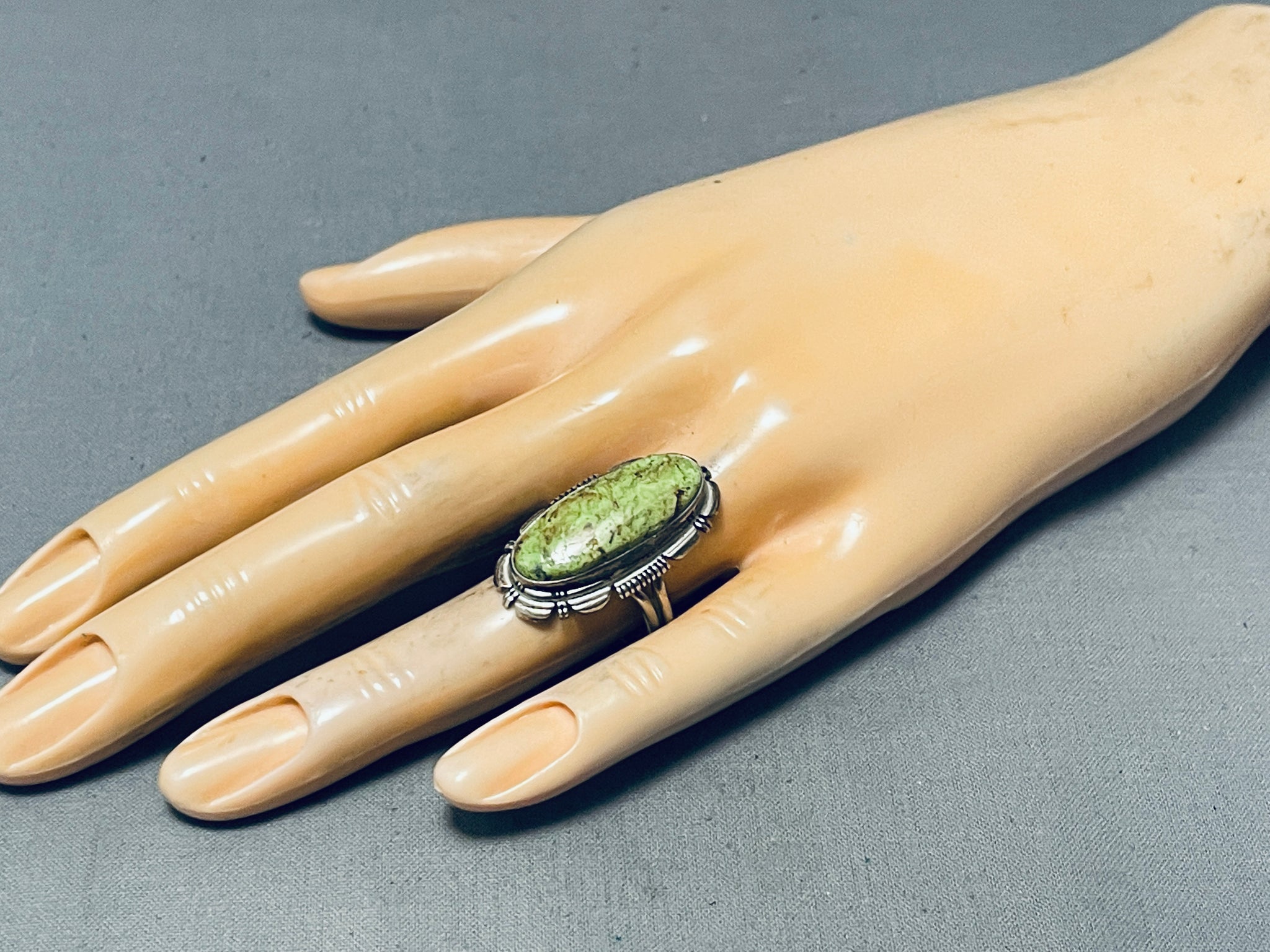 Signed Native American Navajo Gaspeite Sterling Silver Ring