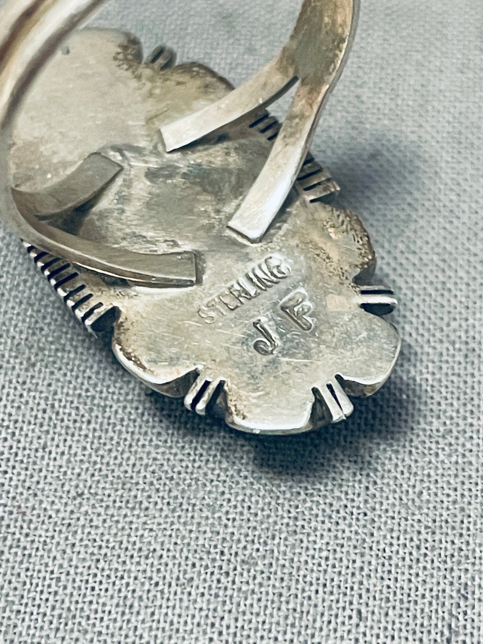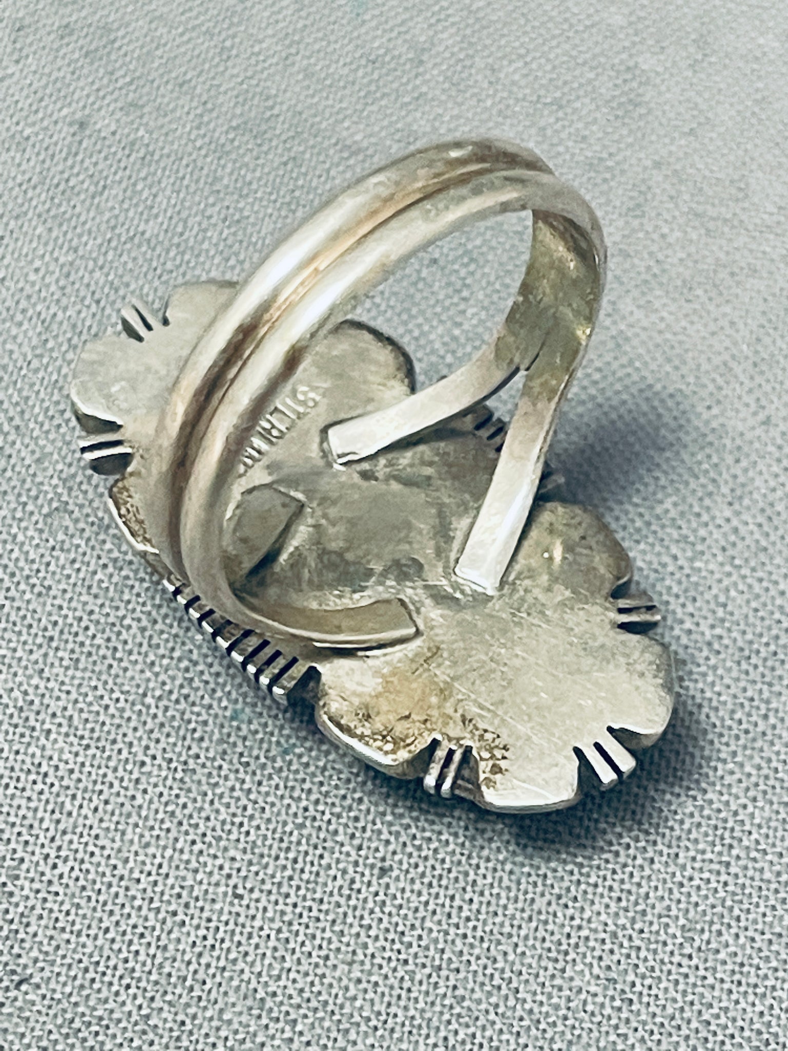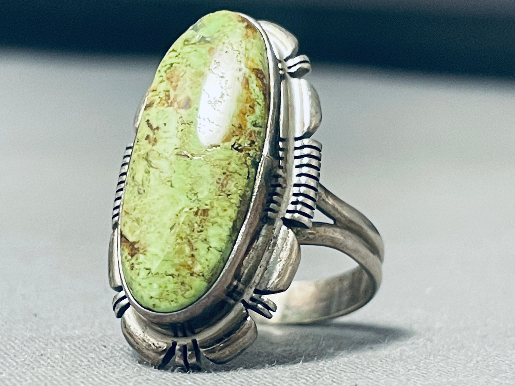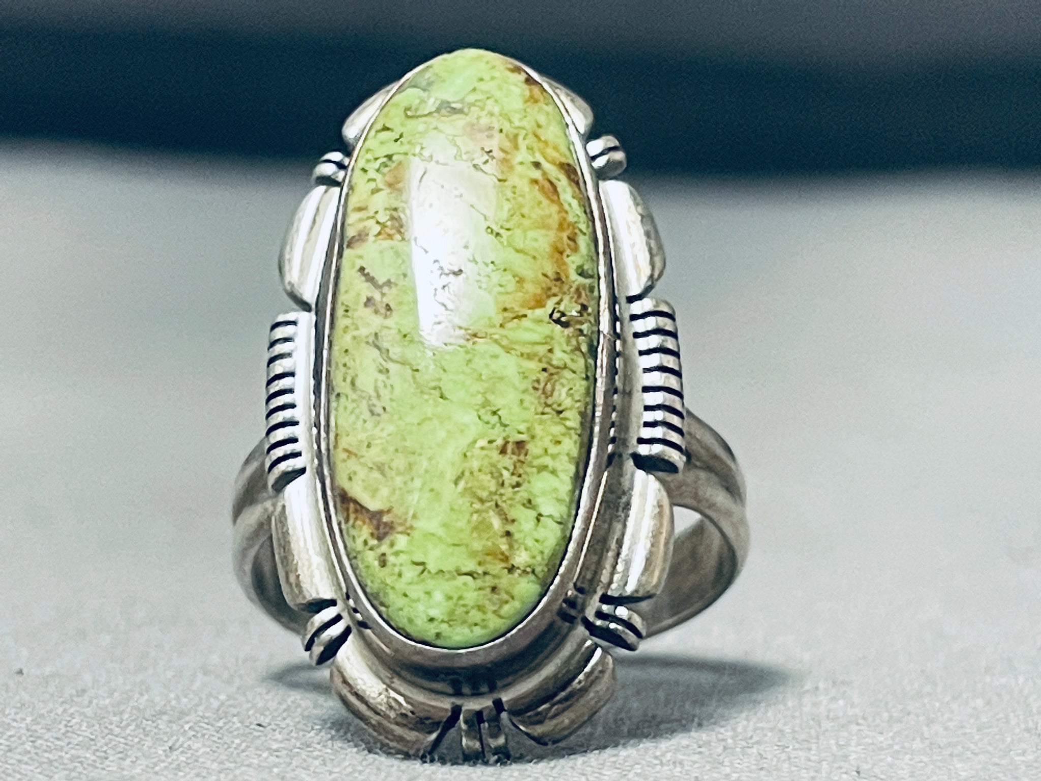 Signed Native American Navajo Gaspeite Sterling Silver Ring