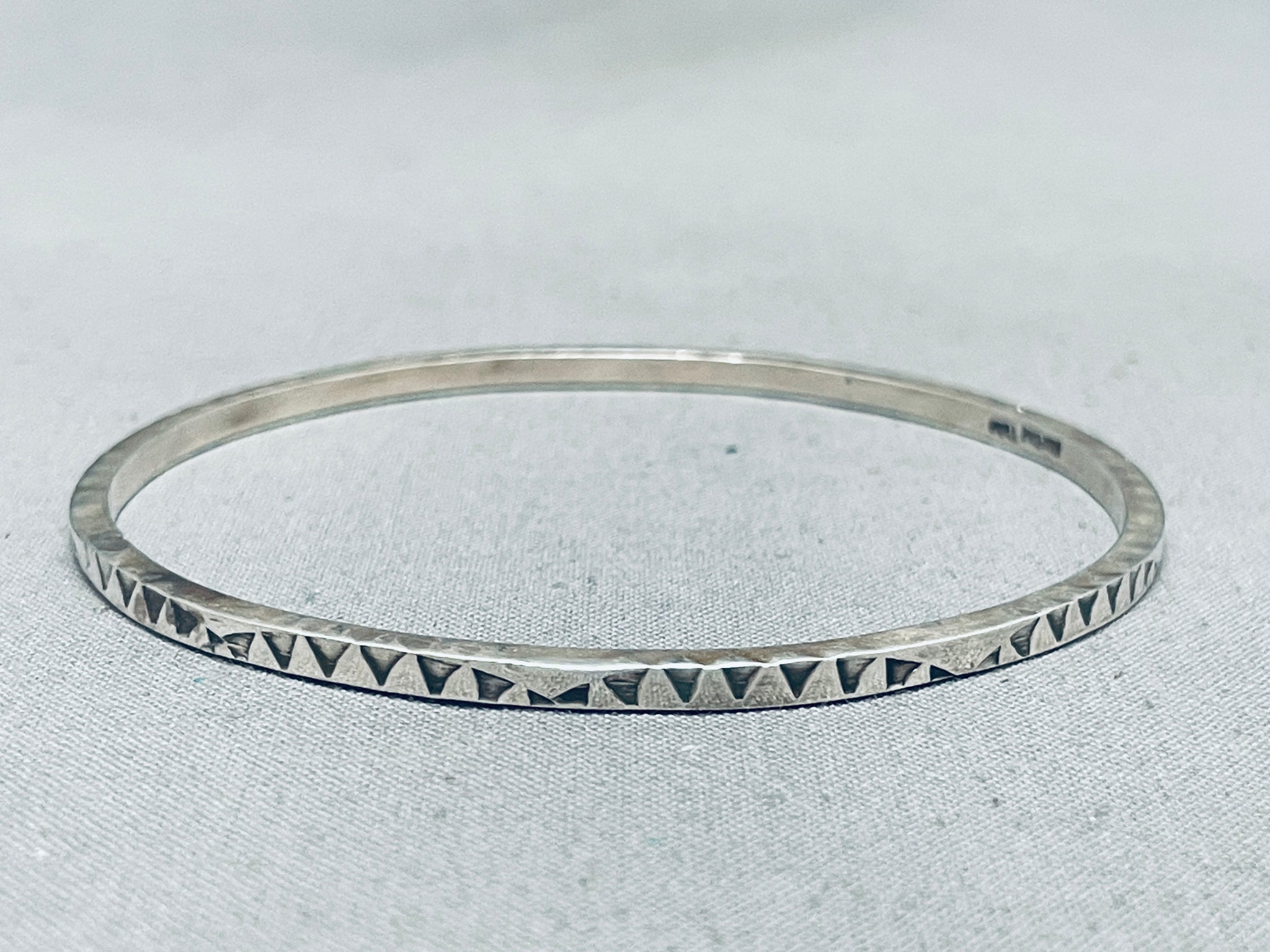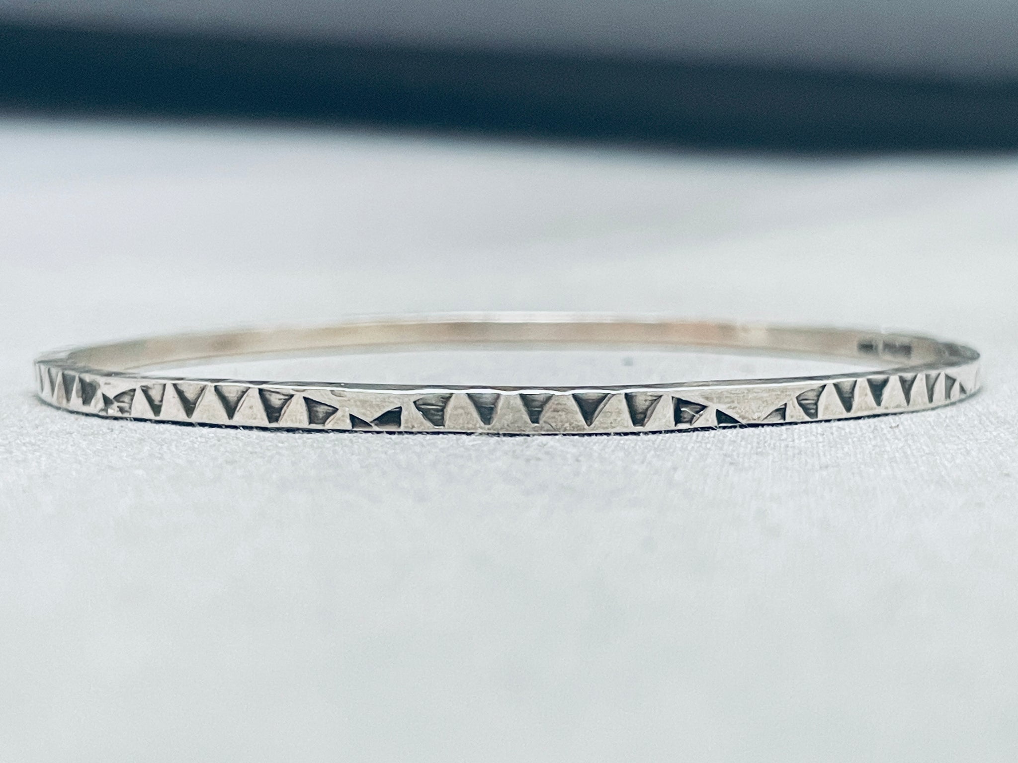 Signed Native American Navajo Sterling Silver Bangle Bracelet
