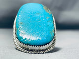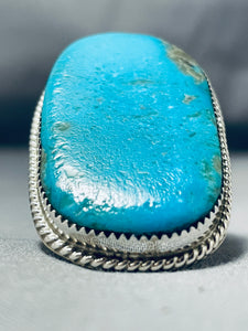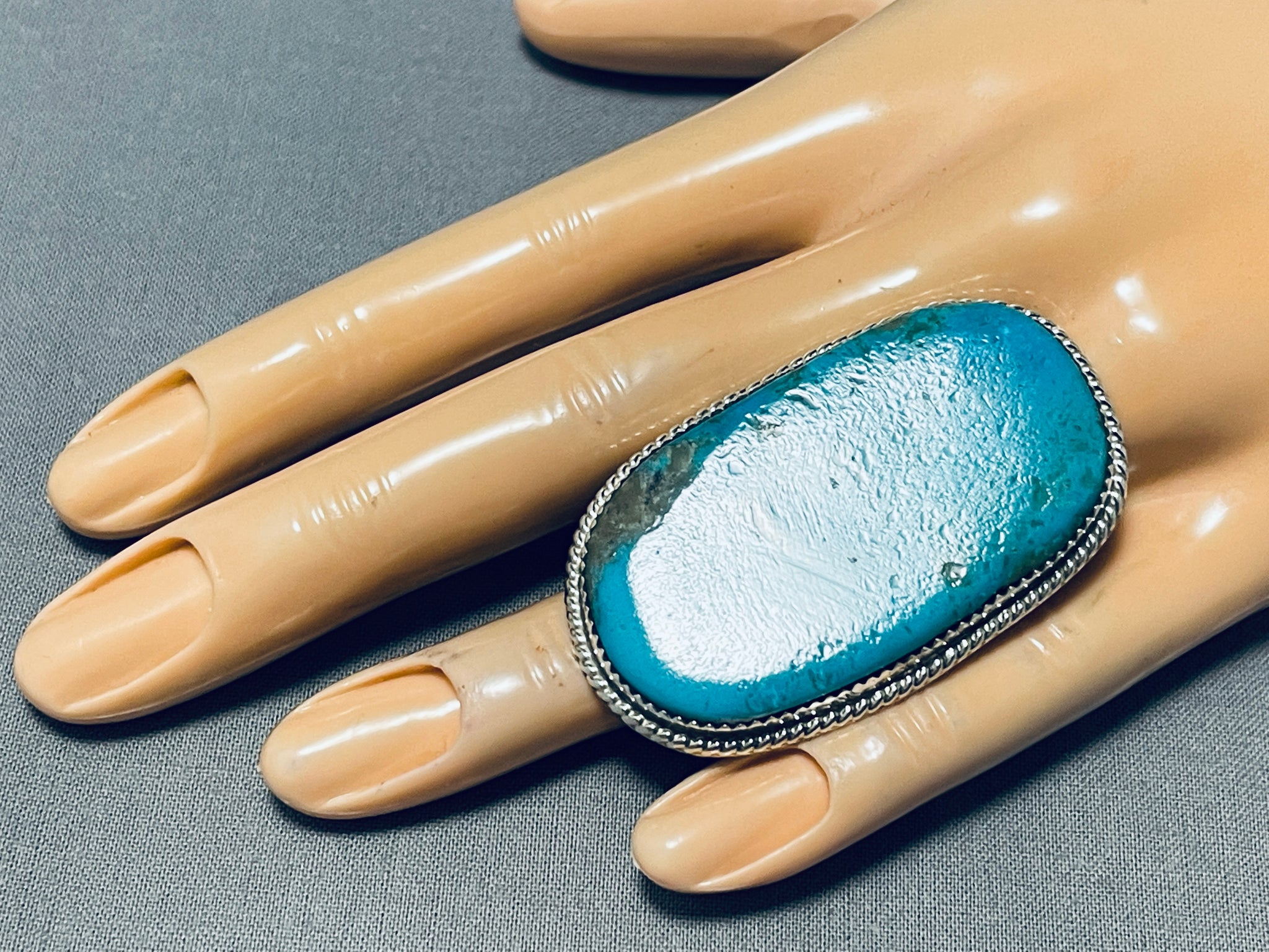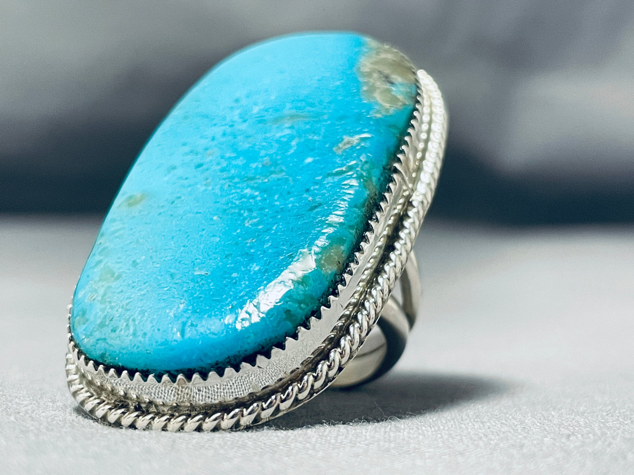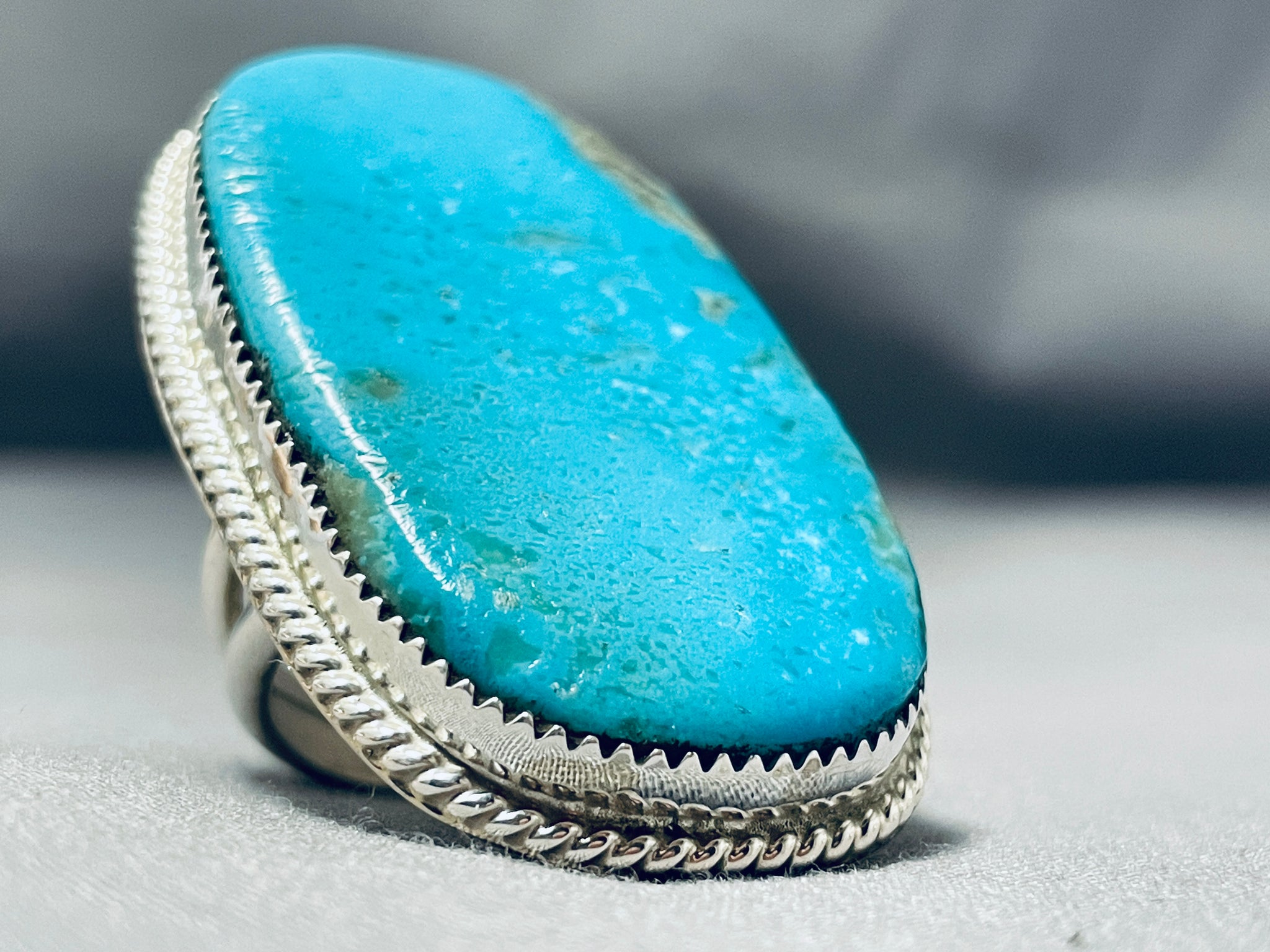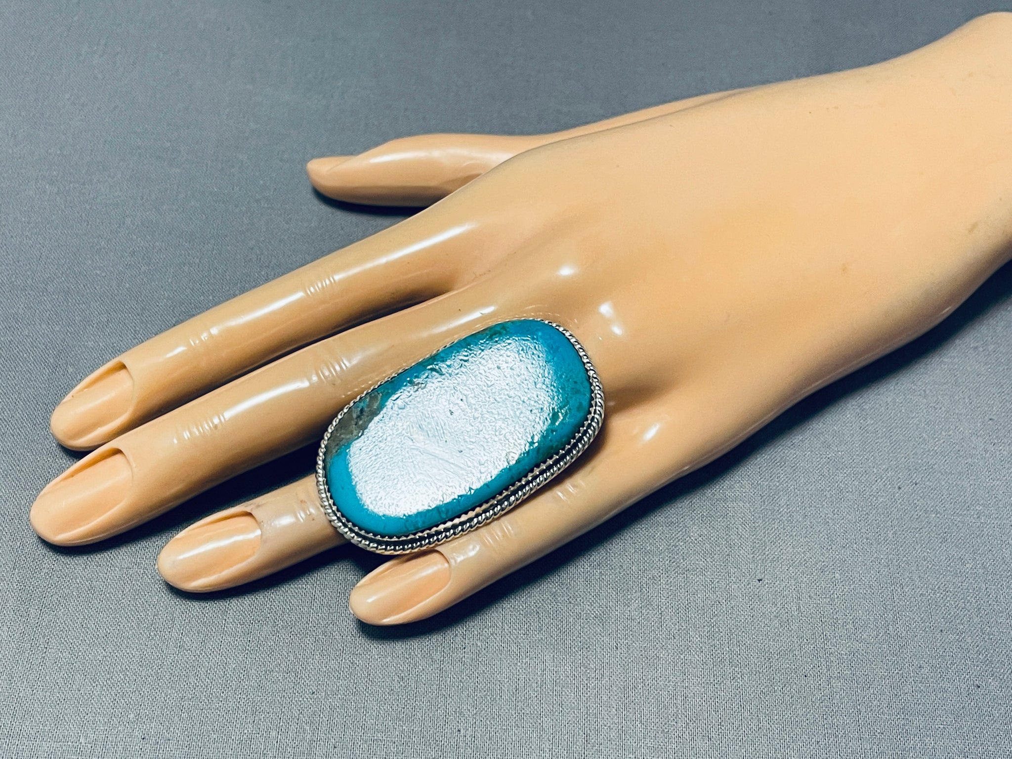 Signed Tso Family Native American Navajo Blue Gem Turquoise Sterling Silver Ring