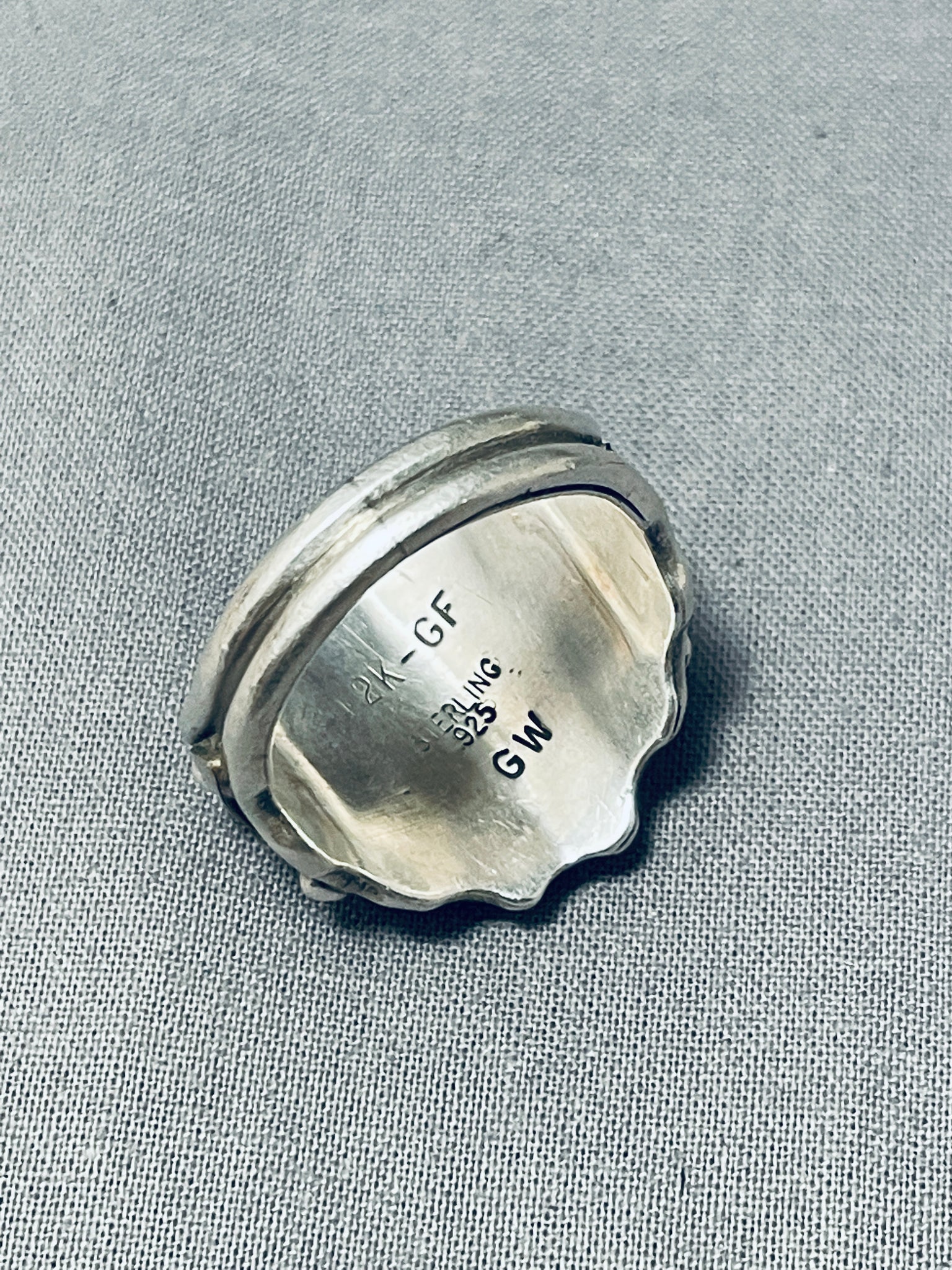 Signed Vintage Native American Navajo 12k Gold Filled Sterling Silver Eagle Ring