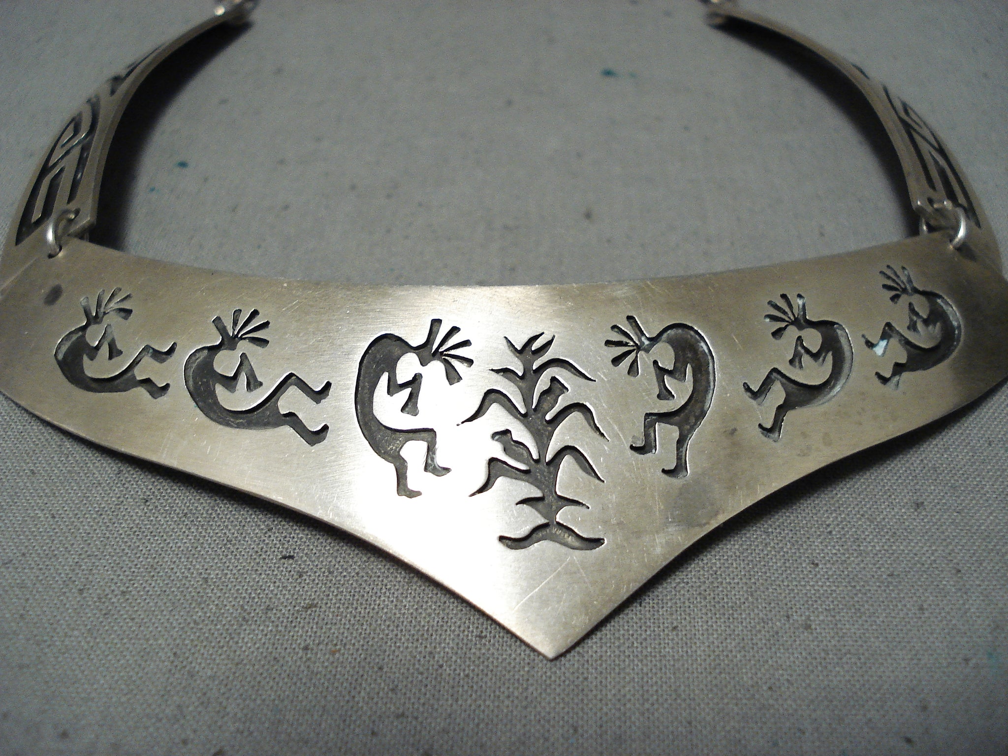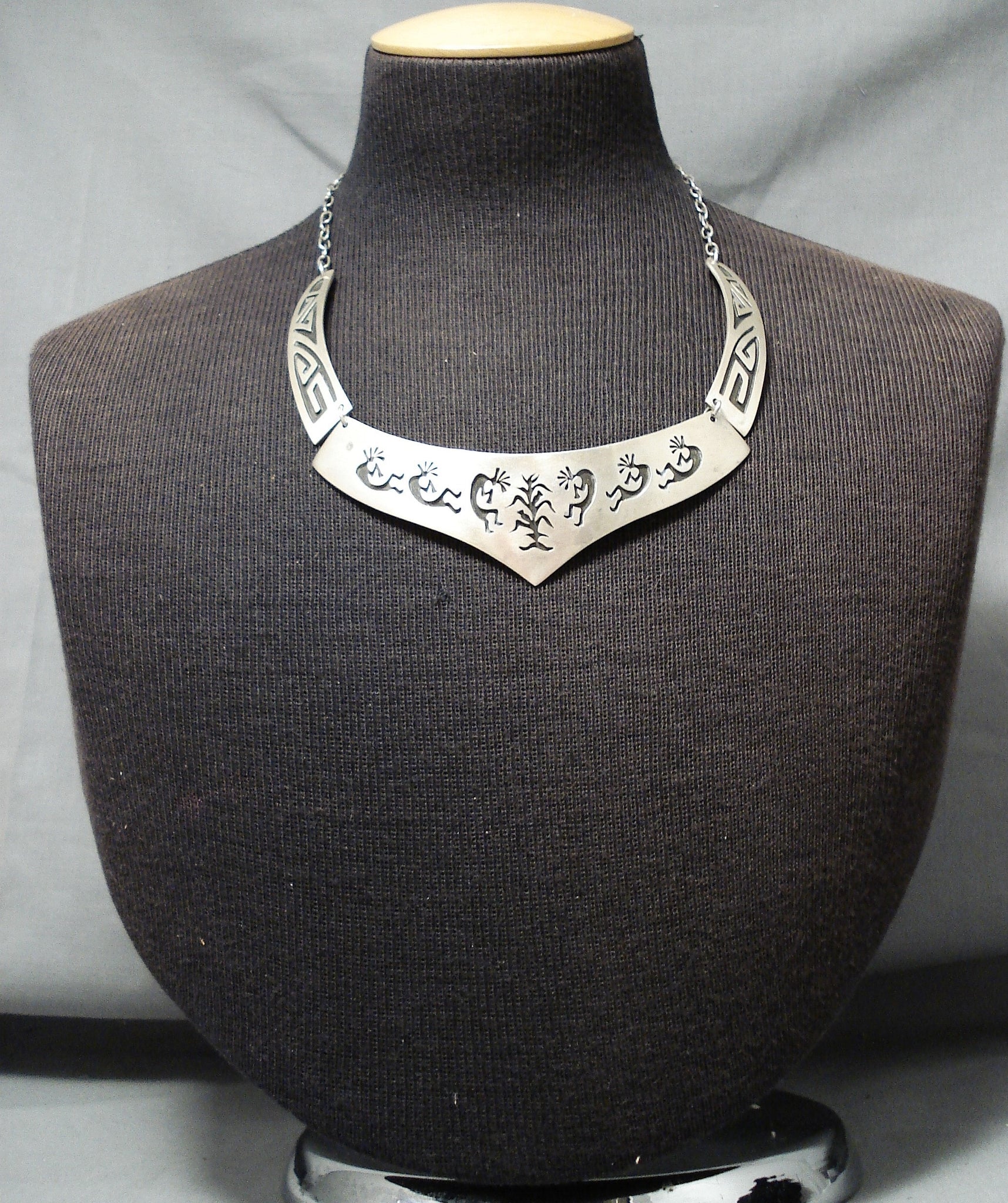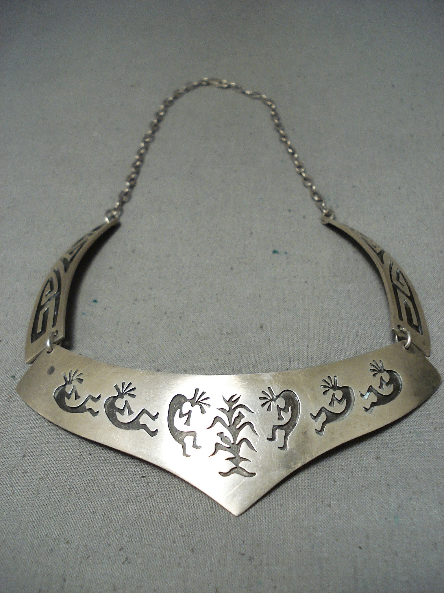 Signed Vintage Native American Navajo Sterling Silver Kokopelli Necklace