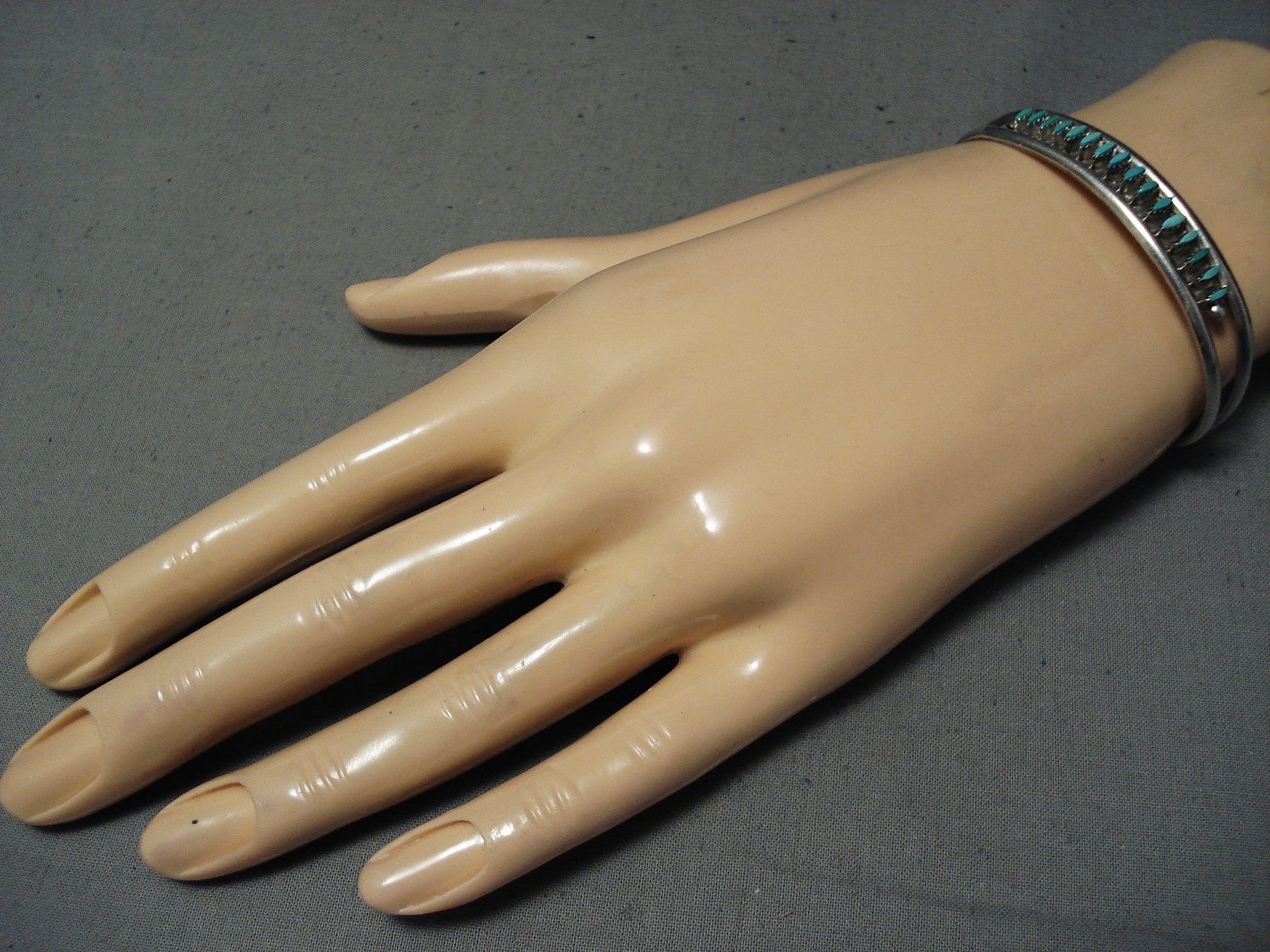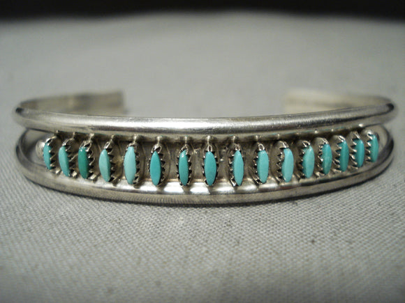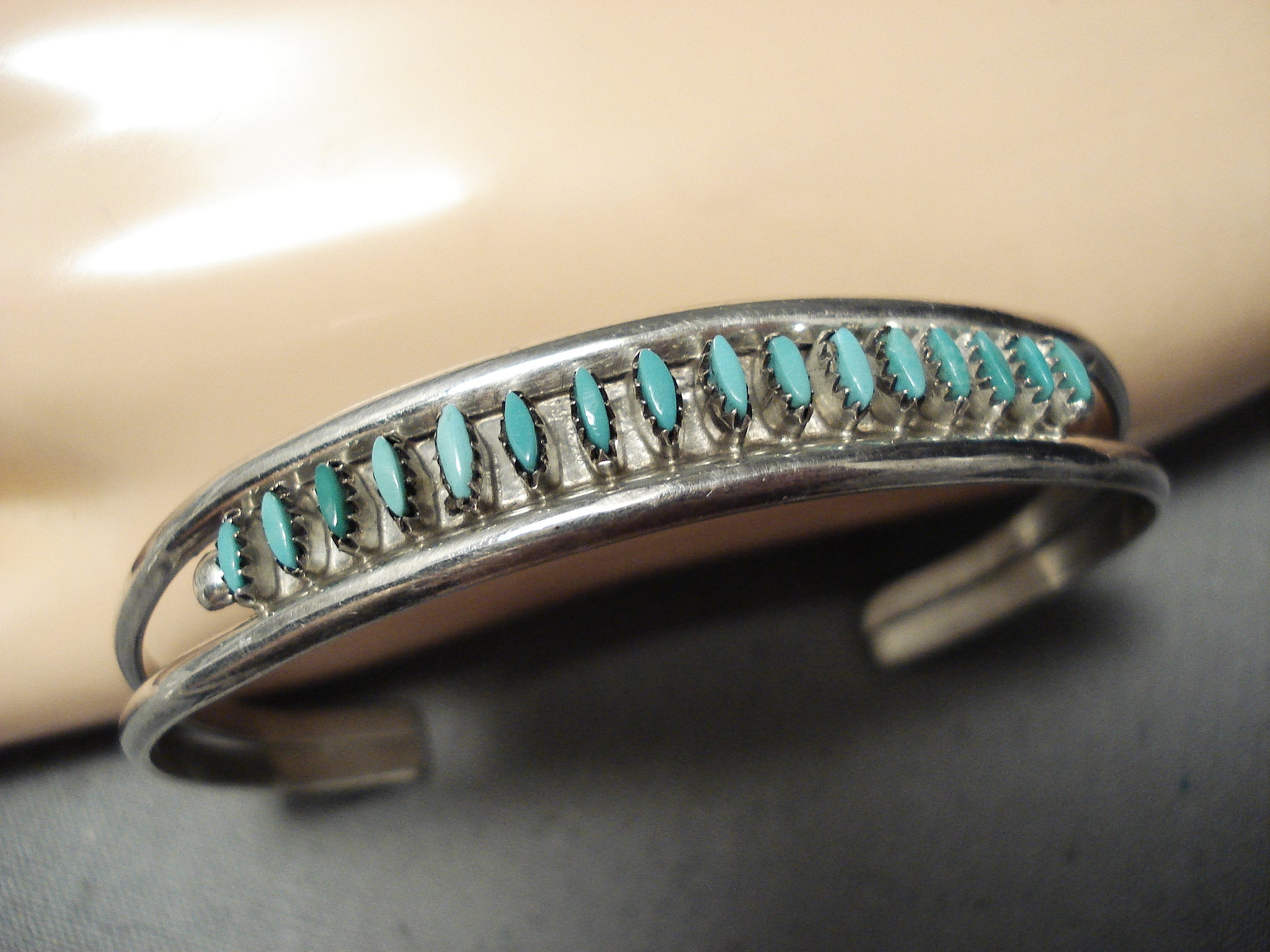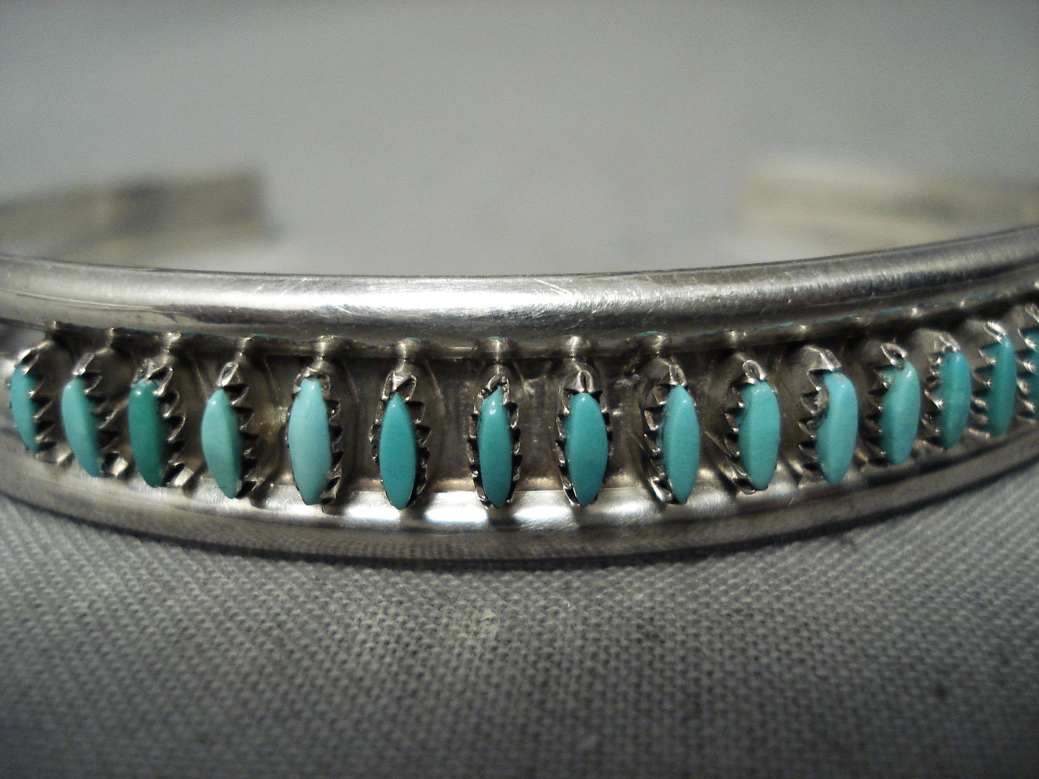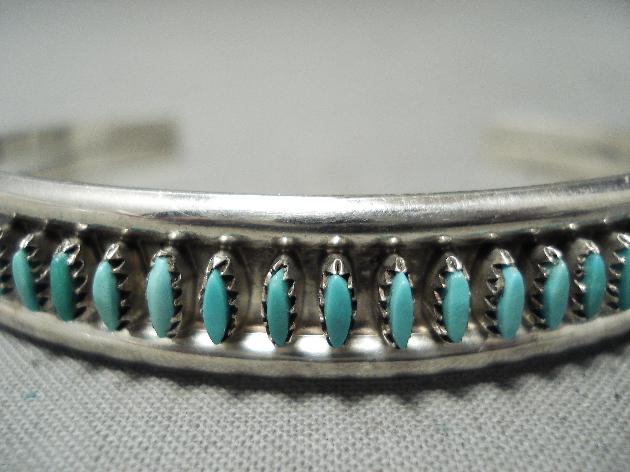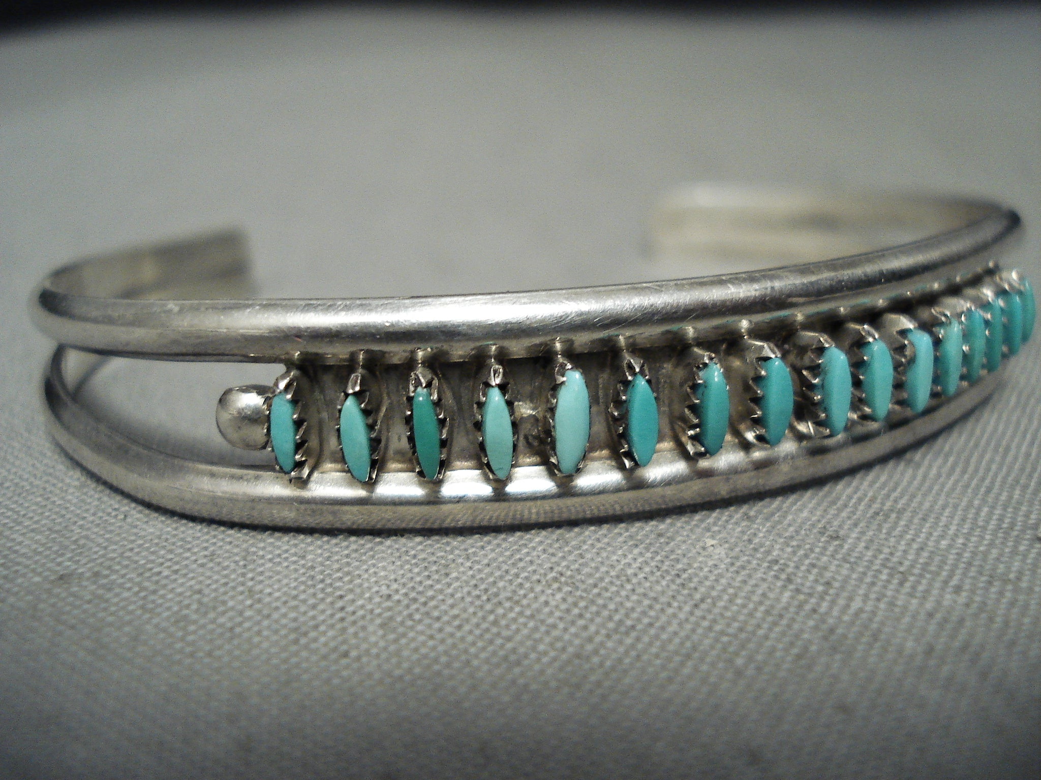 Signed Vintage Native American Zuni Turquoise Sterling Silver Bracelet