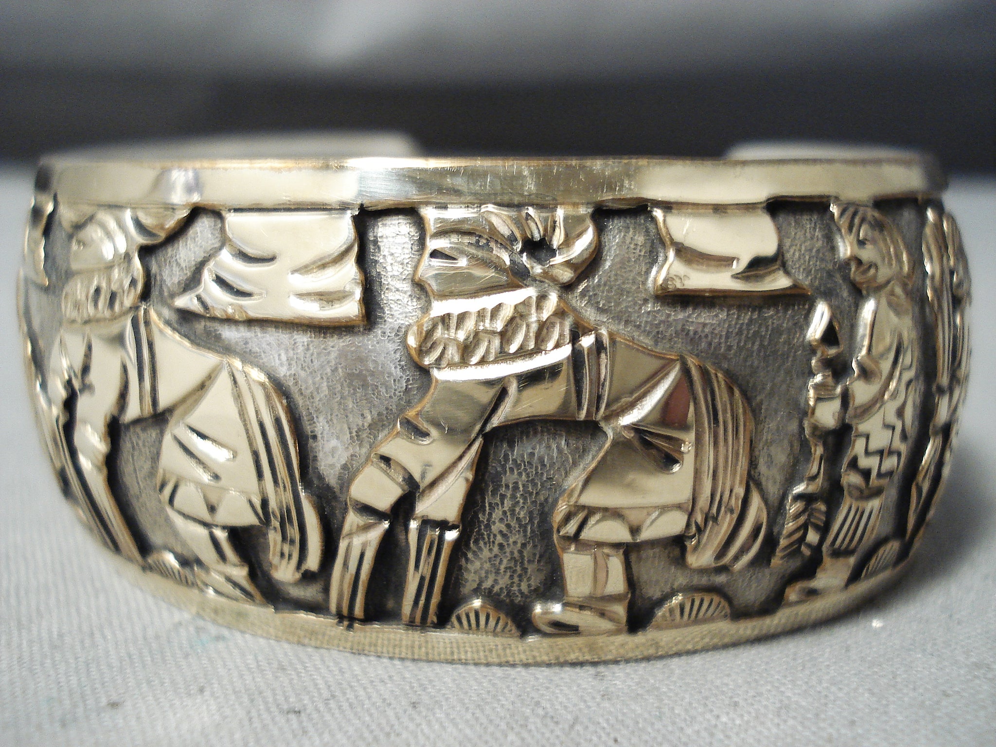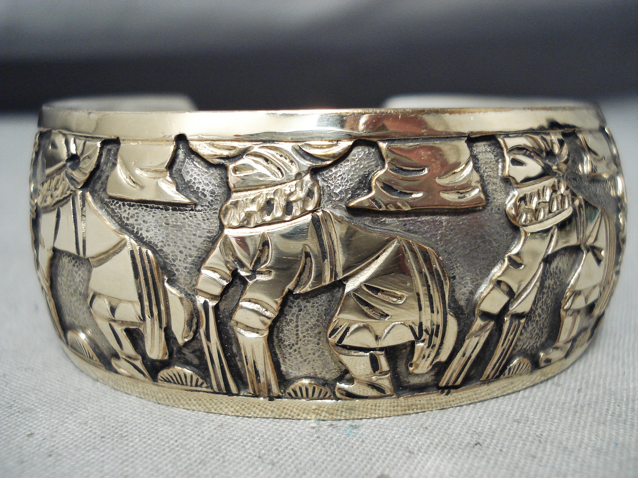Simbolo Vintage Native American Navajo Sterling Silver & Gf Storyteller Bracelet